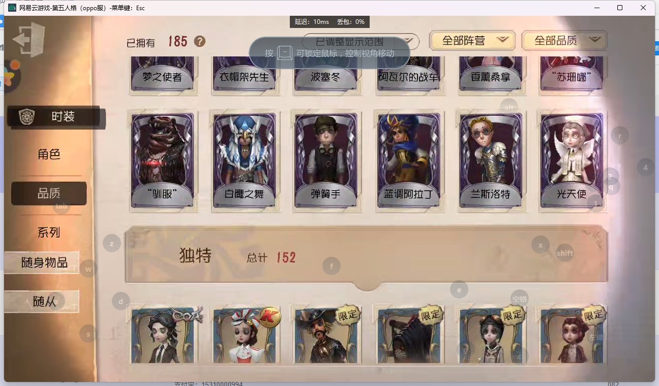 [13062552]oppo-非账号转移 手机账号 185时装 3金皮 35紫皮 9随从 64随身物品 【时装】:古董商-黑鸦邮差-“亡灵”佣兵-弹簧手佣兵-白鹰之舞前锋-阿瓦尔的战车杂技演员-可可豆冒险家-赞因黄衣之主-衣帽架先生祭司-梦之使者律师-兰斯洛特魔术师-蓝调阿拉丁空军-“苏珊娜”勘探员-鼹鼠先生厂长-“驯服”厂长-嗜金海怪病患-玛吉努画家-江户川乱步“杰克”-邪眼寄主红蝶-白孔雀黄衣之主-波塞冬调酒师-“宴舞”舞女-香薰桑拿守墓人-列车长调香师-冰上舞蹈调香师-红菱艳小说家-大师牌医生-光天使牛仔-部族勇士孽蜥-狰梦之女巫-川上富江入殓师-守钟人“囚徒”-冬蝉