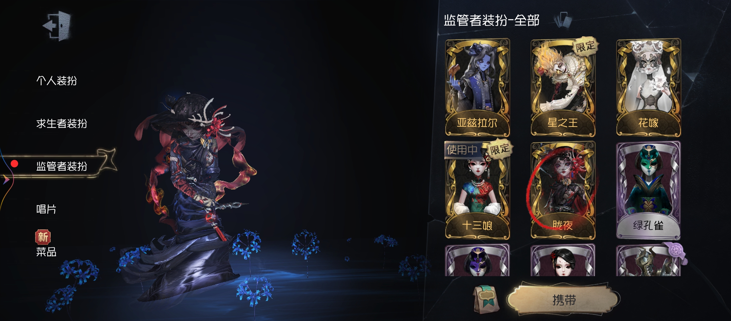 [13474391]第五人格 vivo渠道服 红蝶大情 十三娘 7金皮 4金挂 胧夜 花嫁 引路人 尼德霍格 亚兹拉尔 星之王 片刻闲暇 绿孔雀 紫孔雀 彼岸 祈雨之女 融化的泪琥珀