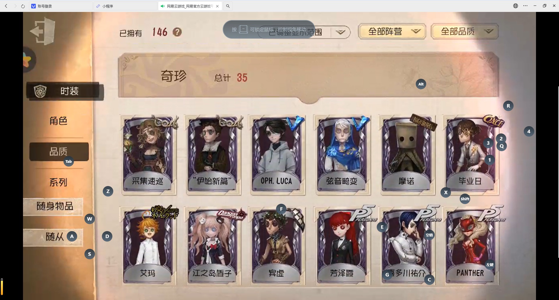 [14185990]oppo-非账号转移 手机账号 146时装 3金皮 35紫皮 6随从 41随身物品 【时装】:咒术师-祝祷拉拉队员-bishop-f1爱哭鬼-摩诺园丁-艾玛“囚徒”-毕业日“囚徒”-oph.luca教授-吟游诗人歌剧演员-拂晓女士佣兵-弦音畸变小说家-“伊始新篇”冒险家-报社主编拉拉队员-采集速巡火灾调查员-“膨化”“法罗女士”-芳泽霞宿伞之魂-桃面书生摄影师-“琥珀”空军-万能钥匙空军-怀古机械师-诡笑症机械师-re-swim红蝶-绿孔雀红蝶-祈雨之女红蝶-仙鹤红蝶-彼岸黄衣之主-寄生之面舞女-高卷杏调酒师-江之岛盾子舞女-panther调酒师-黑玫瑰守墓人-列车长调香师-致命温柔盲女-书记官“囚徒”-灵犀妙探“囚徒”-蝰“囚徒”-电解“囚徒”-宾虚“囚徒”-冬蝉入殓师-喜多川祐介 【随身物品】:微型护卫奇珍摇头鬼(奇珍)科学的艺术奇珍巨人风车奇珍玫瑰手杖蓝奇珍不灭之火稀世蝶影奇珍蝶醉奇珍水晶宫稀世燃烬奇珍