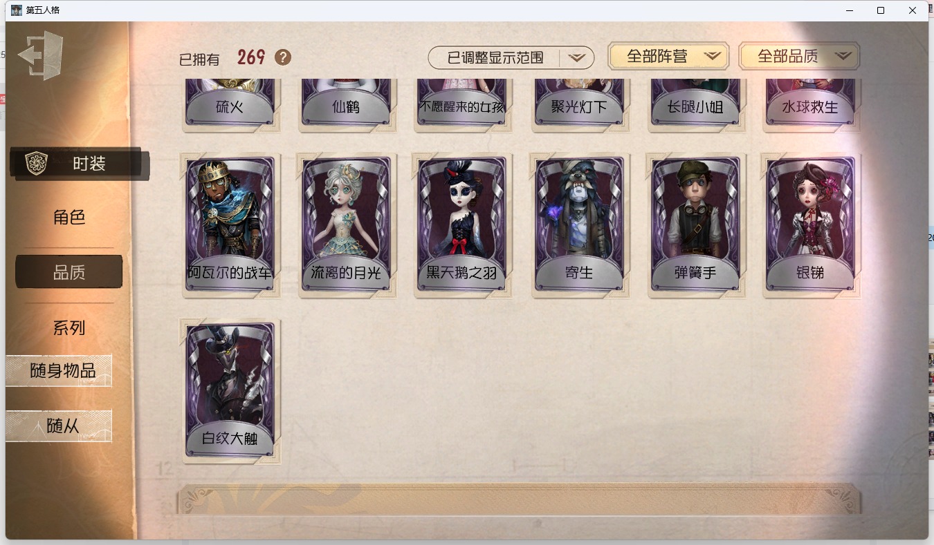 [14281995]苹果官服 邮箱账号 269时装 16金皮 85紫皮 12随从 110随身物品 【时装】:园丁-源自星辰26号守卫-三月兔咒术师-祝祷拉拉队员-bishop-f1玩具商-入间美兔心理学家-神圣阿斯莫心理学家-长夜幸运儿-星航之旅律师-亚伯拉罕·葛雷空军-凯瑟琳·沃德蜘蛛-长腿小姐咒术师-缄默者佣兵-弹簧手佣兵-寄生野人-雪原猎人佣兵-狛枝凪斗佣兵-b.duck潮“小女孩”-瑞吉儿·加德纳“杰克”-艾札克·佛斯特“囚徒”-天海兰太郎爱哭鬼-爱德华·梅森古董商-黑鸦杂技演员-茶话会杂技演员-雨宫莲前锋-阿瓦尔的战车摄影师-安宁空军-爱神之吻大副-雷斯垂德探长歌剧演员-拂晓女士幻灯师-于此岸赴宴木偶师-行于界限间喧嚣-隐于夜色中画家-掌中篆记26号守卫-秘密大厨祭司-阿乌拉医生-银锑 冒险家-赞因玩具商-清洁翼古董商-墨韵宿伞之魂-桃面书生昆虫学者-“鬼烛”摄影师-“琥珀”入殓师-记忆之骑红蝶-硫火渔女-鬼脸天蛾“法罗女士”-芳泽霞蜘蛛-聚光灯下小说家-“伊始新篇”“博士”-“裁纸机”“杰克”-乌骨前锋-水球救生舞女-流离的月光哭泣小丑-熄灭的太阳26号守卫-西部大亨空军-黑天鹅之羽空军-新岛真空军-queen空军-尼德霍格机械师-佐仓双叶机械师-人偶师机械师-七海千秋祭司-撒玛拉机械师-小红帽勘探员-鼹鼠先生勘探员-日向创昆虫学者-曼陀罗大副-明智吾郎雕刻家-“玛利亚”爱哭鬼-被时间遗忘的男孩红夫人-宝钻女爵“杰克”-白纹大触“杰克”-金纹大触红蝶-仙鹤黄衣之主-波塞冬黄衣之主-异星舞女-高卷杏小丑-异界行者调香师-笼中之蝶调香师-致命温柔调香师-猩红新娘调酒师-黑玫瑰调酒师-江之岛盾子医生-罪木蜜柑医生-雨中曲园丁-奥村春园丁-noir幸运儿-苗木诚先知-月相先知-历战猎人“小女孩”-年岁小提琴家-衔尾蛇前锋-坂本龙司前锋-skull牛仔-逆刃之鞭盲女-不愿醒来的女孩梦之女巫-川上富江宿伞之魂-程小时陆光摄影师-亚兹拉尔摄影师-宿醉宿伞之魂-安魂曲 【随身物品】:夜星(奇珍)全冰饮料(奇珍)海之低语(奇珍)拒刃匕首(奇珍)致命的邀请函稀世时序奇珍醒梦铃