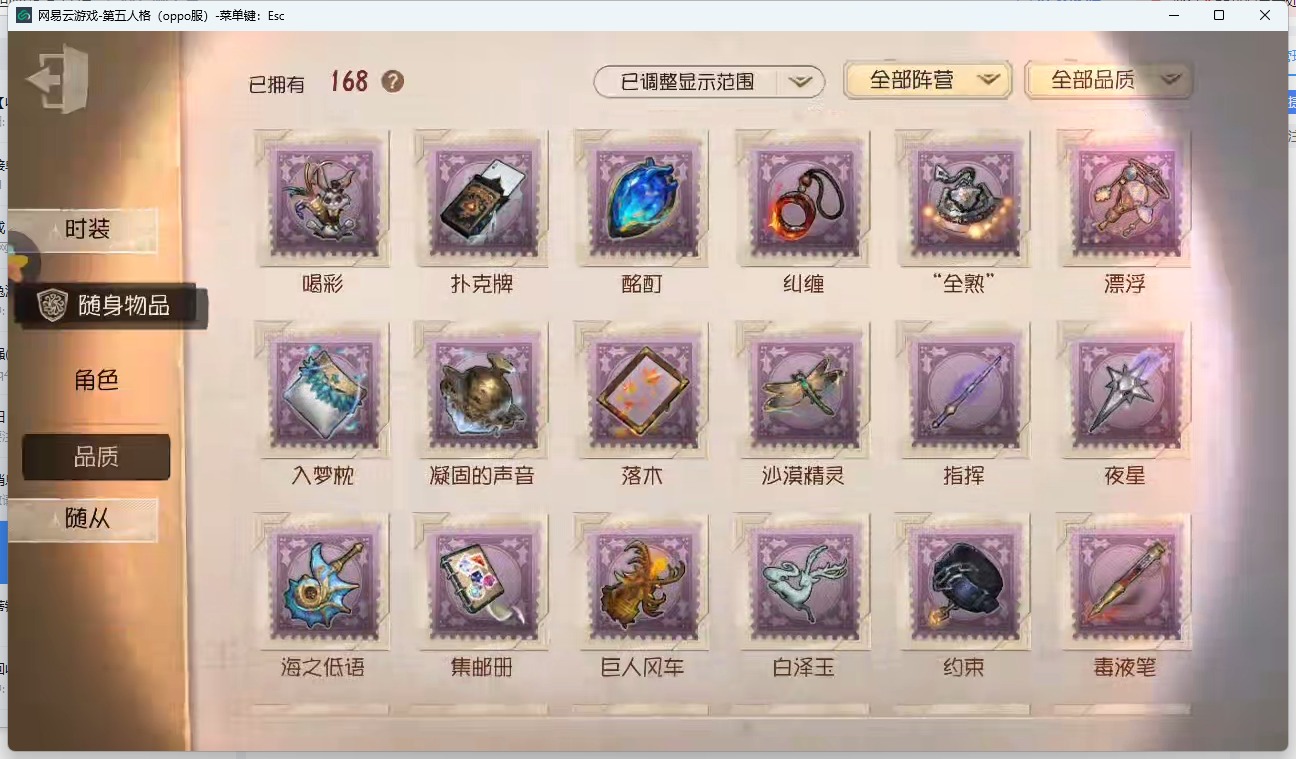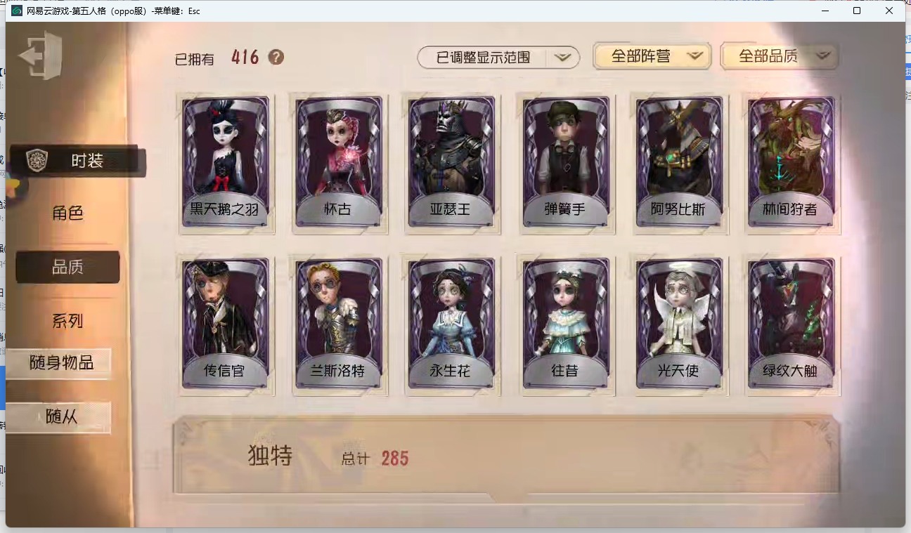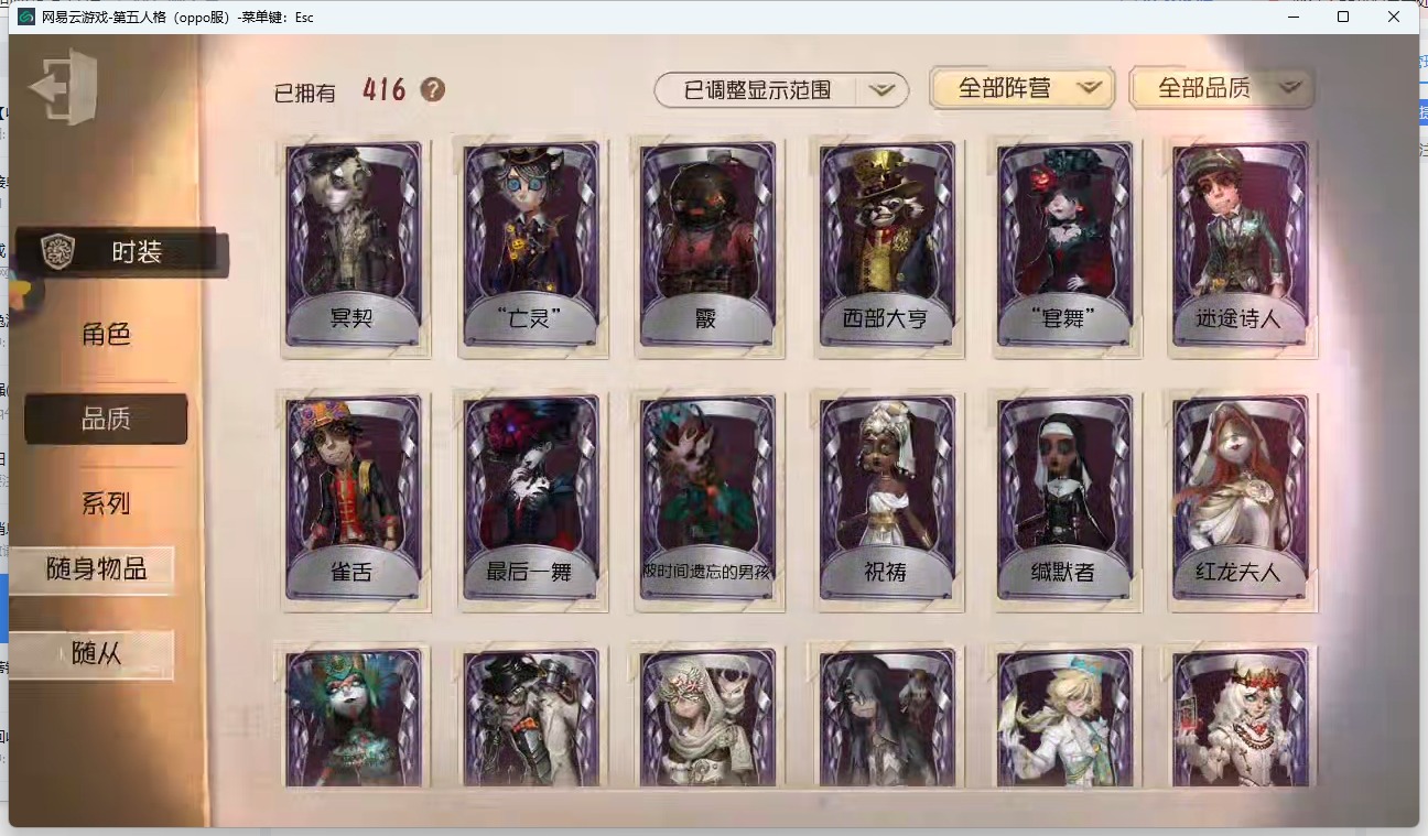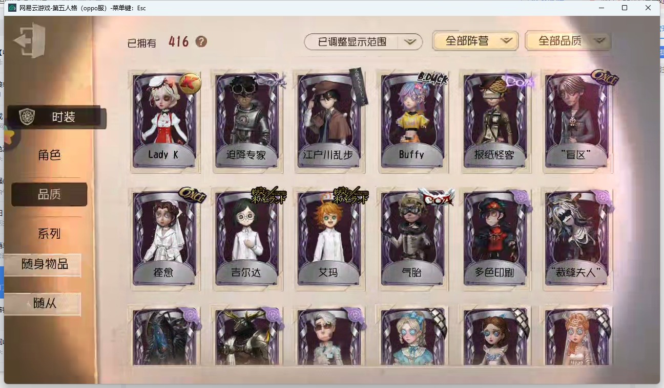 [14320123]oppo-非账号转移 手机账号 416时装 17金皮 114紫皮 16随从 168随身物品 【时装】:心理学家-长夜勘探员-盖提亚之遗医生-流萤园丁-艾玛园丁-怪鸟蜘蛛-花祭杂技演员-气胎“心理学家”-恒梦病患-溯光记者-伊布医生-司药画家-掌中篆记冒险家-赞因心理学家-菲伦梦之女巫-裁缝夫人病患-休塔尔克小说家-肖驰幸运儿-“未知射线”x入殓师-变彩记者-梦境中的爱丽丝调香师-buffy邮差-报纸怪客画家-多色印刷园丁-兰闺惊梦击球手-迫降专家祭司-撒玛拉空军-尼德霍格机械师-不会枯萎的花鹿头-刻律涅之伤红夫人-夜潮画家-黄金比例画家-江户川乱步红蝶-罗生门黄衣之主-异星调酒师-海盐特调舞女-恶之花调香师-今夜不再调香师-lady k调香师-红菱艳医生-痊愈牛仔-教鞭盲女-吉尔达梦之女巫-川上富江入殓师-“盲区”入殓师-嬉命人