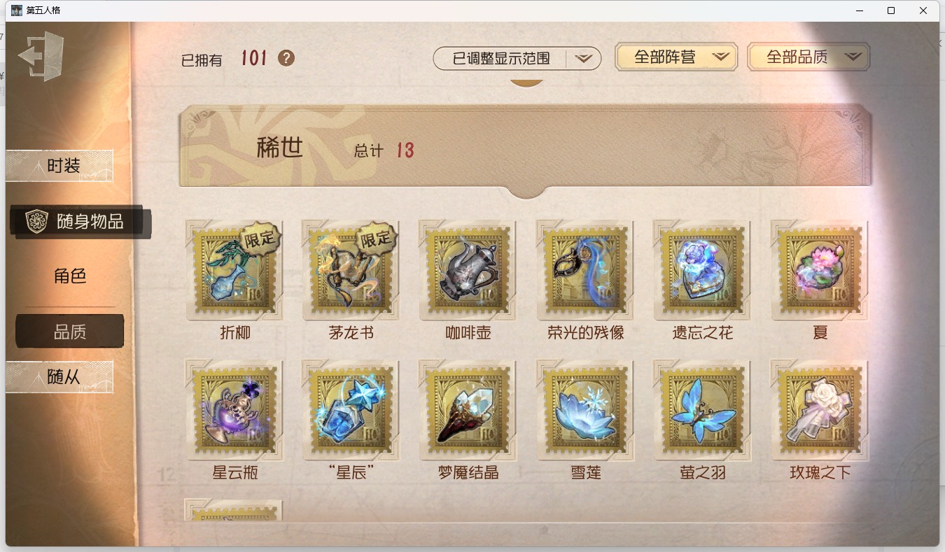 [14349997]苹果官服 邮箱账号 1虚妄杰作 243时装 13金皮 70紫皮 18随从 101随身物品 【时装】:古董商-招风旗渔女-垂泪的神女使徒-多加雷萨小说家-最原终一画家-温暖的平安夜古董商-木兰园丁-异想hello kitty爱哭鬼-摩诺渔女-百万人鱼律师-亚伯拉罕·葛雷祭司-“绯”渔女-chef k古董商-填海平邮差-秋日随想“囚徒”-天海兰太郎调香师-提炼师古董商-黑鸦咒术师-椰香假日杂技演员-雨宫莲杂技演员-joker空军-爱神之吻记者-伊布红蝶-融化的泪琥珀大副-雷斯垂德探长雕刻家-善忘的海马体骑士-艺术品商人爱哭鬼-善恶的本性教授-吟游诗人画家-掌中篆记26号守卫-秘密大厨小说家-无归的昨日冒险家-赞因“法罗女士”-向深处求告魔术师-动力芯幸运儿-蛋小黄的好朋友古董商-墨韵宿伞之魂-桃面书生摄影师-“琥珀”勘探员-盛夏飞盘“法罗女士”-violet古董商-菌丝研究先知-纯白之盐调酒师-逐浪的玫瑰“法罗女士”-芳泽霞“小女孩”-异动指针小说家-“伊始新篇”园丁-郁金香之梦破轮-沙滩漂移蜡像师-收藏品空军-新岛真空军-queen祭司-“朝圣者”机械师-佐仓双叶空军-“苏珊娜”蜡像师-淋浴魔术师-梅林昆虫学者-可妮兔“杰克”-夜来香大副-明智吾郎“噩梦”-随机数红蝶-仙鹤红蝶-彼岸红蝶-更纱红夫人-贝拉夫人红蝶-竹华舞女-高卷杏舞女-女武神舞女-panther调香师-致命温柔调香师-lady k调香师-红菱艳调香师-摩涅莫绪涅之梦调香师-花序园丁-奥村春先知-月相“小女孩”-年岁前锋-坂本龙司盲女-海西遗风梦之女巫-川上富江摄影师-月下绅士入殓师-喜多川祐介 【随身物品】:荣光的残像(稀世)茅龙书(稀世)夏(稀世)遗忘之花(稀世)火火火(奇珍)指挥(奇珍)海岸花环(奇珍)海之低语(奇珍)集邮册(奇珍)回旋镖奇珍炸药桶奇珍“全熟”奇珍凝固的声音奇珍漂浮奇珍充气海豚奇珍沙漠精灵(奇珍)咖啡壶稀世德米特里1号奇珍聚集哨笛奇珍手摇铃奇珍酩酊奇珍心海之梦奇珍欢呼(奇珍)糖果鬼(奇珍)秘密(奇珍)折柳稀世海底遗物奇