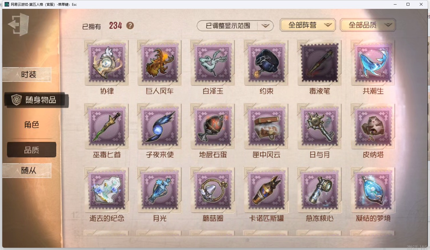 [14375355]安卓官服 邮箱账号 633时装 28金皮 168紫皮 28随从 234随身物品 【时装】:古董商-招风旗律师-亚伯拉罕·葛雷心理学家-苍鹭之翼心理学家-长夜勘探员-盖提亚之遗“小女孩”-小六记者-小玉爱哭鬼-摩诺机械师-九月“小女孩”-欧律狄刻蜘蛛-花祭作曲家-猎龙者病患-溯光“杰克”-加里记者-华生小姐医生-司药大副-雷斯垂德探长音核裂响入殓师-变彩幸运儿-蛋小黄的好朋友教授-紧急运输古董商-oph.qi拉拉队员-采集速巡小说家-“伊始新篇”祭司-惊鸿机械师-不会枯萎的花爱哭鬼-当铺老板病患-星辰古董商-白泽红夫人-夜潮“杰克”-金纹大触红夫人-贝拉夫人红蝶-白无垢红蝶-永夜极光红蝶-竹华调香师-今夜不再梦之女巫-信使盲女-"建筑师"梦之女巫-川上富江入殓师-菲尼克斯
