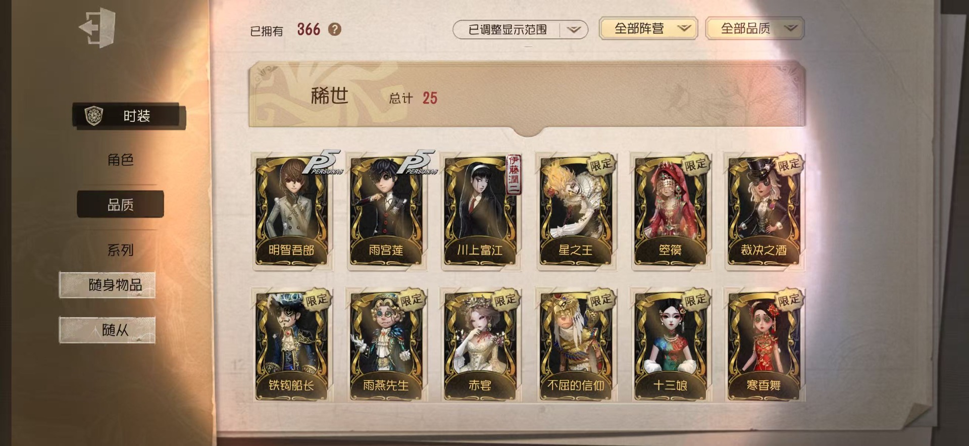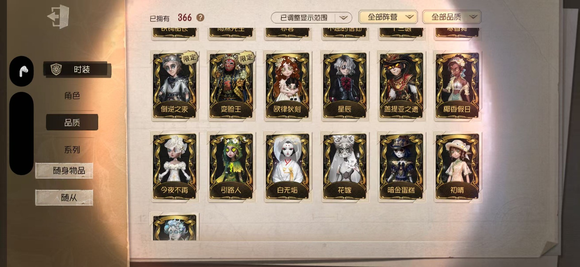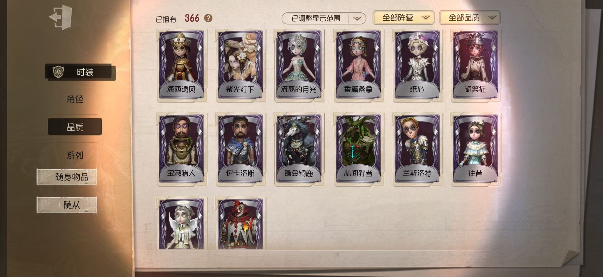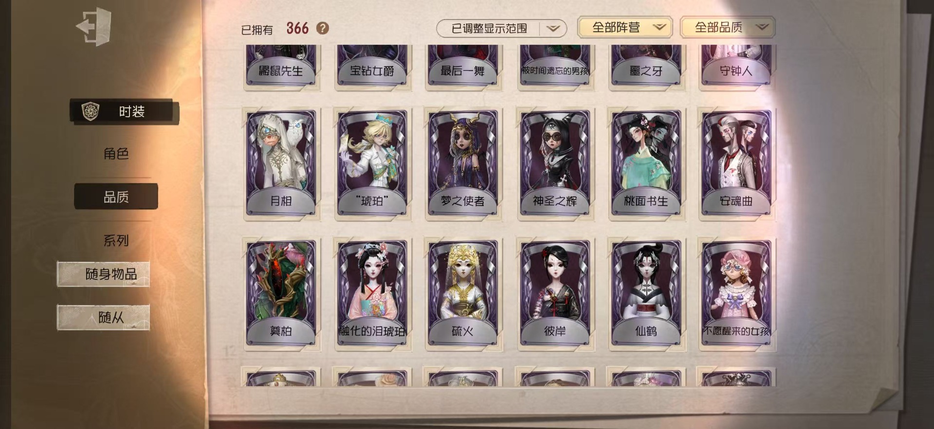 [14375707]苹果官服 手机账号 366时装 25金皮 86紫皮 20随从 136随身物品 【时装】:赤宴雨燕先生十三娘昆虫学者-箜篌鹿头-镏金铜鹿调酒师-夜光杯小丑-捣蛋裘克野人-弄臣“小女孩”-欧律狄刻杂技演员-雨宫莲杂技演员-雨燕先生作曲家-澄明的理性园丁-奥村春火灾调查员-“膨化”渔女-破魔之刃机械师-纸心律师-倒逆之汞“愚人金”-淘金客“喧嚣”-星之王哭泣小丑-熄灭的太阳病患-湖中影“法罗女士”-芳泽霞蜘蛛-聚光灯下“愚人金”-辉锑矿舞女-流离的月光园丁-noir园丁-幽灵公主26号守卫-西部大亨空军-琼楼遗恨空军-新岛真空军-寒香舞机械师-诡笑症机械师-佐仓双叶机械师-navi祭司-撒玛拉律师-兰斯洛特鹿头-林间狩者鹿头-刻律涅之伤哭泣小丑-蚕食者勘探员-雀舌勘探员-罗纳德昆虫学者-曼陀罗昆虫学者-动植物学教授大副-铁钩船长大副-明智吾郎“杰克”-斯文加利红蝶-十三娘红夫人-赤宴舞女-恶之花舞女-高卷杏舞女-panther舞女-香薰桑拿调酒师-裁决之酒医生-往昔医生-雨中曲小丑-变脸王先知-不屈的信仰前锋-坂本龙司盲女-海西遗风冒险家-伊卡洛斯冒险家-宝藏猎人梦之女巫-川上富江宿伞之魂-十字路口的美少年“囚徒”-冬蝉入殓师-喜多川祐介 【随身物品】:夏(稀世)“全熟”奇珍醒梦铃奇珍凝固的声音奇珍进化稀世漂浮奇珍扑克牌奇珍咖啡壶稀世酩酊奇珍天羽奇珍沙漠精灵(奇珍)电掣(奇珍)萤之羽稀世呼唤稀世猫尾稀世见证稀世唤潮稀世玫瑰之下稀世厌离稀世完美人偶稀世乾坤袋奇珍书中蝶稀世十里芬芳奇珍