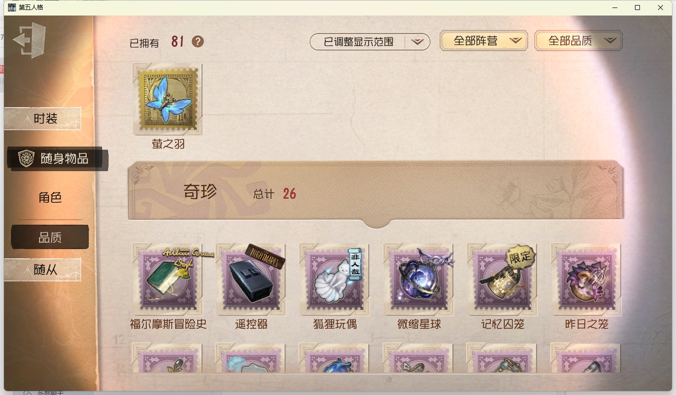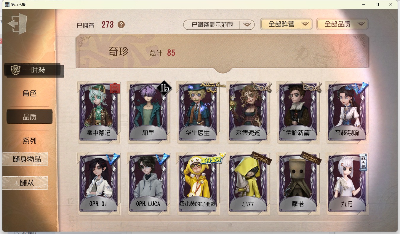 [14452018]安卓官服 邮箱账号 273时装 12金皮 85紫皮 10随从 81随身物品 【时装】:杂技演员-祈雨珠画家-温暖的平安夜鹿头-镏金铜鹿爱丽丝·德罗斯-片刻闲暇“心理学家”-末世搜救渔女-chef k作曲家-先驱探索佣兵-b.duck潮病患-天使向导红夫人-应许之日杂技演员-雨宫莲牛仔-船影黄衣之主-衣帽架先生红蝶-融化的泪琥珀邮差-华生医生记者-华生小姐“囚徒”-oph.luca昆虫学者-踏莎行画家-掌中篆记26号守卫-秘密大厨宿伞之魂-千里绘卷音核裂响“法罗女士”-向深处求告玩具商-清洁翼幸运儿-蛋小黄的好朋友宿伞之魂-桃面书生病患-湖中影摄影师-“琥珀”红夫人-悦乐酷洛米宿伞之魂-麒麟商人律师-倒逆之汞囚徒-rice调香师-buffy蜘蛛-聚光灯下渔女-瑶彩记者-梦境中的爱丽丝拉拉队员-采集速巡小说家-“伊始新篇”园丁-郁金香之梦26号守卫-蓝釉先生空军-万能钥匙前锋-水球救生舞女-流离的月光古董商-oph.qi祭司-冰中蝶魔术师-文学教授红夫人-女大公红蝶-竹华冒险家-爱丽丝调酒师-海盐特调幸运儿-拉塔托斯克前锋-坂本龙司冒险家-宝藏猎人盲女-"建筑师"摄影师-亚兹拉尔摄影师-暮剑宿伞之魂-残花泪“囚徒”-灵犀妙探入殓师-喜多川祐介宿伞之魂-十字路口的美少年 【随身物品】:灯龙影(稀世)荣光的残像(稀世)夏(稀世)微缩星球(奇珍)晴天娃娃(奇珍)致命的邀请函稀世落木奇珍“全熟”奇珍玉麒麟稀世毁誉之印稀世漂浮奇珍充气海豚奇珍沙漠精灵(奇珍)记忆囚笼奇珍记者-昨日之笼奇珍山水泛舟稀世手摇铃奇珍机关密匣稀世酩酊奇珍狐狸玩偶(奇珍)摇头鬼(奇珍)结冰的齿轮(奇珍)笔墨藏锋(奇珍)福尔摩斯冒险史奇珍玫瑰手杖蓝奇珍见证稀世茶话时间奇珍白泽玉奇珍萤之羽稀世星见奇珍完美人偶稀世鹰羽奇珍水晶宫稀世书中蝶稀世