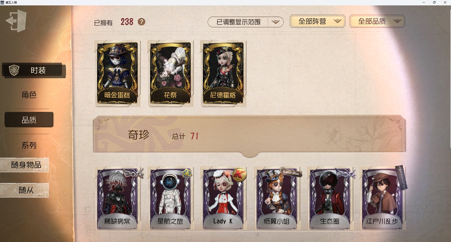 [14461592]苹果官服 手机账号 238时装 9金皮 71紫皮 10随从 102随身物品 【时装】:咒术师-祝祷守夜人-knight-c3破轮-胡桃夹子心理学家-莱拉幸运儿-星航之旅邮差-“亡灵”蜘蛛-花祭蜘蛛-窥伺之心咒术师-缄默者佣兵-寄生佣兵-白鹰之舞“囚徒”-天海兰太郎古董商-黑鸦医生-竹荫守护者咒术师-花边新闻咒术师-祖祖杂技演员-ace杂技演员-气胎病患-稀缺病案园丁-等风来邮差-报纸怪客“博士”-“裁纸机”舞女-流离的月光教授-温泉煮酒空军-黑天鹅之羽空军-尼德霍格祭司-惊鸿机械师-re-swim祭司-“厄运”律师-毛利小五郎蜡像师-淋浴魔术师-白胡子魔术师-广津柳浪昆虫学者-黑女巫昆虫学者-可妮兔昆虫学者-曼陀罗昆虫学者-生态圈哭泣小丑-烟花盖伊机械师-诡笑症厂长-不死护卫大副-海盗电台雕刻家-“玛利亚”雕刻家-“夜魔”“慈善家”-传信官红夫人-宝钻女爵画家-江户川乱步红蝶-彼岸红蝶-竹华舞女-“月佑者”调酒师-“宴舞”玩具商-浴石商人玩具商-纸翼小姐调香师-致命温柔调香师-今夜不再调香师-lady k调香师-红菱艳调香师-冰上舞蹈调香师-花序医生-罪木蜜柑小说家-大师牌医生-采药人医生-雨中曲先知-历战猎人“小女孩”-年岁小提琴家-衔尾蛇前锋-蛮牛之力盲女-不愿醒来的女孩盲女-暗金蛋糕梦之女巫-红龙夫人前锋-霓虹先锋摄影师-en ligne宿伞之魂-日月相随摄影师-宿醉“使徒”-荒野女巫“囚徒”-放映厅入殓师-守钟人 【随身物品】:海岸花环(奇珍)诅咒黑云稀世约束奇珍毁誉之印稀世欢呼(奇珍)纠缠(奇珍)萤之羽稀世禁忌之匙奇珍虎尾奇珍雷电生成器稀世玫瑰手杖蓝奇珍零钱碗奇珍宽恕稀世科学的艺术奇珍见证稀世长生奇珍白泽玉奇珍蝶影奇珍电阻表奇珍火焰精灵奇珍父亲的怀表稀世玫瑰之下稀世蘑菇圈奇珍往日时光奇珍迅捷如风奇珍心形泡泡圈奇珍匣中风云奇珍星图奇珍兔美的魔法棒稀世卡住的齿轮奇珍皮纳塔奇珍弄影稀世逆转之战稀世凝露奇珍尼古拉斯的遗嘱