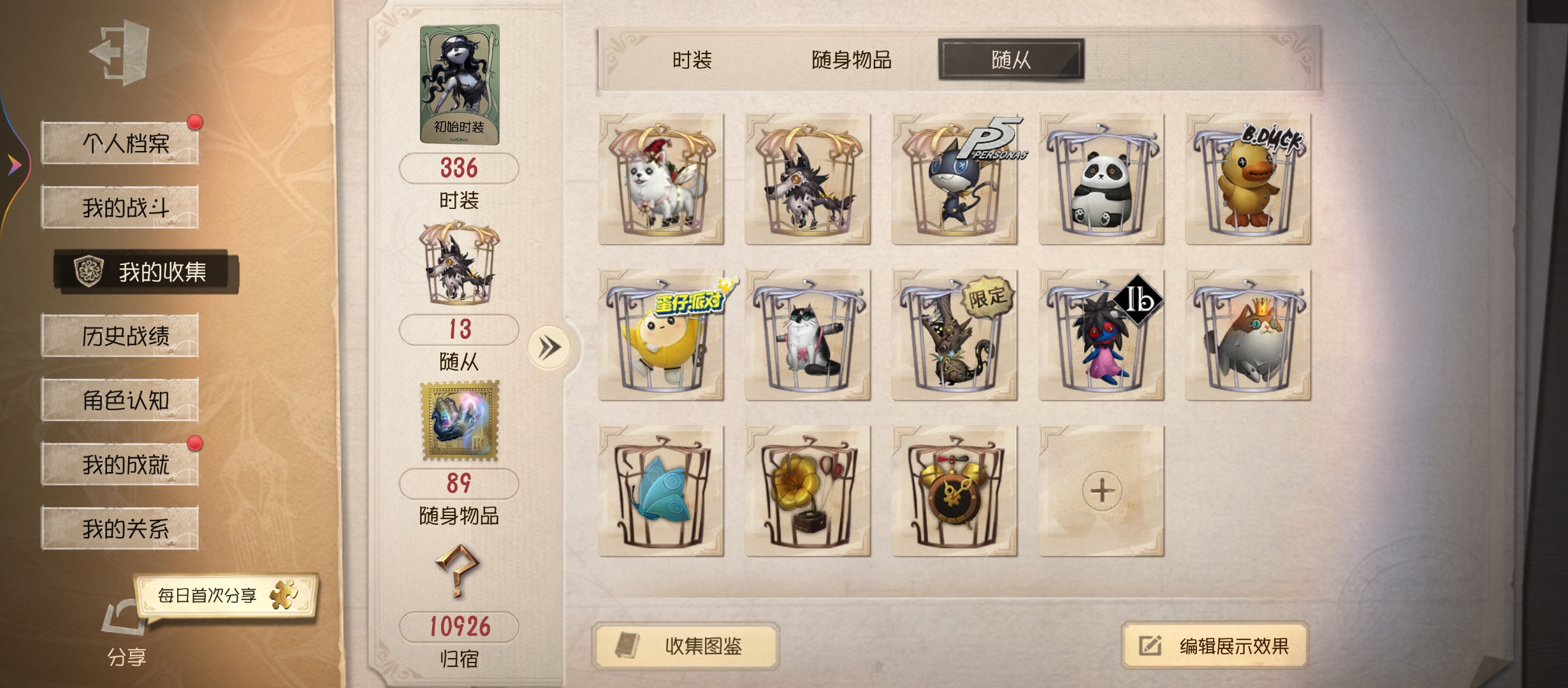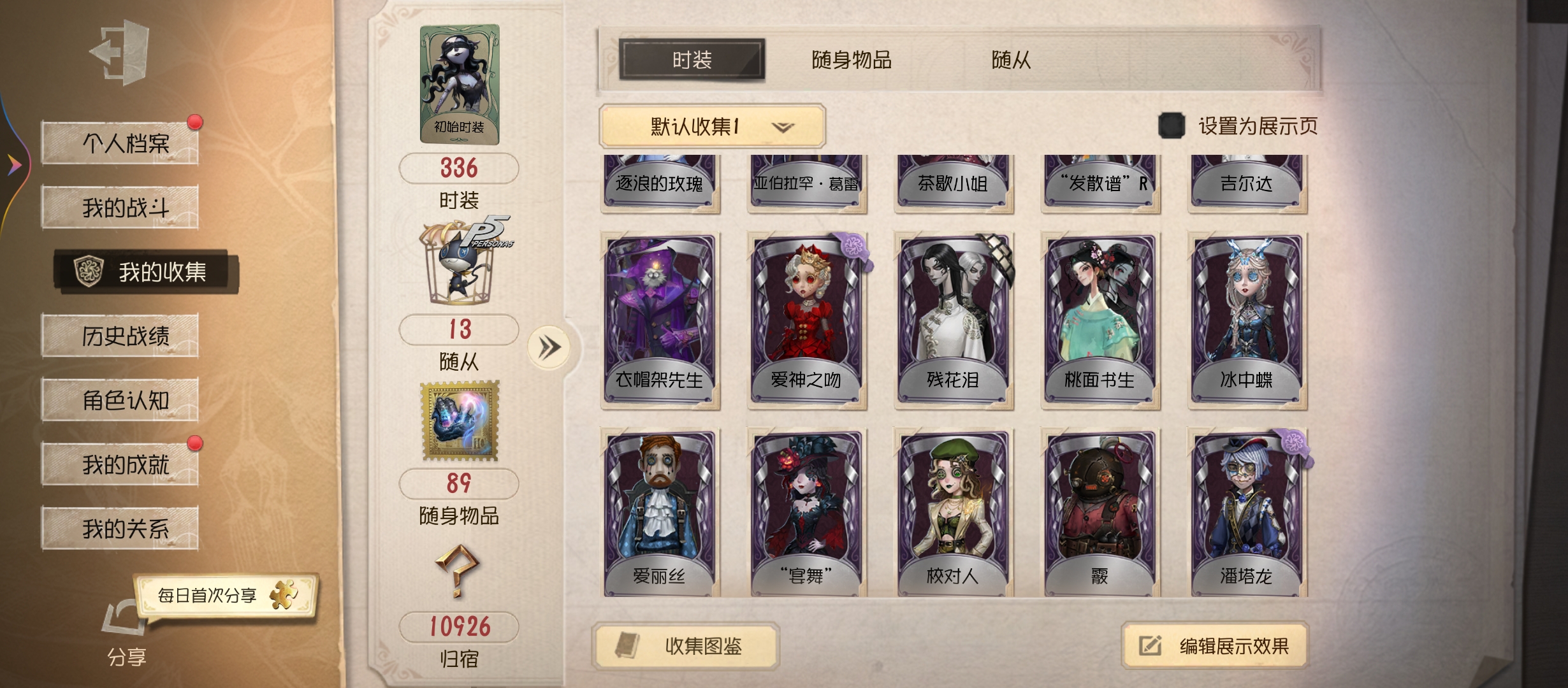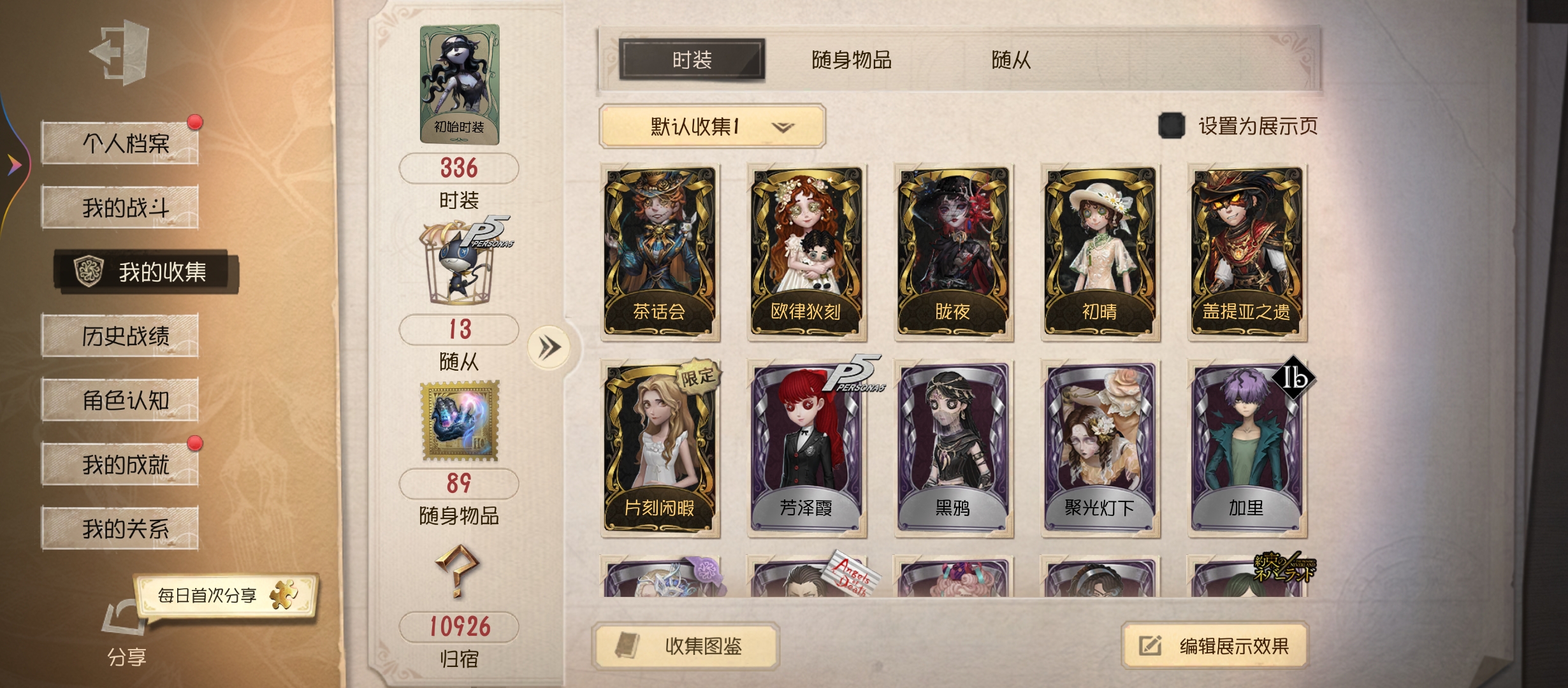 [14488767]第五人格 vivo渠道服 336时装 6金皮 6金挂 欧律狄刻 茶话会 胧夜 初晴 盖提亚之遗 片刻闲暇 芳泽霞 黑鸦 聚光灯下 加里 爱丽丝 爱神之吻