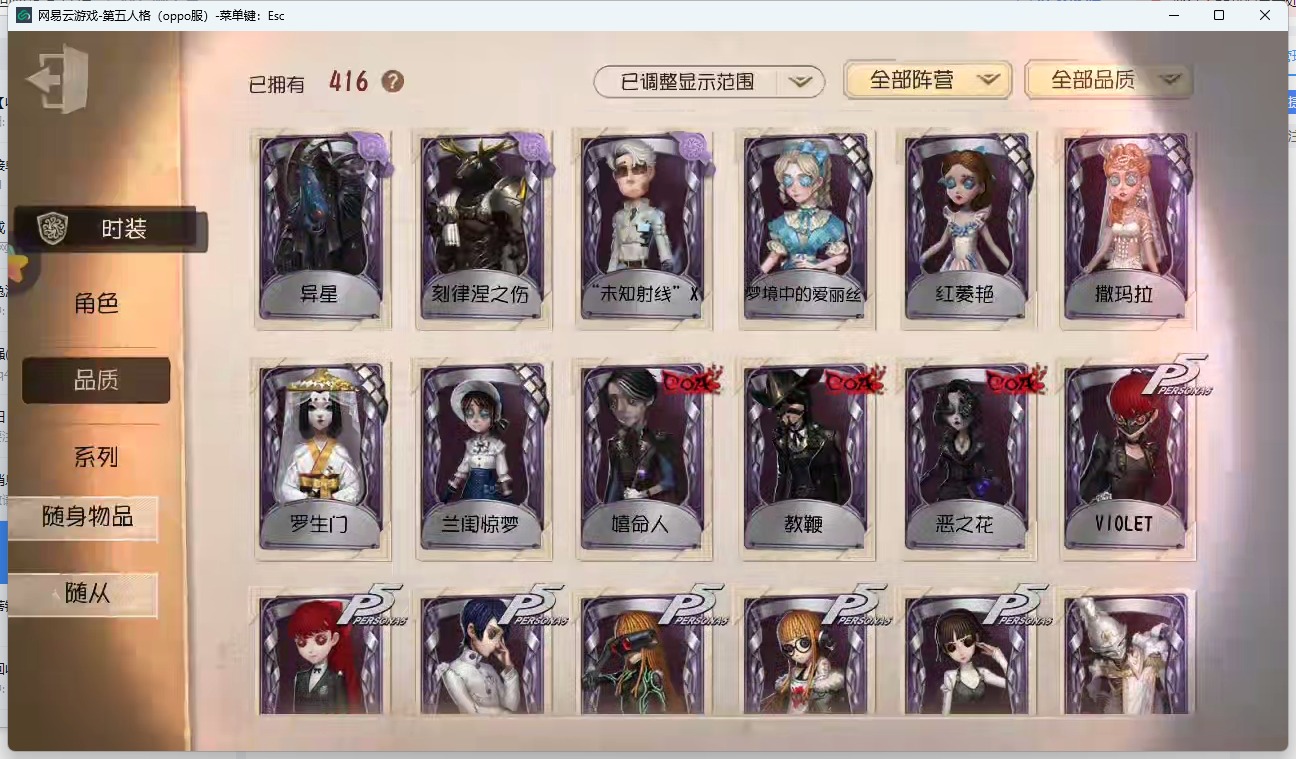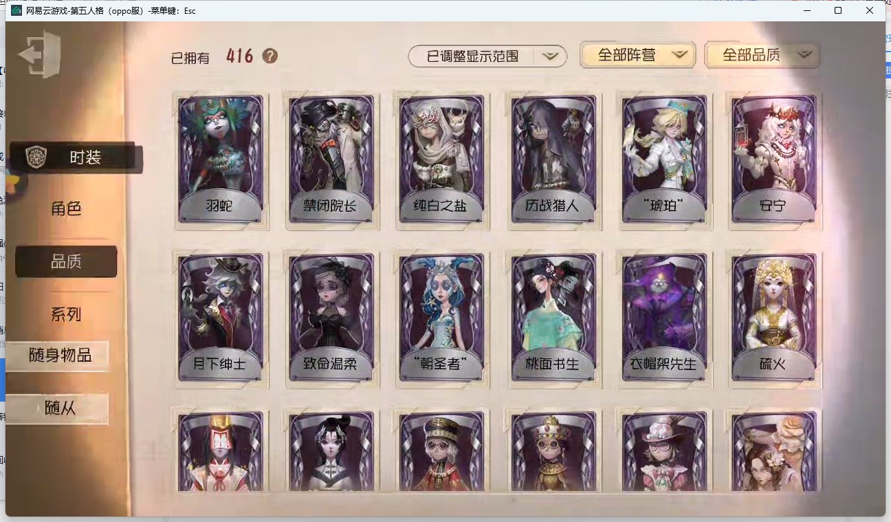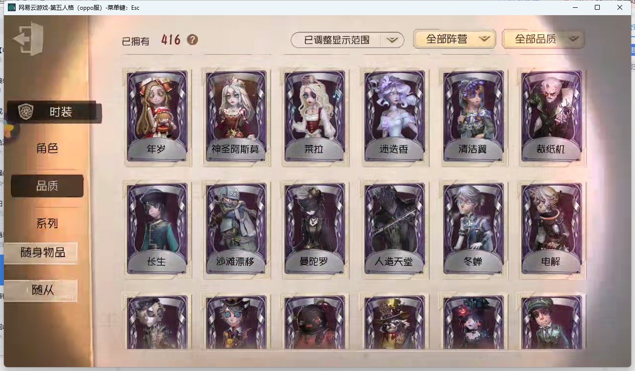 [14772671]oppo-非账号转移 手机账号 416时装 17金皮 114紫皮 16随从 168随身物品 【时装】:心理学家-长夜勘探员-盖提亚之遗医生-流萤园丁-艾玛园丁-怪鸟蜘蛛-花祭杂技演员-气胎“心理学家”-恒梦病患-溯光记者-伊布医生-司药画家-掌中篆记冒险家-赞因心理学家-菲伦梦之女巫-裁缝夫人病患-休塔尔克小说家-肖驰幸运儿-“未知射线”x入殓师-变彩记者-梦境中的爱丽丝调香师-buffy邮差-报纸怪客画家-多色印刷园丁-兰闺惊梦击球手-迫降专家祭司-撒玛拉空军-尼德霍格机械师-不会枯萎的花鹿头-刻律涅之伤红夫人-夜潮画家-黄金比例画家-江户川乱步红蝶-罗生门黄衣之主-异星调酒师-海盐特调舞女-恶之花调香师-今夜不再调香师-lady k调香师-红菱艳医生-痊愈牛仔-教鞭盲女-吉尔达梦之女巫-川上富江入殓师-“盲区”入殓师-嬉命人