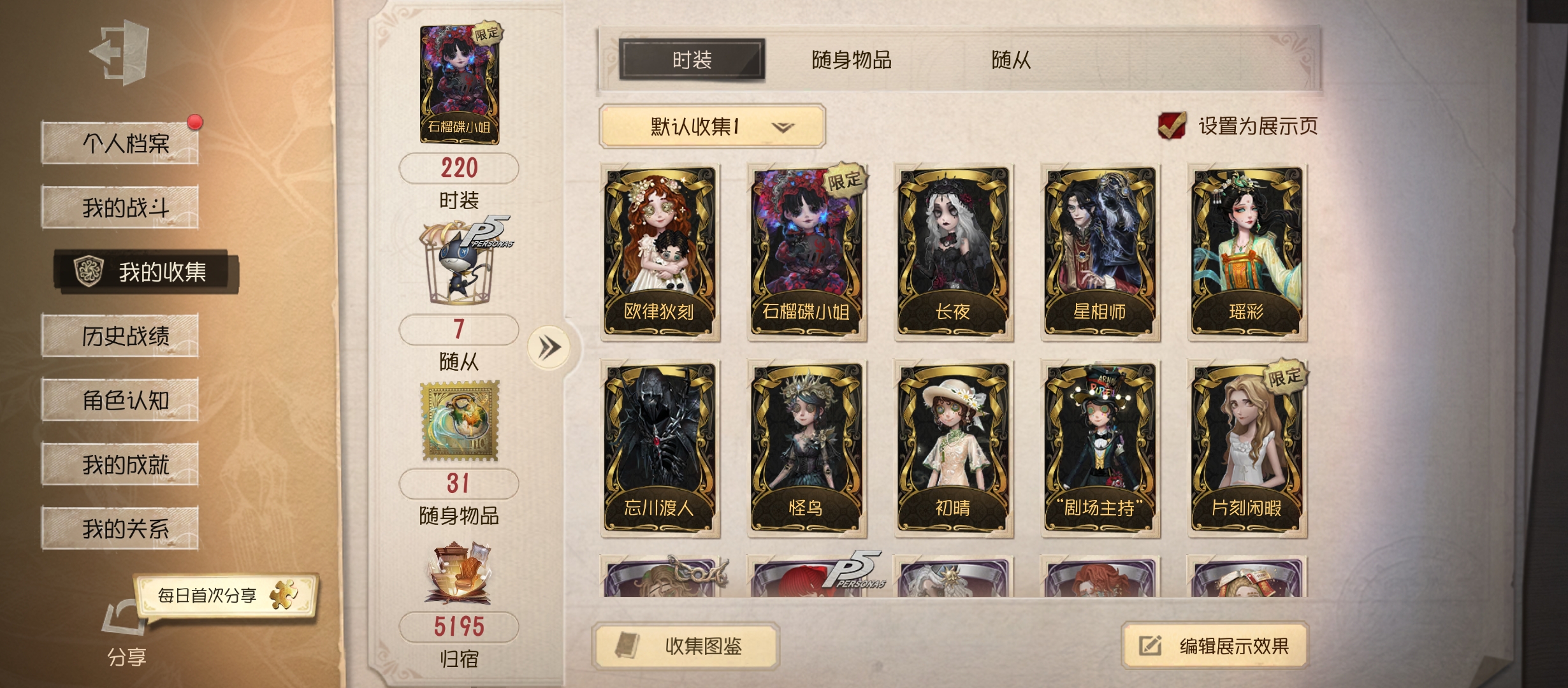 [14776152]第五人格 安卓官服 换绑冷却1.18 万薯 五千八线索 小女孩双金 10金皮 4金挂 石榴碟小姐 欧律狄刻 长夜 星相师 瑶彩 忘川渡人 怪鸟 初晴 剧场主持 片刻闲暇 百万人鱼 向导 清洁翼 纸心 梅爱丽