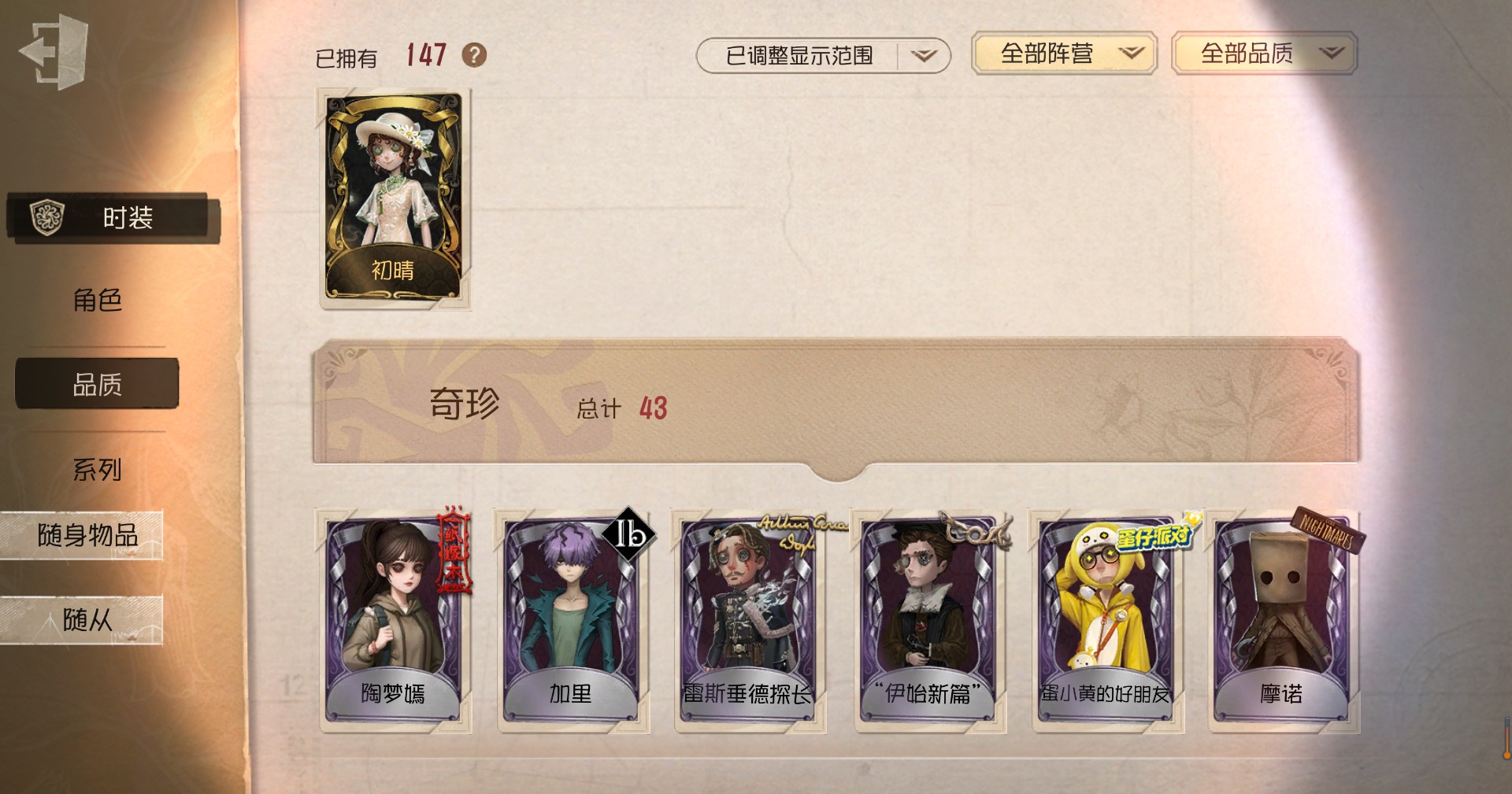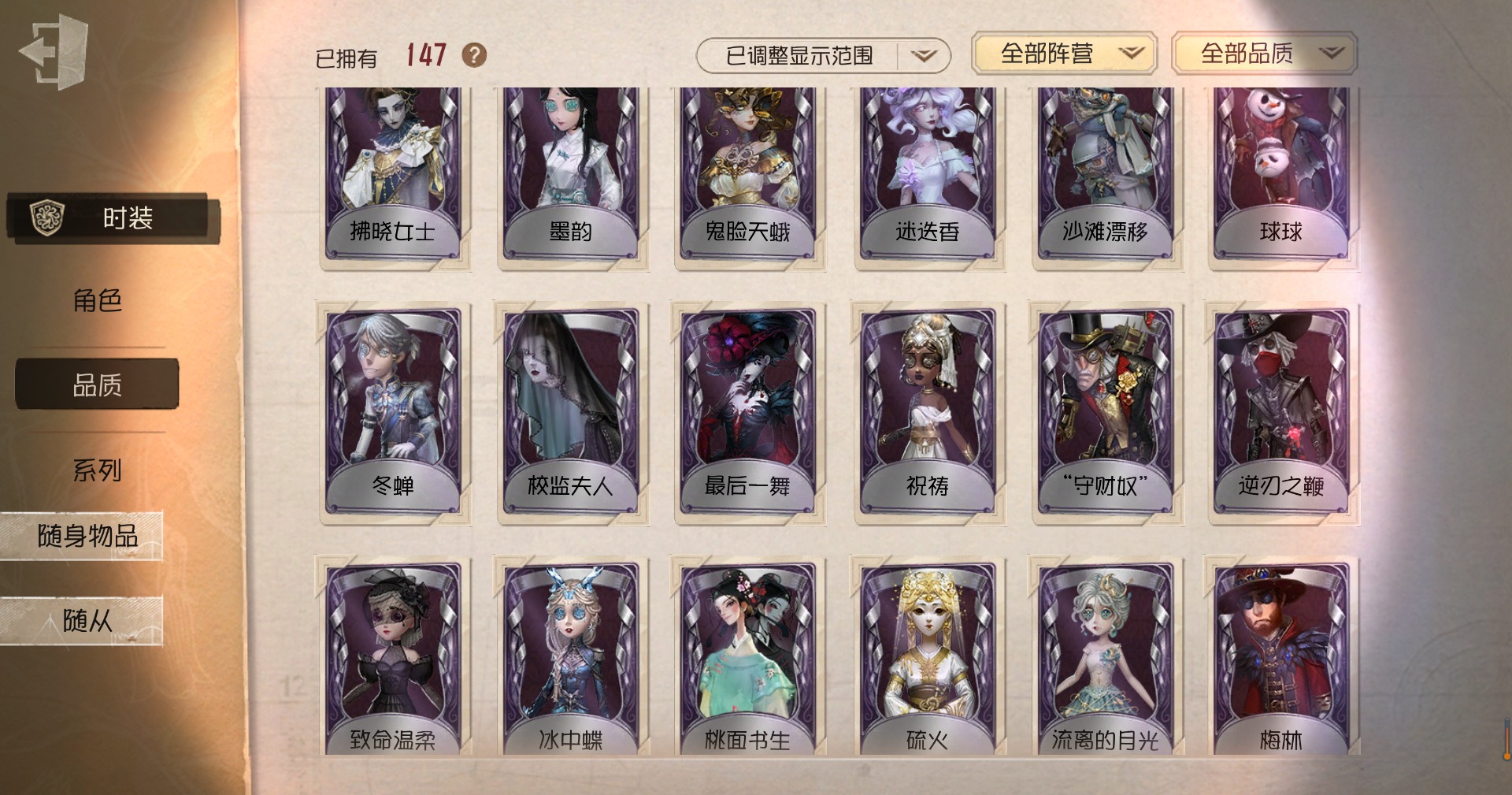 [15573429]安卓官服 手机账号 147时装 7金皮 43紫皮 8随从 53随身物品 【时装】勘探员-盖提亚之遗园丁初晴红蝶-壹原侑子佣兵-百目鬼静爱哭鬼-摩诺渔女-chef k园丁-异想hello kitty渔女-迷迭香古董商-陶梦嫣歌剧演员-拂晓女士“杰克”-加里昆虫学者-缚愿宿伞之魂-桃面书生破轮-沙滩漂移古董商-墨韵渔女-鬼脸天蛾红夫人-悦乐酷洛米幸运儿-蛋小黄的好朋友大副-雷斯垂德探长医生-司药小说家-“伊始新篇”舞女-流离的月光空军-尼德霍格祭司-冰中蝶魔术师-梅林律师-白兔先生大副-海盗电台疯眼-“守财奴”红夫人-女大公红夫人-最后一舞调香师-致命温柔调香师-lady k破轮-球球牛仔-逆刃之鞭盲女-吉尔达梦之女巫-川上富江宿伞之魂-程小时陆光“使徒”-校监夫人“囚徒”-冬蝉 【随身物品】夏(稀世)醒梦铃奇珍漂浮奇珍拾贝奇珍酩酊奇珍欢呼(奇珍)未奏的乐章(奇珍)笔墨藏锋(奇珍)折柳稀世御狐神乐奇珍玫瑰之下稀世玫瑰手杖蓝奇珍白泽玉奇珍冰晶奇珍迅捷如风奇珍厌离稀世时光相机奇珍