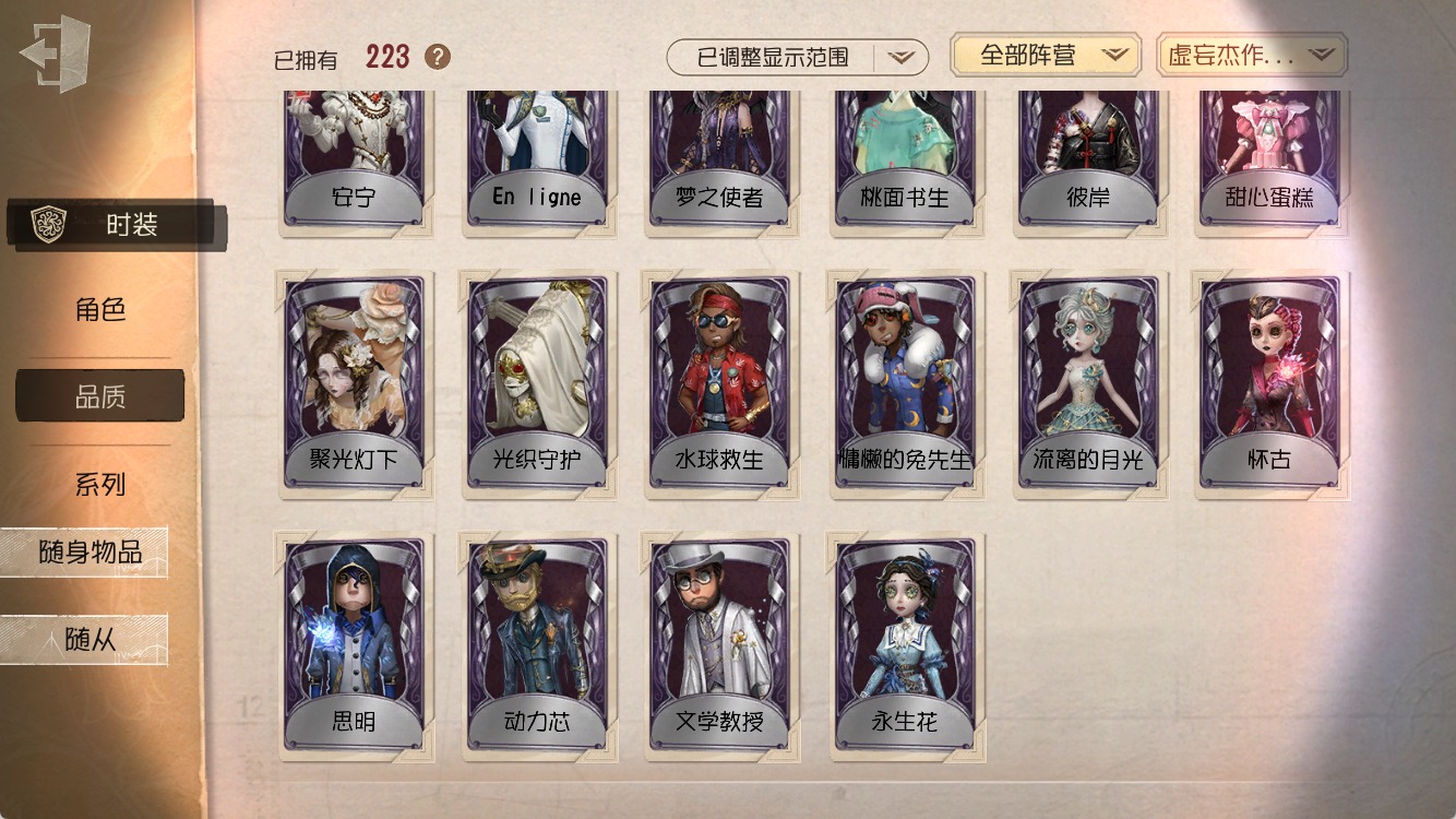 [15573498]安卓官服 手机账号 223时装 11金皮 64紫皮 10随从 88随身物品 【时装】园丁-源自星辰爱丽丝·德罗斯-未至之人爱丽丝·德罗斯-片刻闲暇拉拉队员-bishop-f1使徒-多加雷萨医生-永生花牛仔-船影入殓师-记忆之骑爱哭鬼-摩诺作曲家-先驱探索歌剧演员-幕外之音蜘蛛-光织守护杂技演员-ace摄影师-安宁梦之女巫-裁缝夫人咒术师-噬恶之渊古董商-陶梦嫣作曲家-澄明的理性病患-休塔尔克昆虫学者-缚愿26号守卫-秘密大厨雕刻家-笼中偶击球手-无用功g画家-掌中篆记佣兵-弦音畸变火灾调查员-“膨化”宿伞之魂-桃面书生“法罗女士”-芳泽霞蜘蛛-聚光灯下前锋-水球救生先知-纯白之盐调酒师-逐浪的玫瑰拉拉队员-奇趣美乐蒂魔术师-动力芯幸运儿-蛋小黄的好朋友大副-雷斯垂德探长医生-司药孽蜥-耶梦加得小说家-“伊始新篇”祭司-名誉首席舞女-流离的月光哭泣小丑-熄灭的太阳画家-多色印刷木偶师-义体再构飞行家-警戒哨台击球手-迫降专家祭司-梦之使者魔术师-文学教授哭泣小丑-烟花盖伊雕刻家-动物女巫病患-星辰“杰克”-忘川渡人红蝶-竹华红夫人-贝拉夫人调酒师-海盐特调前锋-慵懒的兔先生盲女-甜心蛋糕梦之女巫-川上富江摄影师-en ligne入殓师-喜多川祐介宿伞之魂-十字路口的美少年宿伞之魂-残花泪 【随身物品】荣光的残像(稀世)灯龙影(稀世)晴天娃娃(奇珍)进化稀世落木奇珍电光火石奇珍毁誉之印稀世凝固的声音奇珍爆燃奇珍漂浮奇珍拾贝奇珍“女王蜂”-命茧奇珍酩酊奇珍日晷密钥(奇珍)未奏的乐章(奇珍)糖果鬼(奇珍)笔墨藏锋(奇珍)折柳稀世纠缠(奇珍)呼唤稀世唤潮稀世玫瑰手杖蓝奇珍宽恕稀世白泽玉奇珍厌离稀世鹰羽奇珍日与月奇珍噬魂稀世