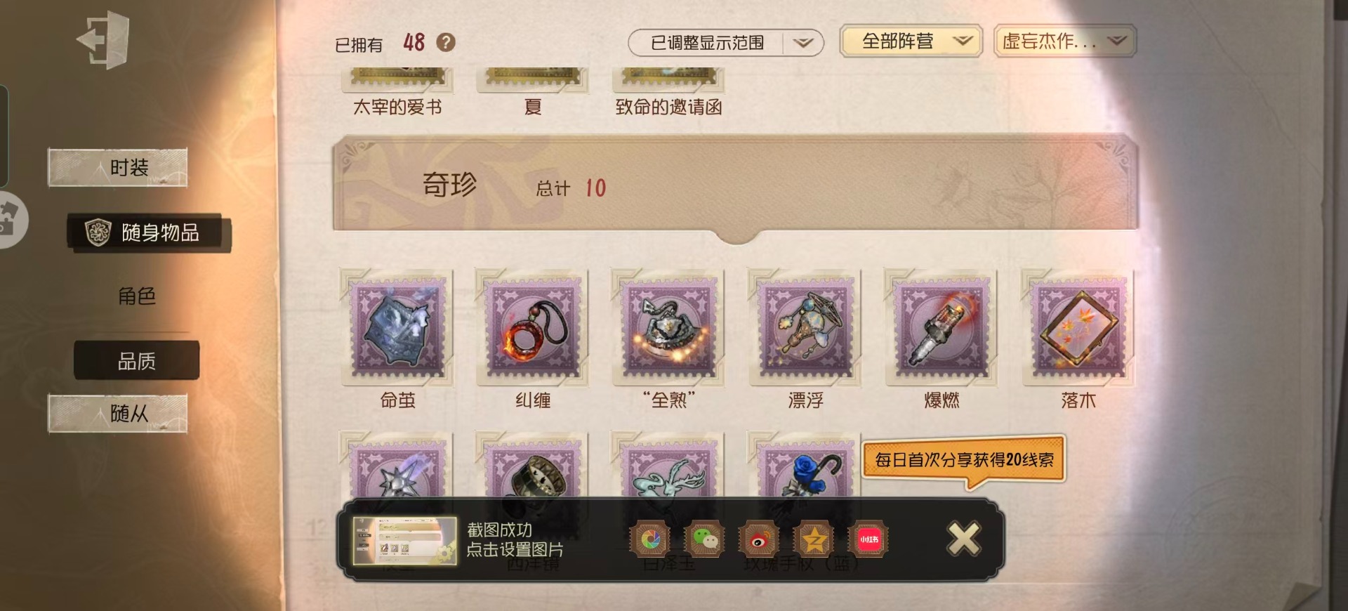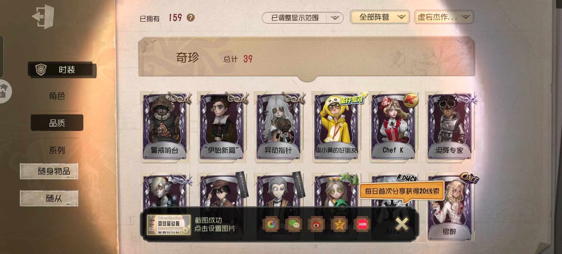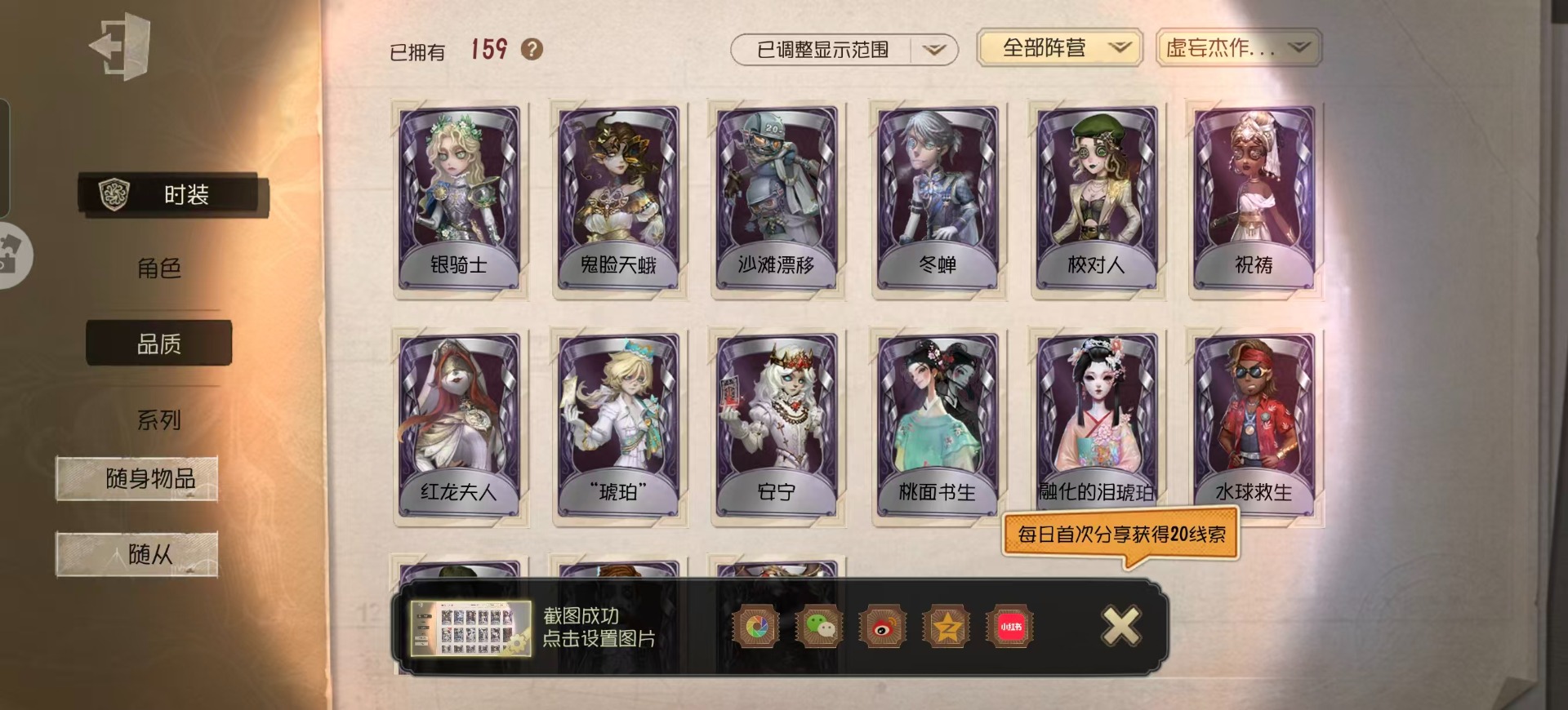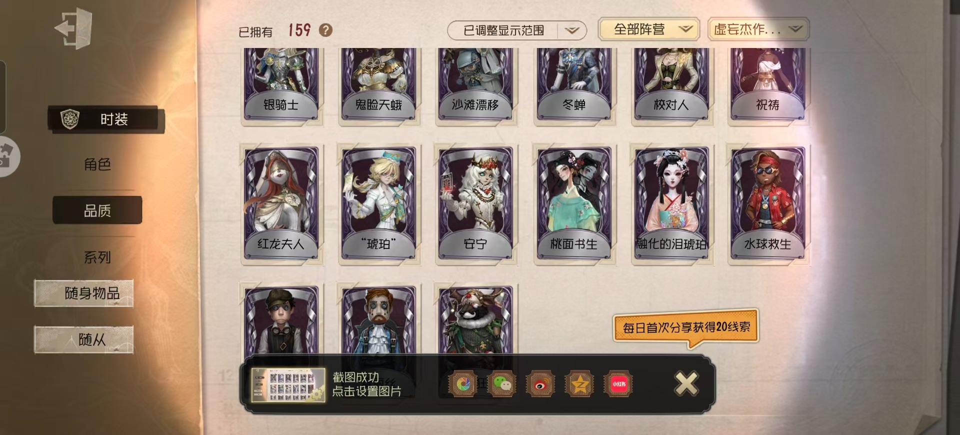 [15573510]华为 手机账号 159时装 5金皮 39紫皮 9随从 48随身物品 【时装】守夜人-knight-c3爱丽丝·德罗斯-片刻闲暇拉拉队员-bishop-f1心理学家-长夜咒术师-祝祷“心理学家”-朱丽叶渔女-chef k“小女孩”-欧律狄刻红蝶-融化的泪琥珀昆虫学者-缚愿26号守卫-秘密大厨牛仔-春信红蝶-胧夜时空之影-“有机磷”宿伞之魂-桃面书生“心理学家”-银骑士摄影师-“琥珀”破轮-沙滩漂移蜡像师-收藏品前锋-水球救生渔女-鬼脸天蛾幸运儿-蛋小黄的好朋友小说家-“伊始新篇”调酒师-校对人“小女孩”-异动指针飞行家-警戒哨台击球手-迫降专家哭泣小丑-蚕食者“小女孩”-年岁“小女孩”-桃乐丝梦之女巫-红龙夫人摄影师-宿醉入殓师-哈姆雷特“囚徒”-冬蝉“囚徒”-太宰治宿伞之魂-残花泪 【随身物品】夏(稀世)太宰的爱书(稀世)致命的邀请函稀世落木奇珍“全熟”奇珍爆燃奇珍漂浮奇珍“女王蜂”-命茧奇珍纠缠(奇珍)