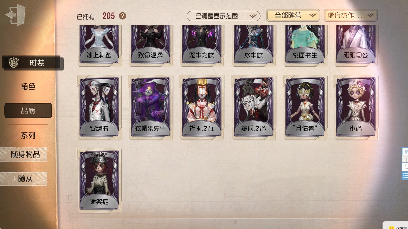[15573553]安卓官服 邮箱账号 205时装 6金皮 55紫皮 16随从 104随身物品 【时装】园丁-源自星辰佣兵-珍奇柜拉拉队员-bishop-f1调酒师-夜光杯机械师-纸心心理学家-莱拉蜘蛛-窥伺之心调香师-提炼师气象学家-茶歇小姐小说家-肖驰调香师-聂莫黎黄衣之主-衣帽架先生教授-吟游诗人骑士-艺术品商人冒险家-赞因宿伞之魂-桃面书生病患-湖中影调香师-buffy邮差-报纸怪客勘探员-盛夏飞盘记者-梦境中的爱丽丝小说家-“伊始新篇”“博士”-“裁纸机”击球手-迫降专家祭司-冰中蝶勘探员-鼹鼠先生勘探员-黑郁金香勘探员-矿业董事哭泣小丑-炮弹飞船雕刻家-动物女巫画家-江户川乱步红蝶-祈雨之女红夫人-最后一舞舞女-“月佑者”调香师-笼中之蝶调香师-致命温柔调香师-今夜不再调香师-lady k调香师-红菱艳调香师-冰上舞蹈调香师-花序调酒师-女高音调酒师-“宴舞”园丁-宇宙女巫盲女-吉尔达盲女-海女巫宿伞之魂-阴阳司公入殓师-守钟人宿伞之魂-十字路口的美少年宿伞之魂-安魂曲 【随身物品】调制架(稀世)进化稀世落木奇珍永恒之沙奇珍枯萎的花冠奇珍缚翼稀世纸扎祠堂稀世结冰的齿轮(奇珍)电掣(奇珍)欢呼(奇珍)秘密(奇珍)纠缠(奇珍)御狐神乐奇珍机关囚笼奇珍虎尾奇珍零钱碗奇珍玫瑰之下稀世玫瑰手杖蓝奇珍巨人风车奇珍净面奇珍火焰精灵奇珍父亲的怀表稀世密码筒奇珍巫毒匕首奇珍“星辰”稀世鹰羽奇珍邪火宝箱稀世凝聚之水奇珍日与月奇珍手机奇珍失败的杰作奇珍