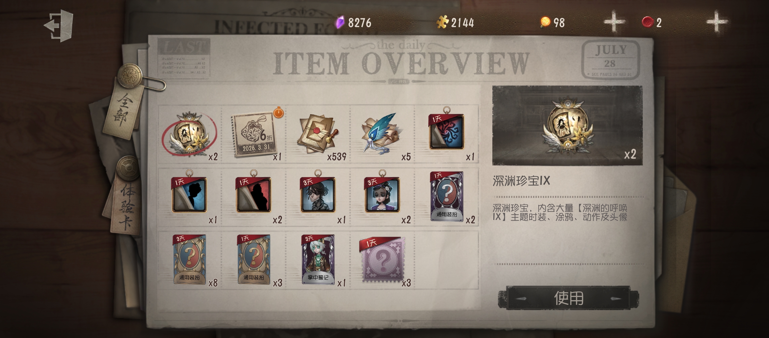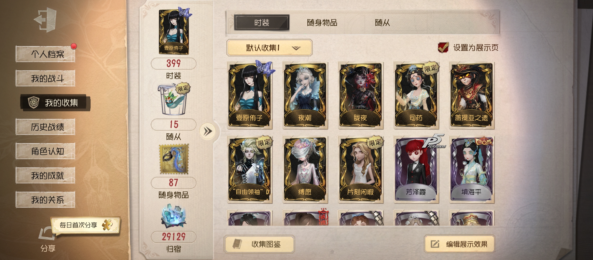 [15610140]第五人格 安卓官服换绑冷却2.8 红蝶限定 399时装 8金皮 7金挂 壹原侑子 夜潮 胧夜 司药 盖提亚之遗 自由领袖d 缚愿 片刻闲暇 芳泽霞 填海平 墨韵 桃乐丝 百万人鱼 鬼脸天蛾 百万人鱼 破魔之刃