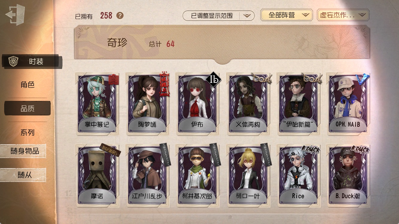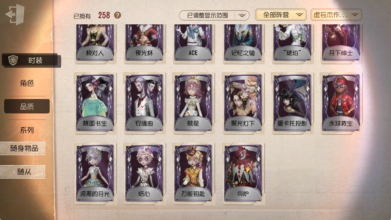 [15619763]安卓官服 手机账号 258时装 14金皮 64紫皮 13随从 95随身物品 【时装】:守夜人-knight-c3拉拉队员-bishop-f1心理学家-长夜画家-温暖的平安夜调酒师-夜光杯作曲家-幽灵帆小丑-捣蛋裘克爱哭鬼-摩诺隐士-游隼隐士-升学礼蜘蛛-墨卡托投影佣兵-b.duck潮佣兵-中岛敦守墓人-半精灵骑士杂技演员-ace杂技演员-梶井基次郎牛仔-船影机械师-纸心勘探员-璀璨的孤狼记者-伊布病患-溯光逃脱大师-囚星喧嚣-隐于夜色中作曲家-暮影愚人金-陨星盲女-赎星画家-掌中篆记26号守卫-秘密大厨古董商-陶梦嫣医生-司药玩具商-清洁翼佣兵-oph.naib邮差-潘塔龙时空之影-“有机磷”宿伞之魂-桃面书生病患-湖中影摄影师-“琥珀”“法罗女士”-violet入殓师-记忆之骑宿伞之魂-麒麟商人调酒师-逐浪的玫瑰囚徒-rice“法罗女士”-芳泽霞蜘蛛-聚光灯下记者-梦境中的爱丽丝木偶师-义体再构小说家-“伊始新篇”调酒师-校对人蜡像师-收藏品“愚人金”-辉锑矿空军-万能钥匙前锋-水球救生舞女-流离的月光哭泣小丑-熄灭的太阳木偶师-斐乐蒙的圣坛“喧嚣”-星之王画家-多色印刷空军-樋口一叶勘探员-黑郁金香昆虫学者-曼陀罗昆虫学者-动植物学教授画家-逃亡者画家-江户川乱步红夫人-夜潮小丑-焗炉守墓人-奶酪牛仔-教鞭梦之女巫-川上富江摄影师-亚兹拉尔摄影师-月下绅士宿伞之魂-残花泪“囚徒”-灵犀妙探“囚徒”-太宰治宿伞之魂-安魂曲 【随身物品】:太宰的爱书(稀世)全冰饮料(奇珍)夜星(奇珍)海之低语(奇珍)致命的邀请函稀世进化稀世转位稀世“全熟”奇珍玉麒麟稀世入梦枕奇珍醒梦铃奇珍毁誉之印稀世落木奇珍凝固的声音奇珍漂浮奇珍枯萎的花冠奇珍酩酊奇珍月光沙漏奇珍欢呼(奇珍)摇头鬼(奇珍)旧日征帆(奇珍)折柳稀世纠缠(奇珍)虎尾稀世玫瑰手杖蓝奇珍白泽玉奇珍共潮生奇珍星象仪奇珍葡萄酒稀世日与月奇珍手机稀世