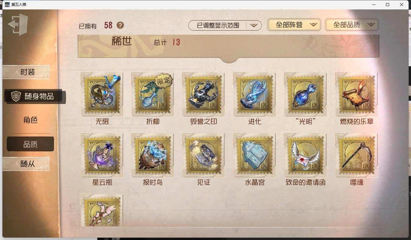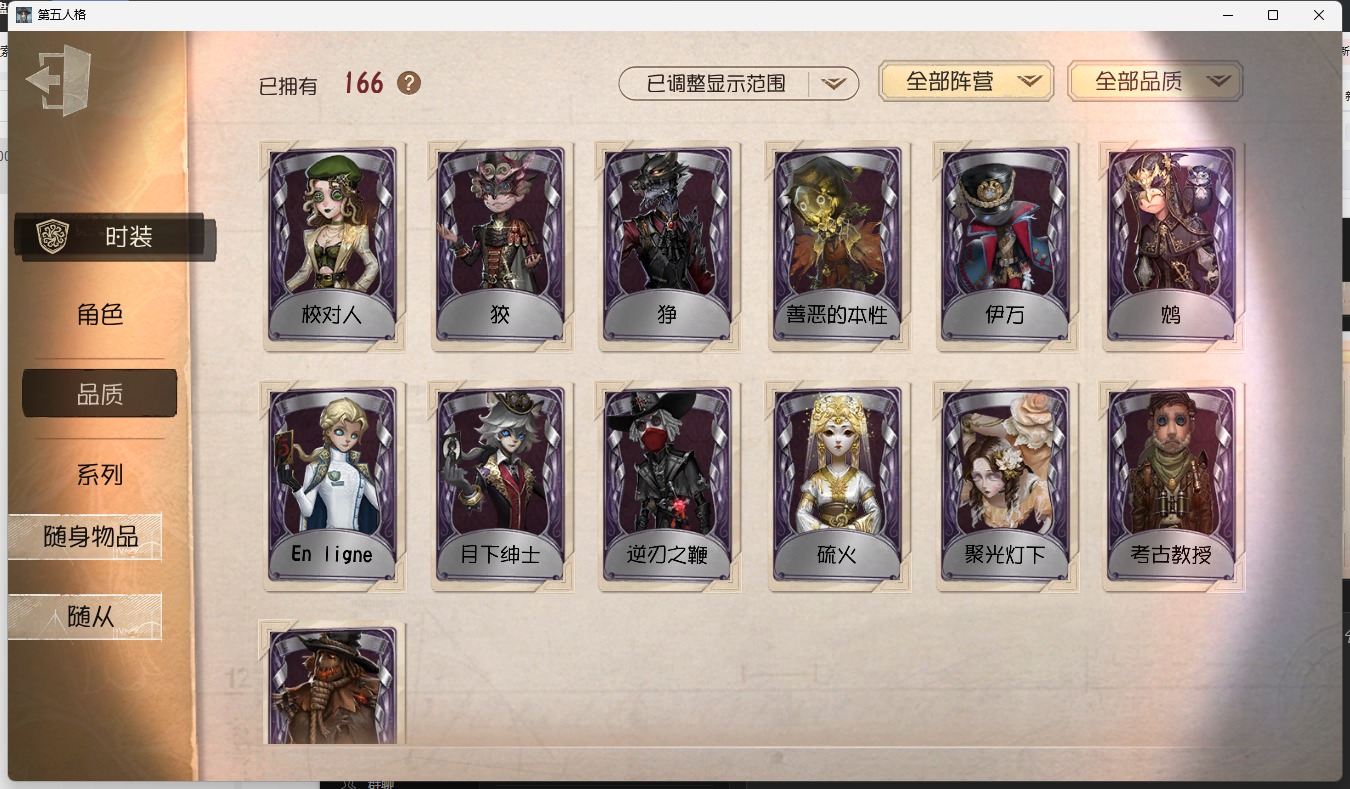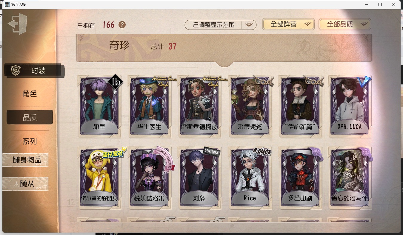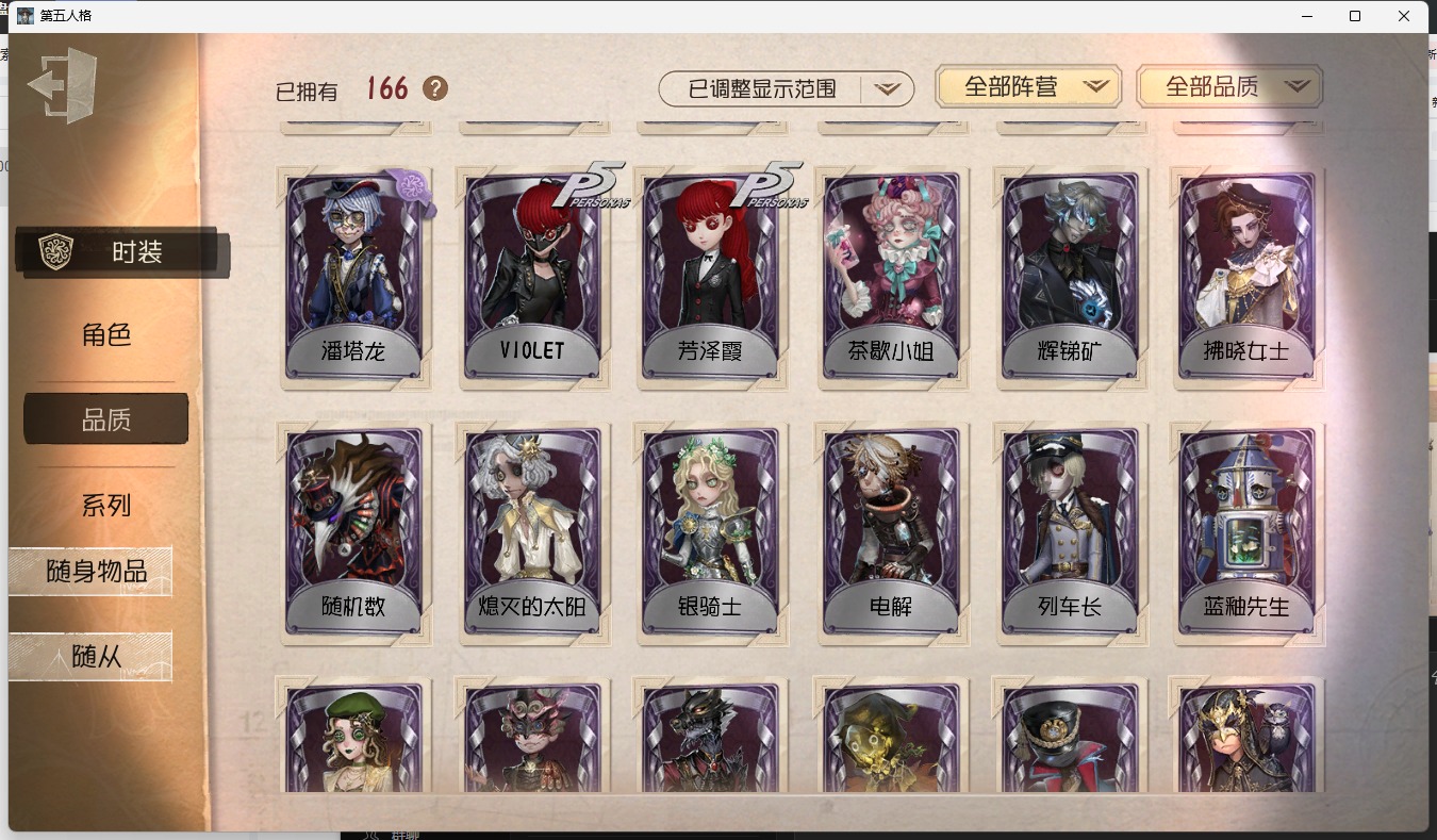 [15651459]安卓官服 手机账号 166时装 11金皮 37紫皮 9随从 58随身物品 【时装】:宿伞之魂-粲然的北辰气象学家-茶歇小姐“杰克”-加里邮差-华生医生大副-雷斯垂德探长雕刻家-善忘的海马体记者-华生小姐“囚徒”-oph.luca爱哭鬼-善恶的本性歌剧演员-拂晓女士蜡像师-星相师隐士-刘枭幸运儿-蛋小黄的好朋友邮差-潘塔龙“心理学家”-银骑士“法罗女士”-芳泽霞蜘蛛-聚光灯下律师-倒逆之汞红蝶-硫火囚徒-rice小说家-“伊始新篇”26号守卫-蓝釉先生医生-司药拉拉队员-采集速巡蜘蛛-不息载械“愚人金”-辉锑矿哭泣小丑-熄灭的太阳“喧嚣”-星之王画家-多色印刷调酒师-校对人冒险家-考古教授“噩梦”-随机数爱哭鬼-伊万红蝶-竹华孽蜥-狰盲女-暗金蛋糕“囚徒”-电解摄影师-亚兹拉尔摄影师-月下绅士摄影师-en ligne守墓人-列车长“囚徒”-灵犀妙探