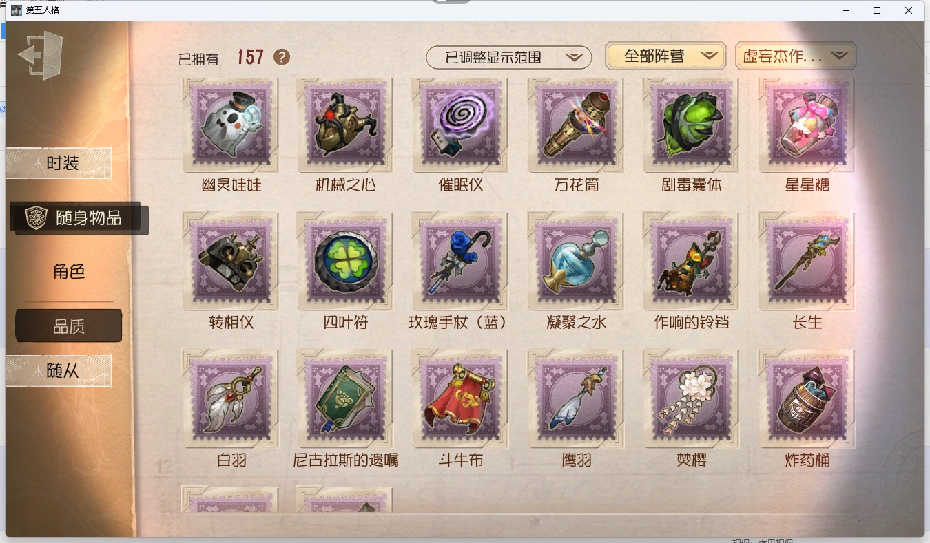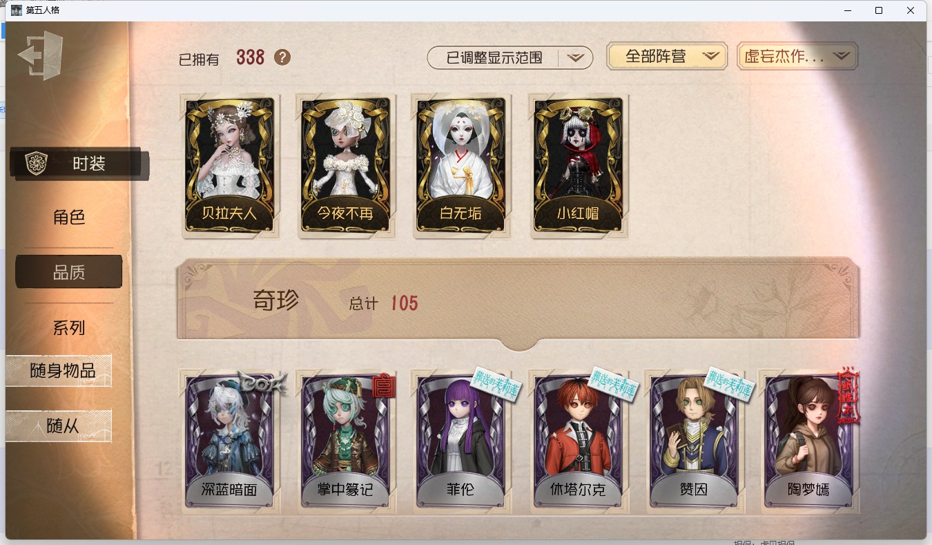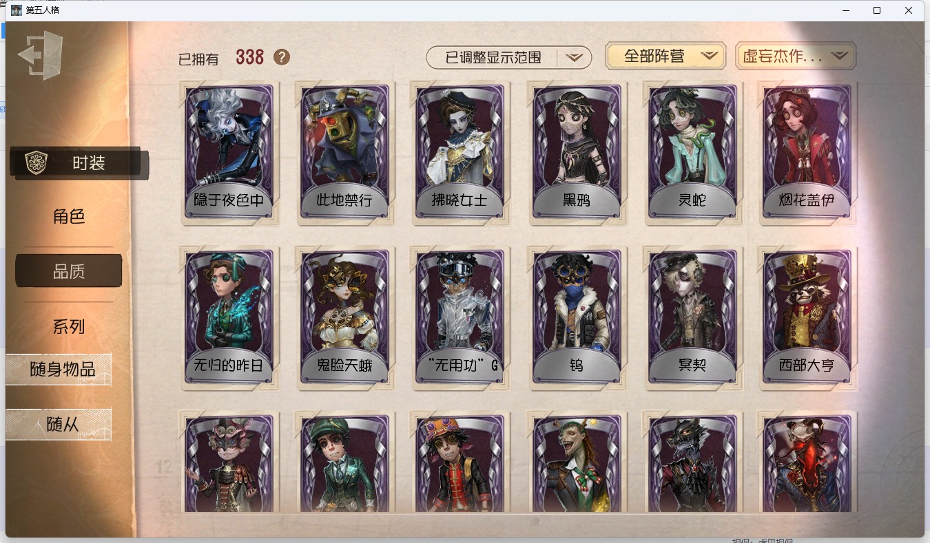[15678938]安卓官服 手机账号 338时装 10金皮 105紫皮 16随从 157随身物品 【时装】蜘蛛-水晶烛台蜘蛛-光织守护摄影师-安宁守墓人-冥契 “骑士”-辛美尔歌剧演员-拂晓女士弓箭手-发散谱r昆虫学者-缚愿律师-运筹音核裂响佣兵-蒸汽少年疯眼-圣夜巫师渔女-鬼脸天蛾哭泣小丑-灵蛇杂技演员-李天辰邮差-华生医生26号守卫-西部大亨空军-琼楼遗恨机械师-糖果少女鹿头-刻律涅之伤鹿头-熔铁猎犬鹿头-圣诞狂鹿鹿头-金匠魔术师-光学镜面冒险家-发明家鹿头-林间狩者鹿头-蒸汽朋克勘探员-迷途诗人厂长-“阿拉丁”“噩梦”-“渊”机械师-小红帽红蝶-白无垢红夫人-贝拉夫人先知-月相调香师-今夜不再舞女-梵音之舞园丁-罗刹绯春园丁-艾玛先知-独行者医生-炽天使调香师-时之砂前锋-沉眠的兔先生前锋-坂本龙司盲女-音波摄影师-月下绅士入殓师-喜多川祐介入殓师-嬉命人宿伞之魂-残花泪 【随身物品】对决(稀世)转相仪奇珍作响的铃铛奇珍炸药桶奇珍深海祝祷奇珍强化手臂(奇珍)拾贝奇珍枯萎的花冠奇珍勇者之剑(稀世)小丑-底牌奇珍“女王蜂”-命茧奇珍月光沙漏奇珍未奏的乐章(奇珍)心海之梦奇珍馈赠稀世机械之心奇珍剧毒囊体奇珍玫瑰之下稀世玫瑰手杖蓝奇珍玫瑰手杖奇珍长生奇珍催眠仪奇珍白羽奇珍斗牛布奇珍黑胶碟奇珍鬼脸披肩奇珍火焰精灵奇珍海盗罗盘奇珍焚樱奇珍幽灵娃娃奇珍星星糖奇珍完美人偶稀世往日时光奇珍万花筒奇珍园丁布偶稀世鹰羽奇珍邪火宝箱稀世vote盒子奇珍尼古拉斯的遗嘱奇珍逆转之战稀世涅槃稀世凝聚之水奇珍四叶符奇珍