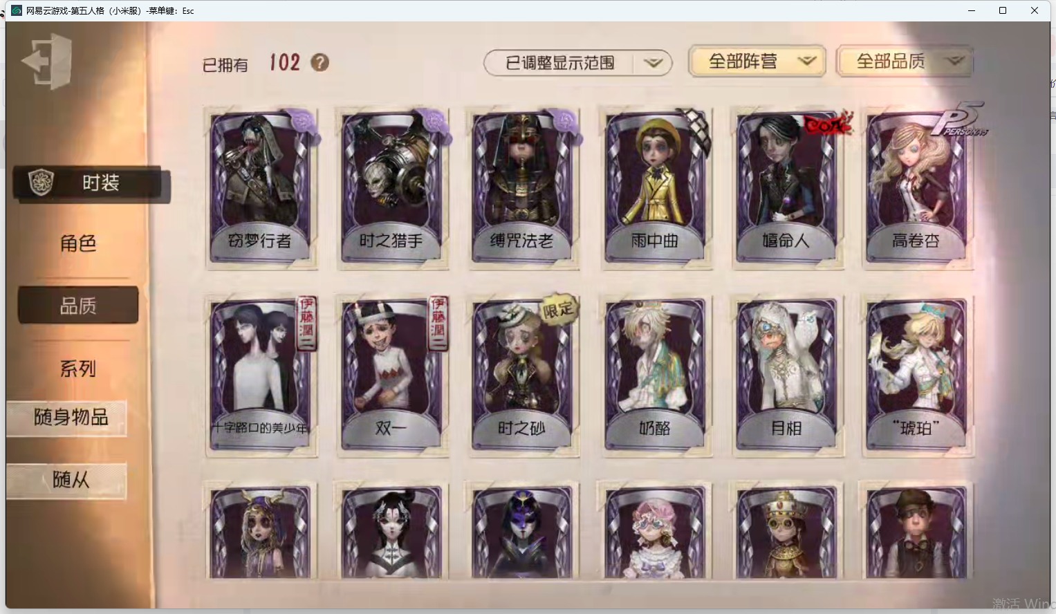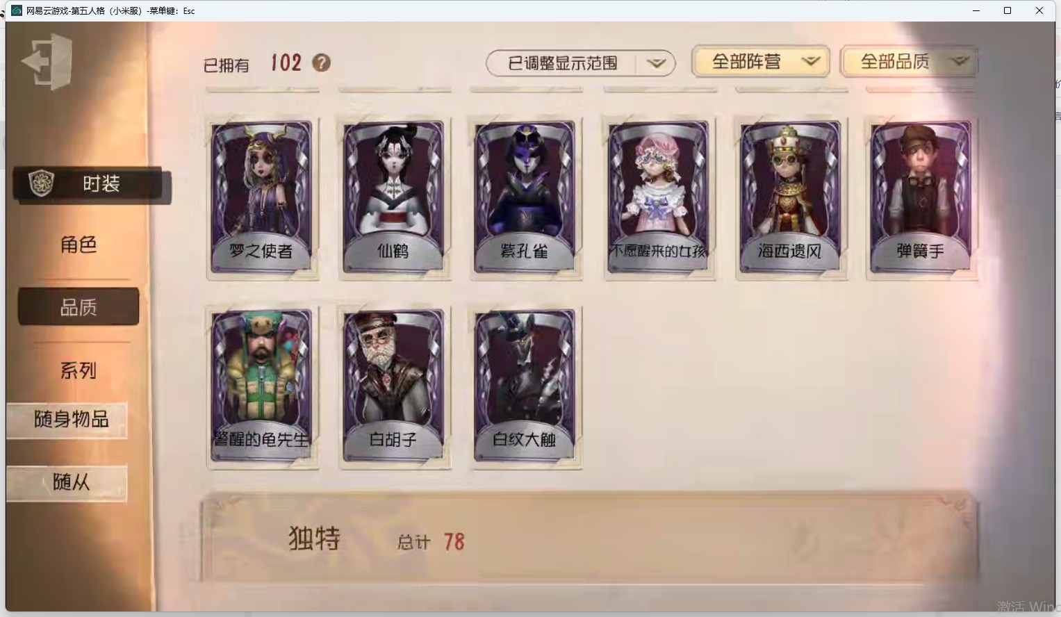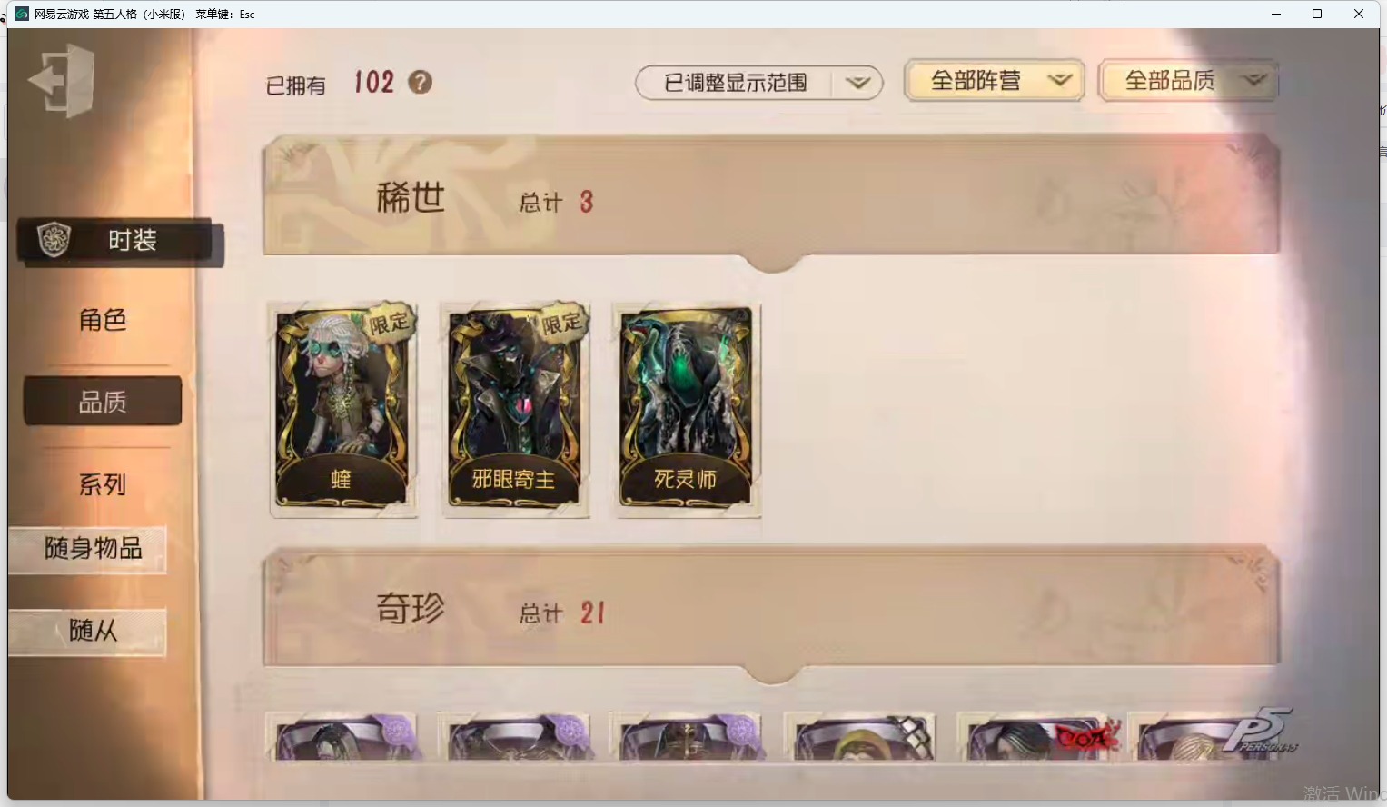 [15682385]小米-非账号转移 手机账号 102时装 3金皮 21紫皮 7随从 45随身物品 【时装】:佣兵-弹簧手佣兵-缚咒法老蜘蛛-时之猎手摄影师-“琥珀”祭司-梦之使者“杰克”-白纹大触“杰克”-邪眼寄主红蝶-紫孔雀红蝶-仙鹤黄衣之主-死灵师魔术师-白胡子舞女-高卷杏守墓人-奶酪调香师-时之砂医生-雨中曲幸运儿-双一先知-月相孽蜥-窃梦行者冒险家-警醒的龟先生盲女-海西遗风盲女-不愿醒来的女孩宿伞之魂-十字路口的美少年“囚徒”-蝰入殓师-嬉命人 【随身物品】:最后的馈赠稀世摇头鬼(奇珍)玫瑰手杖奇珍黑胶碟奇珍催眠仪奇珍白羽奇珍电阻表奇珍火焰精灵奇珍蝶醉奇珍玫瑰手杖蓝奇珍梦魇结晶稀世星象仪奇珍vote盒子奇珍一步之遥奇珍噬魂稀世