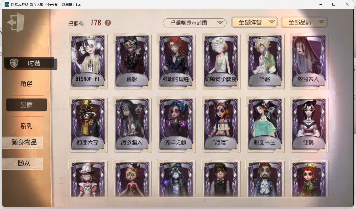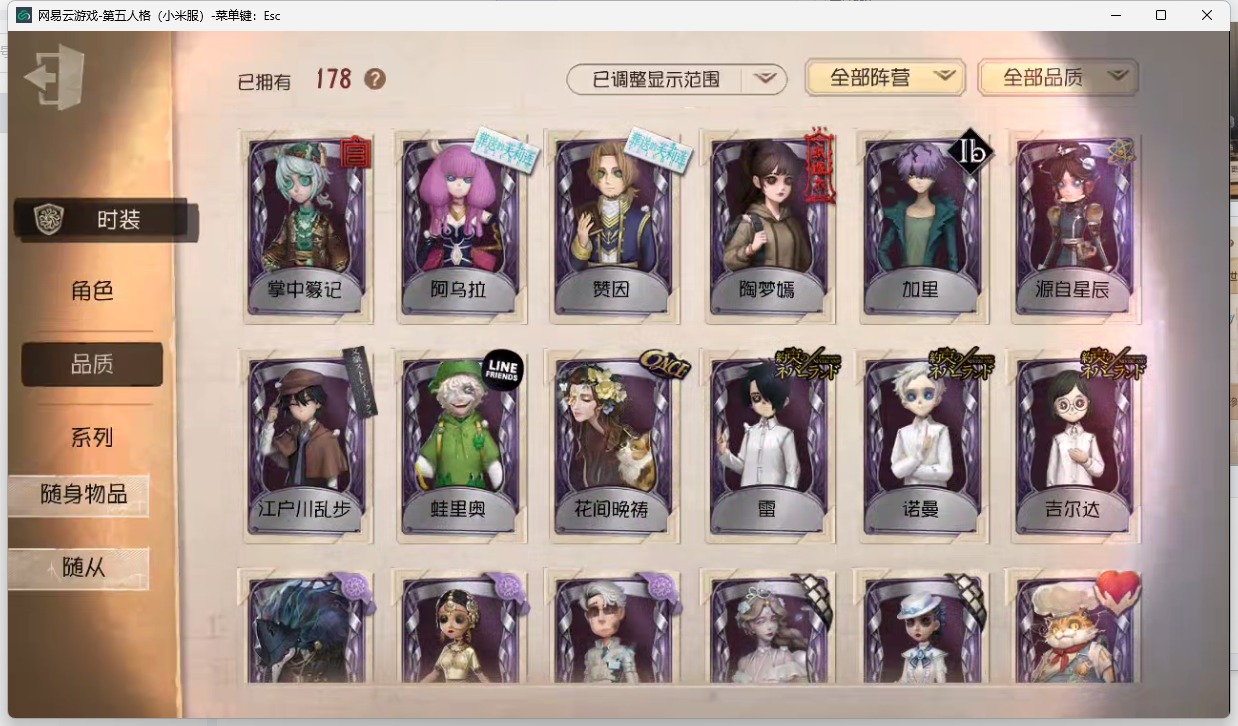 [15682454]小米-非账号转移 手机账号 178时装 6金皮 44紫皮 19随从 97随身物品 【时装】:“使徒”-花间晚祷园丁-源自星辰拉拉队员-bishop-f1渔女-百万人鱼佣兵-弹簧手佣兵-寄生佣兵-蒸汽少年火灾调查员-蛙里奥作曲家-澄明的理性调酒师-破碎的芙拉吉尔木偶师-行于界限间噩梦-溃夜猎者画家-掌中篆记26号守卫-秘密大厨昆虫学者-缚愿调香师-聂莫黎祭司-阿乌拉古董商-陶梦嫣幸运儿-“未知射线”x“骑士”-辛美尔宿伞之魂-桃面书生舞女-诡焰木偶师-斐乐蒙的圣坛26号守卫-西部大亨空军-琼楼遗恨昆虫学者-动植物学教授厂长-“阿拉丁”画家-江户川乱步“杰克”-白纹大触“杰克”-邪眼寄主红蝶-仙鹤冒险家-爱丽丝舞女-梵音之舞调酒师-海盐特调调香师-笼中之蝶医生-光天使医生-采药人园丁-真相小姐先知-历战猎人前锋-坂本龙司盲女-甜心蛋糕盲女-吉尔达“使徒”-校监夫人 【随身物品】:黯岩护符奇珍铃语(奇珍)“全熟”奇珍毁誉之印稀世星夜翱翔(奇珍)御狐神乐奇珍纸扎祠堂稀世枯萎的花冠奇珍勇者之剑(稀世)剧毒囊体奇珍玫瑰手杖蓝奇珍介壳虫奇珍科学的艺术奇珍黑胶碟奇珍梦魇结晶稀世白泽玉奇珍斗牛布奇珍火焰精灵奇珍蝶醉奇珍幽灵提灯奇珍鹰羽奇珍谢勒绿奇珍日与月奇珍凝露奇珍凝聚之水奇珍尼古拉斯的遗嘱奇珍束缚之心奇珍圣判奇珍