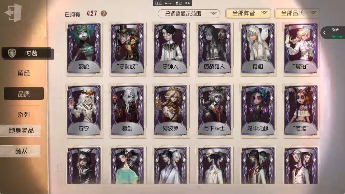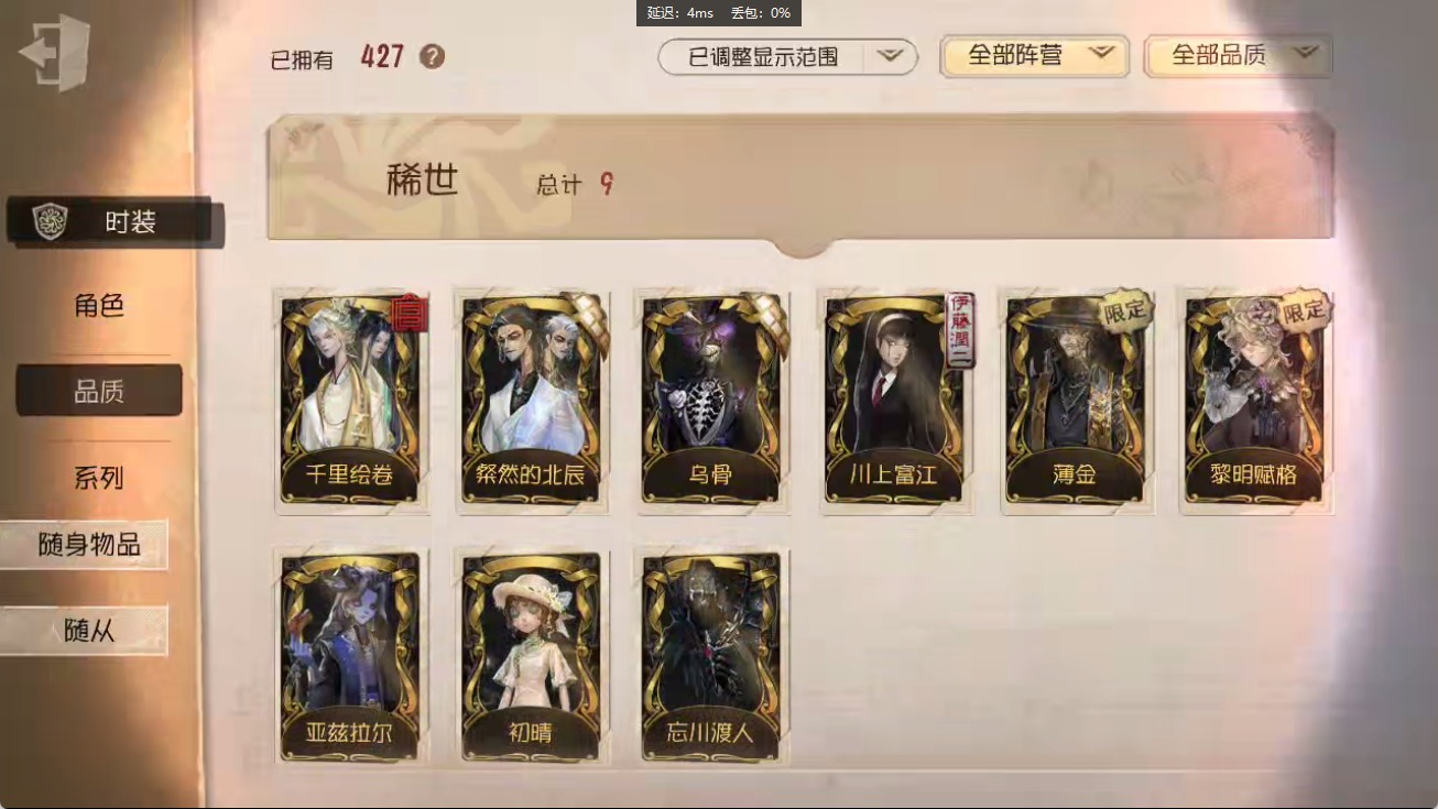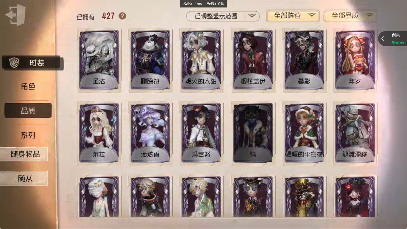 [15682490]真相小姐 小米-非账号转移 手机账号 427时装 9金皮 115紫皮 22随从 156随身物品 【时装】:园丁-源自星辰宿伞之魂-粲然的北辰拉拉队员-bishop-f1园丁初晴爱丽丝·德罗斯-未至之人幸运儿-星航之旅画家-温暖的平安夜爱丽丝·德罗斯-片刻闲暇小丑-捣蛋裘克渔女-迷迭香蜘蛛-时之猎手咒术师-缄默者野人-雪原猎人佣兵-b.duck潮咒术师-“向导”“囚徒”-天海兰太郎杂技演员-ace前锋-阿瓦尔的战车歌剧演员-拂晓女士作曲家-暮影26号守卫-秘密大厨宿伞之魂-千里绘卷古董商-陶梦嫣医生-银锑 隐士-薄金 囚徒-黎明赋格幸运儿-蛋小黄的好朋友时空之影-“有机磷”宿伞之魂-桃面书生摄影师-“琥珀”调酒师-逐浪的玫瑰“法罗女士”-芳泽霞蜘蛛-聚光灯下小说家-“伊始新篇”“杰克”-乌骨园丁-郁金香之梦破轮-沙滩漂移“记录员”-删除符前锋-水球救生哭泣小丑-熄灭的太阳26号守卫-西部大亨击球手-迫降专家空军-怀古机械师-re-swim祭司-神圣之辉祭司-“厄运”祭司-撒玛拉空军-“苏珊娜”鹿头-林间狩者鹿头-刻律涅之伤律师-兰斯洛特勘探员-雀舌勘探员-黑郁金香昆虫学者-动植物学教授哭泣小丑-烟花盖伊机械师-诡笑症大副-罗勒病患-玛吉努疯眼-“守财奴”画家-江户川乱步“杰克”-斯文加利“杰克”-忘川渡人黄衣之主-寄生之面冒险家-爱丽丝冒险家-考古教授舞女-高卷杏玩具商-浴石商人调香师-笼中之蝶调酒师-贝尔摩德医生-采药人园丁-兰闺惊梦园丁-罗刹绯春园丁-真相小姐园丁-noir先知-月相先知-历战猎人守墓人-奶酪盲女-不愿醒来的女孩盲女-海西遗风盲女-吉尔达梦之女巫-川上富江梦之女巫-羽蛇宿伞之魂-日月相随宿伞之魂-阴阳司公摄影师-亚兹拉尔摄影师-月下绅士摄影师-阿波罗摄影师-浮士德宿伞之魂-安魂曲入殓师-守钟人宿伞之魂-十字路口的美少年 【随身物品】:最后的故事稀世致命的邀请函稀世“全熟”奇珍入梦枕奇珍缚翼稀世拾贝奇珍喝彩奇珍山水泛舟稀世欢呼(奇珍)微型护卫奇珍幽灵娃娃奇珍机械之心奇珍剧毒囊体奇珍