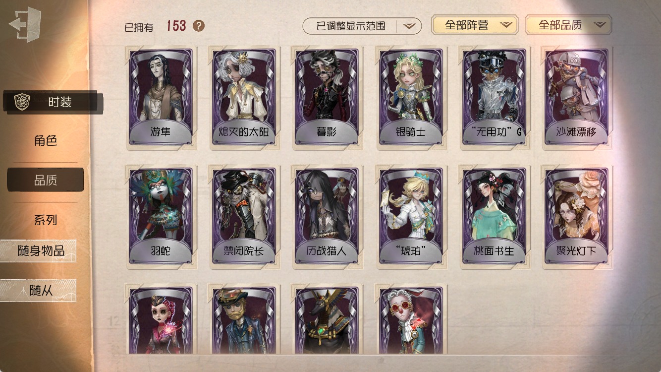 [15685033]苹果官服 手机账号 153时装 8金皮 40紫皮 7随从 66随身物品 【时装】:拉拉队员-bishop-f1雕刻家-克拉拉“使徒”-乌撒来客古董商-木兰守夜人隐形人爱哭鬼-摩诺隐士-游隼教授-紧急运输野人-零件拍档空军-梅爱丽骑士-艺术品商人小说家-福尔摩斯蜡像师-星相师作曲家-暮影26号守卫-秘密大厨木偶师-行于界限间昆虫学者-缚愿祭司-阿乌拉冒险家-赞因画家-掌中篆记幸运儿-蛋小黄的好朋友时空之影-“有机磷”宿伞之魂-桃面书生“心理学家”-银骑士摄影师-“琥珀”“法罗女士”-芳泽霞蜘蛛-聚光灯下蜡像师-收藏品破轮-沙滩漂移孽蜥-耶梦加得小说家-“伊始新篇”“小女孩”-异动指针医生-司药哭泣小丑-熄灭的太阳画家-多色印刷击球手-迫降专家疯眼-禁闭院长红夫人-夜潮舞女-高卷杏调酒师-海盐特调先知-独行者梦之女巫-羽蛇