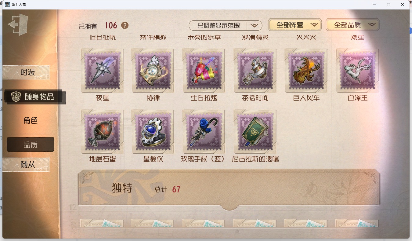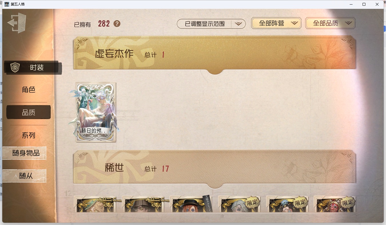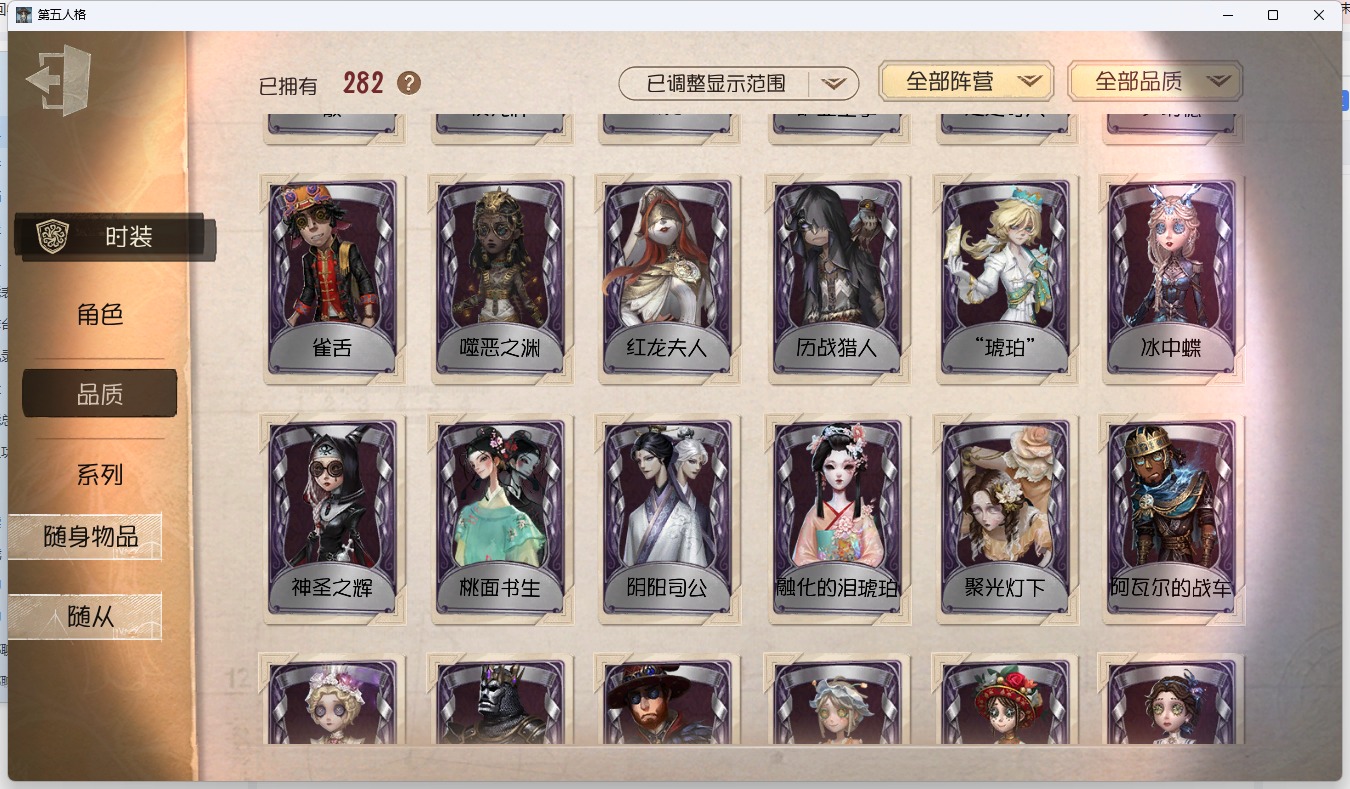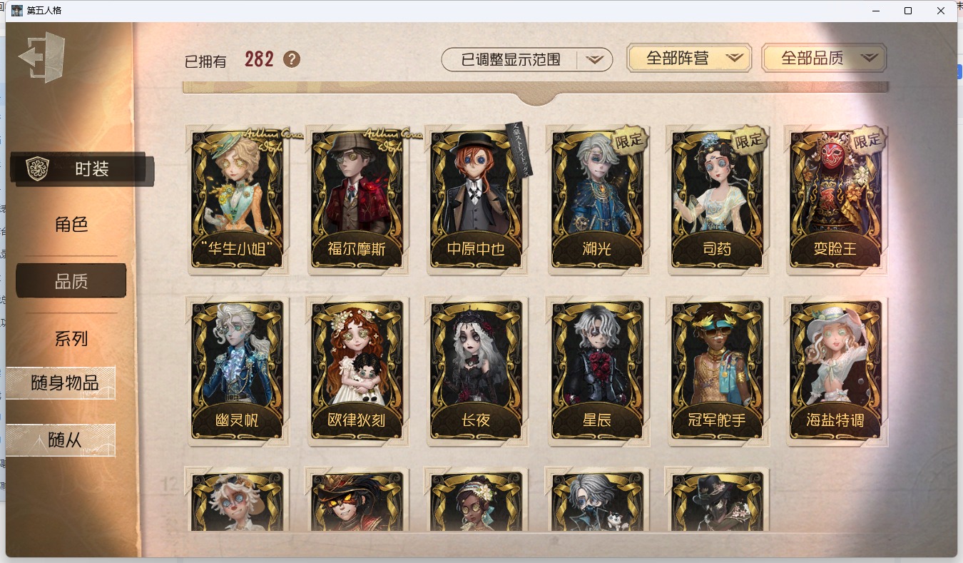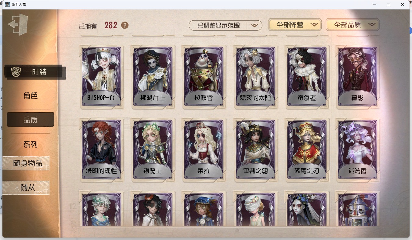 [15685039]安卓官服 手机账号 1虚妄杰作 282时装 17金皮 97紫皮 11随从 106随身物品 【时装】:园丁-源自星辰勘探员-盖提亚之遗拉拉队员-bishop-f1作曲家-幽灵帆心理学家-莱拉心理学家-长夜渔女-破魔之刃渔女-迷迭香“记录员”-执政官“囚徒”-天海兰太郎“小女孩”-欧律狄刻咒术师-椰香假日渔女-审判之翎拉拉队员-oph.lily记者-伊布空军-梅爱丽作曲家-澄明的理性大副-雷斯垂德探长小说家-福尔摩斯记者-华生小姐“囚徒”-oph.luca歌剧演员-拂晓女士病患-溯光律师-正义的砝码古董商-陶梦嫣杂技演员-李天辰作曲家-暮影入殓师-变彩心理学家-菲伦冒险家-赞因画家-掌中篆记佣兵-oph.naib“心理学家”-银骑士囚徒-rice调香师-buffy勘探员-盛夏飞盘飞行家-警戒哨台小说家-“伊始新篇”先知-昔日的预言者医生-司药拉拉队员-采集速巡击球手-冠军舵手哭泣小丑-熄灭的太阳古董商-oph.qi击球手-迫降专家空军-樋口一叶勘探员-中原中也哭泣小丑-蚕食者“杰克”-夜来香病患-星辰红夫人-女大公画家-江户川乱步小丑-变脸王调酒师-海盐特调“小女孩”-滚滚伙伴守墓人-异星开采前锋-冬