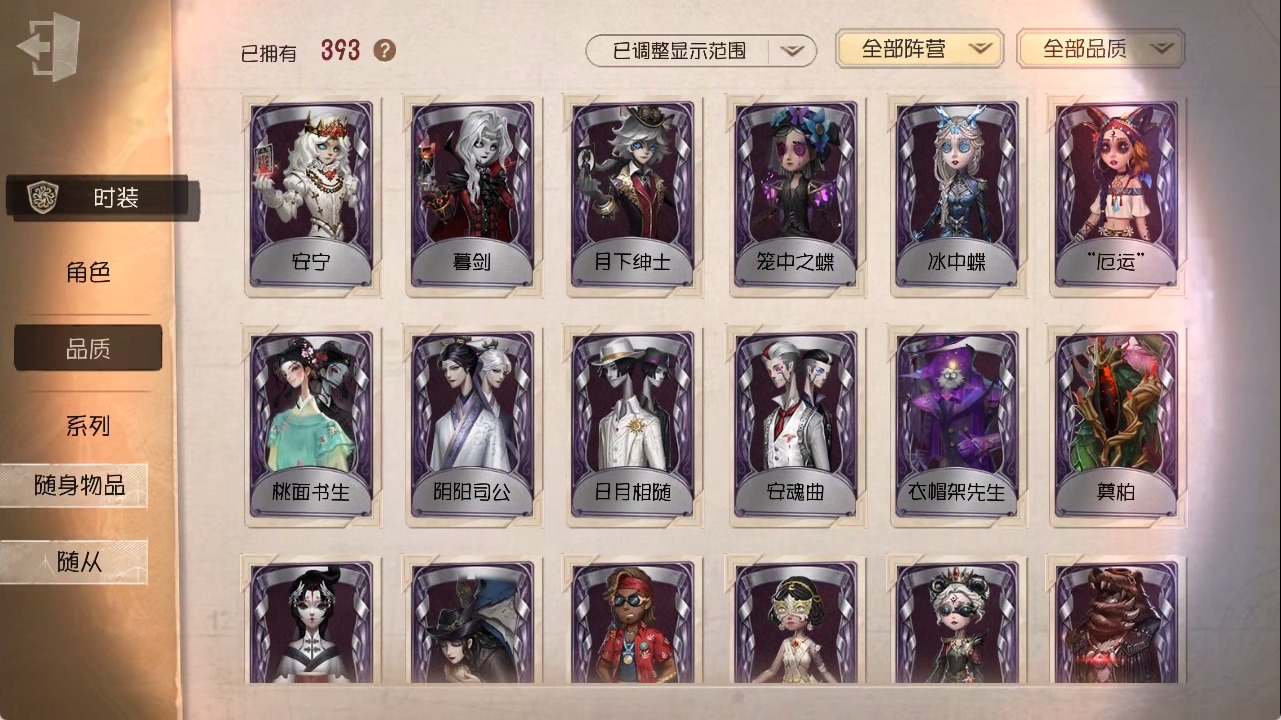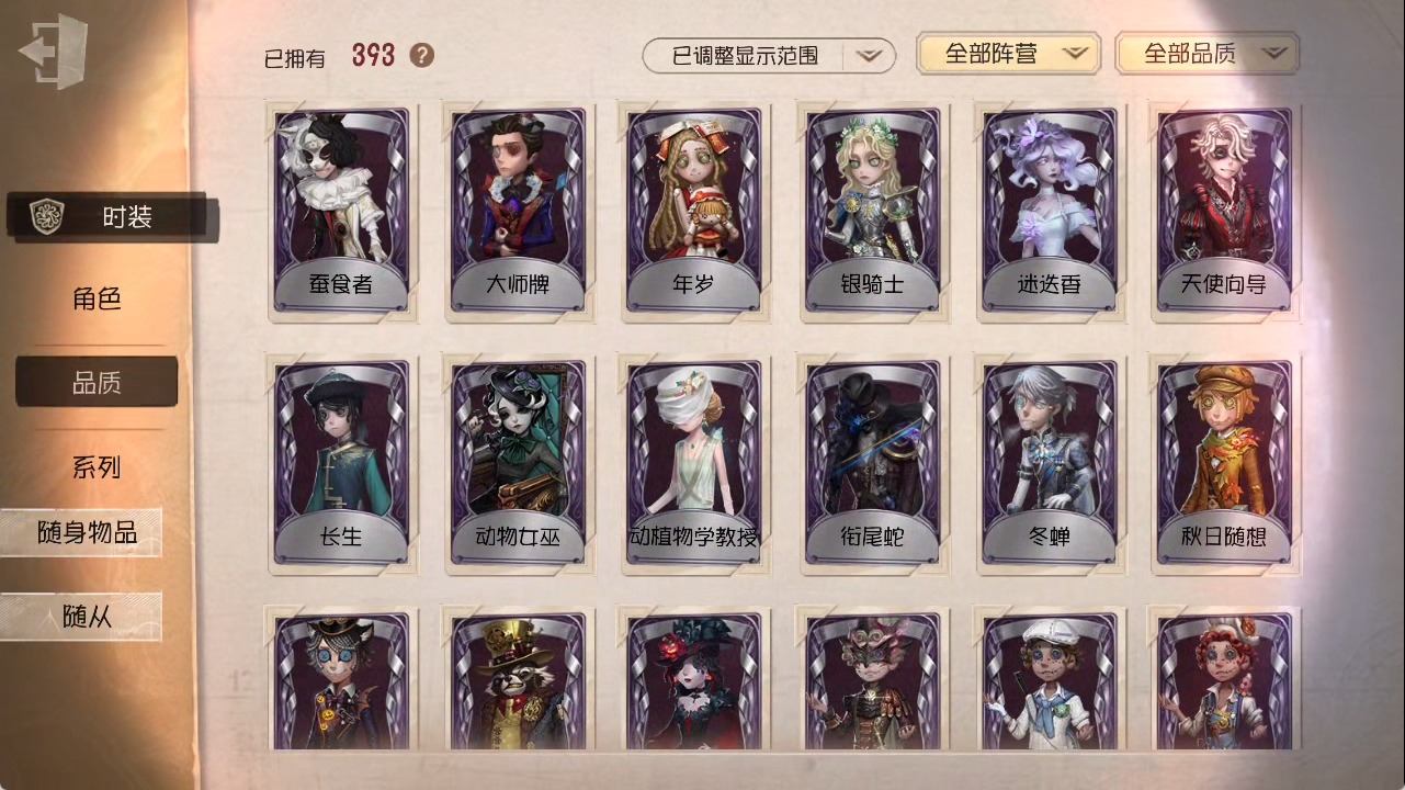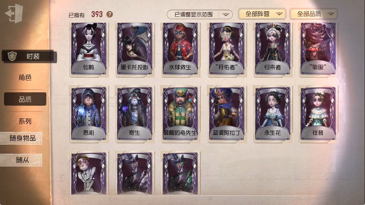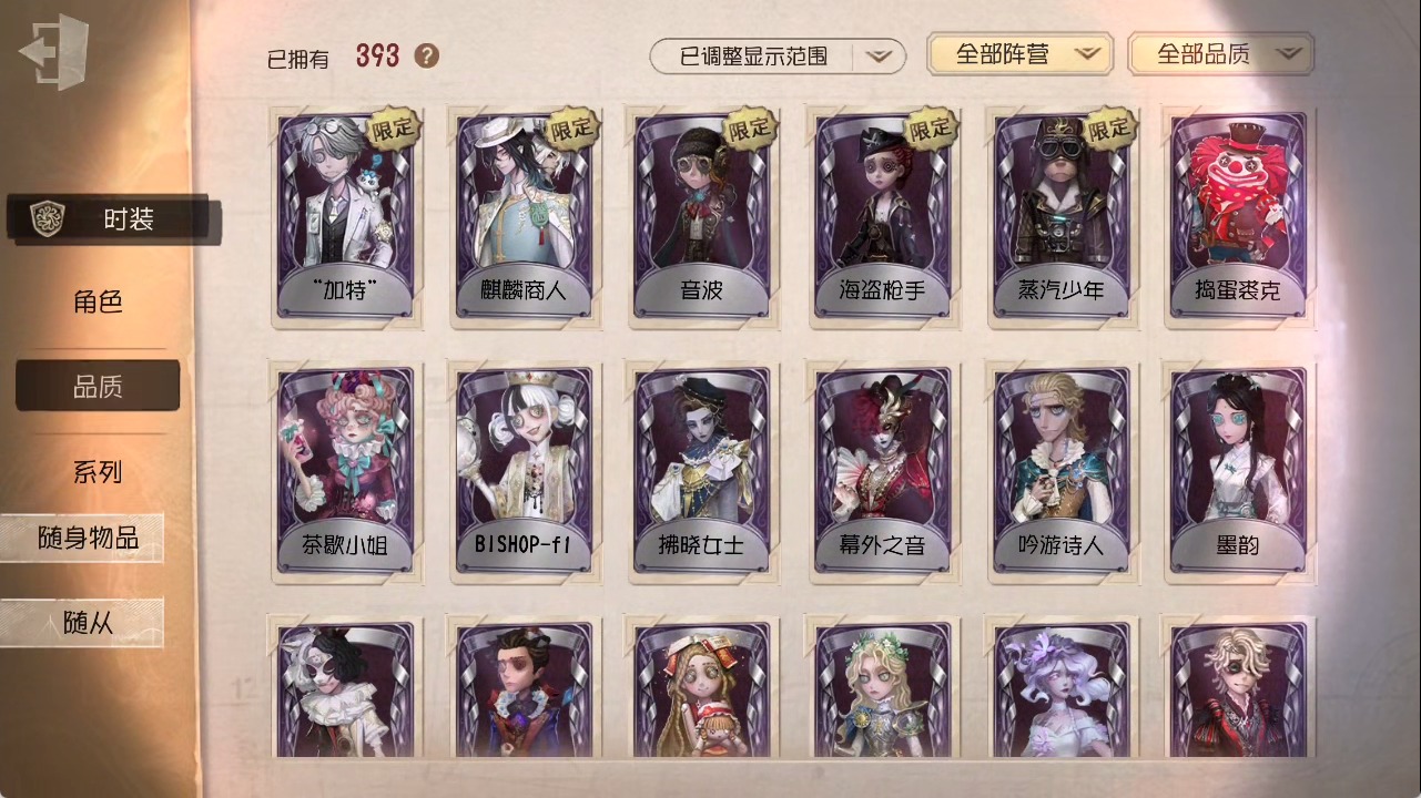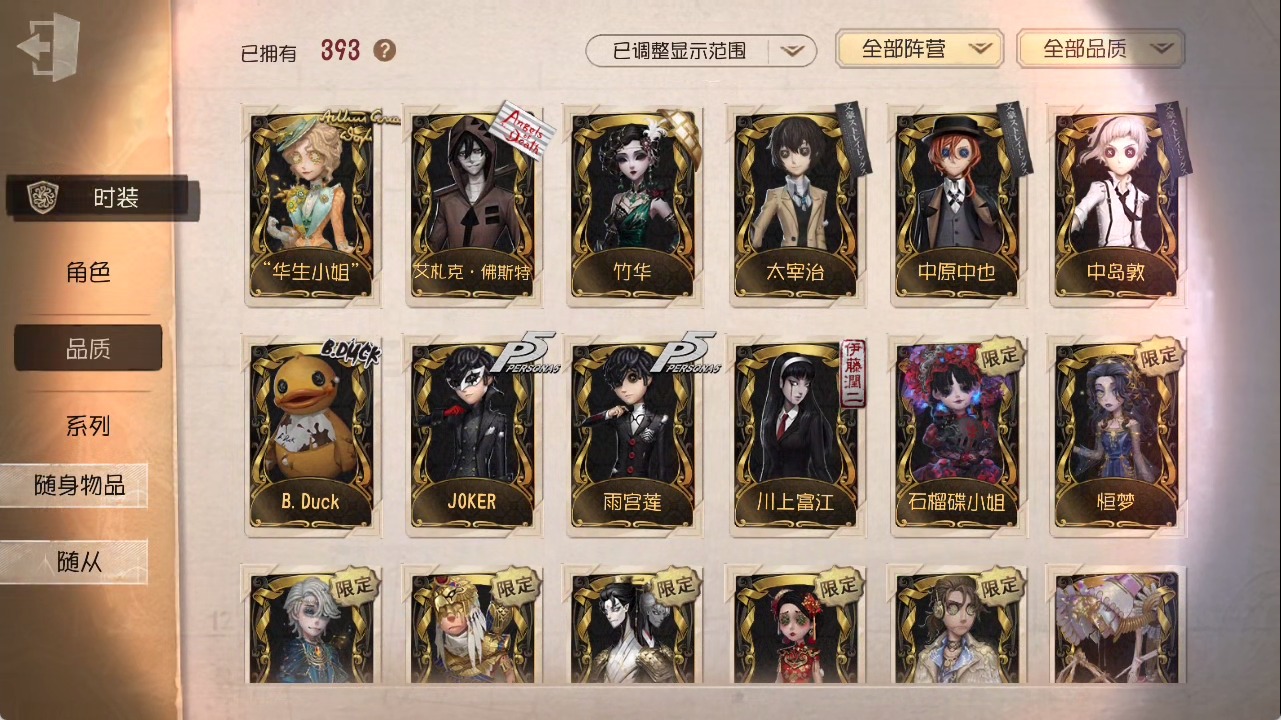 [15685052]安卓官服 手机账号 1虚妄杰作 393时装 27金皮 117紫皮 25随从 147随身物品 【时装】:勘探员-盖提亚之遗作曲家-幽灵帆玩具商-入间美兔心理学家-长夜幸运儿-星航之旅咒术师-灰烬狂想佣兵-珍奇柜爱哭鬼-摩诺机械师-九月渔女-chef k“小女孩”-小六律师-亚伯拉罕·葛雷佣兵-柴郡猫佣兵-b.duck潮佣兵-中岛敦“杰克”-艾札克·佛斯特“囚徒”-天海兰太郎“小女孩”-欧律狄刻爱哭鬼-爱德华·梅森守墓人-半精灵骑士红夫人-应许之日杂技演员-雨宫莲杂技演员-joker佣兵-火炮手牛仔-船影杂货商-自由之爱小女孩-石榴蝶小姐“杰克”-加里记者-伊布骑士-艺术品商人记者-华生小姐“囚徒”-oph.luca骑士-ment k“心理学家”-恒梦病患-溯光古董商-陶梦嫣入殓师-变彩幸运儿-蛋小黄的好朋友佣兵-oph.naib囚徒-rice飞行家-警戒哨台小说家-“伊始新篇”先知-昔日的预言者“小女孩”-异动指针拉拉队员-采集速巡空军-寒香舞勘探员-中原中也“杰克”-夜来香26号守卫-b.duck画家-江户川乱步调香师-lady k先知-不屈的信仰梦之女巫-川上富江摄影师-宿醉“囚徒”-灵犀妙探“囚徒”-太宰治入殓师-“盲区”宿伞之魂-东风遥