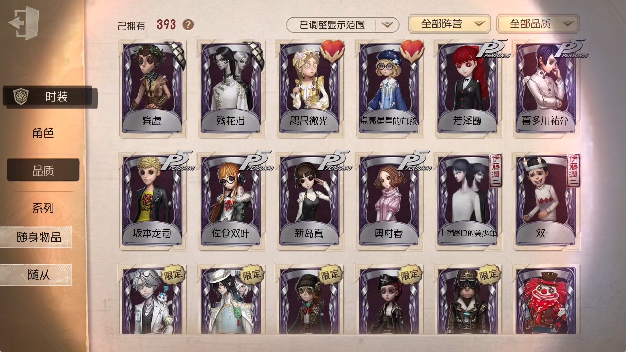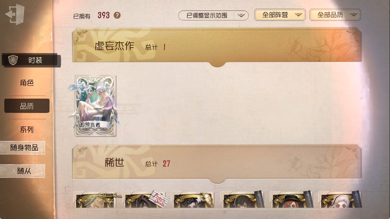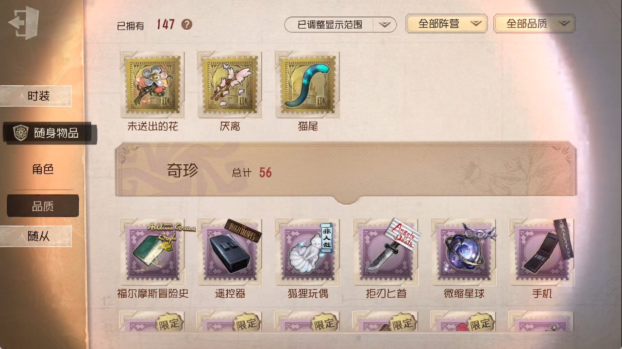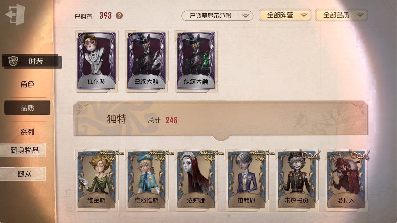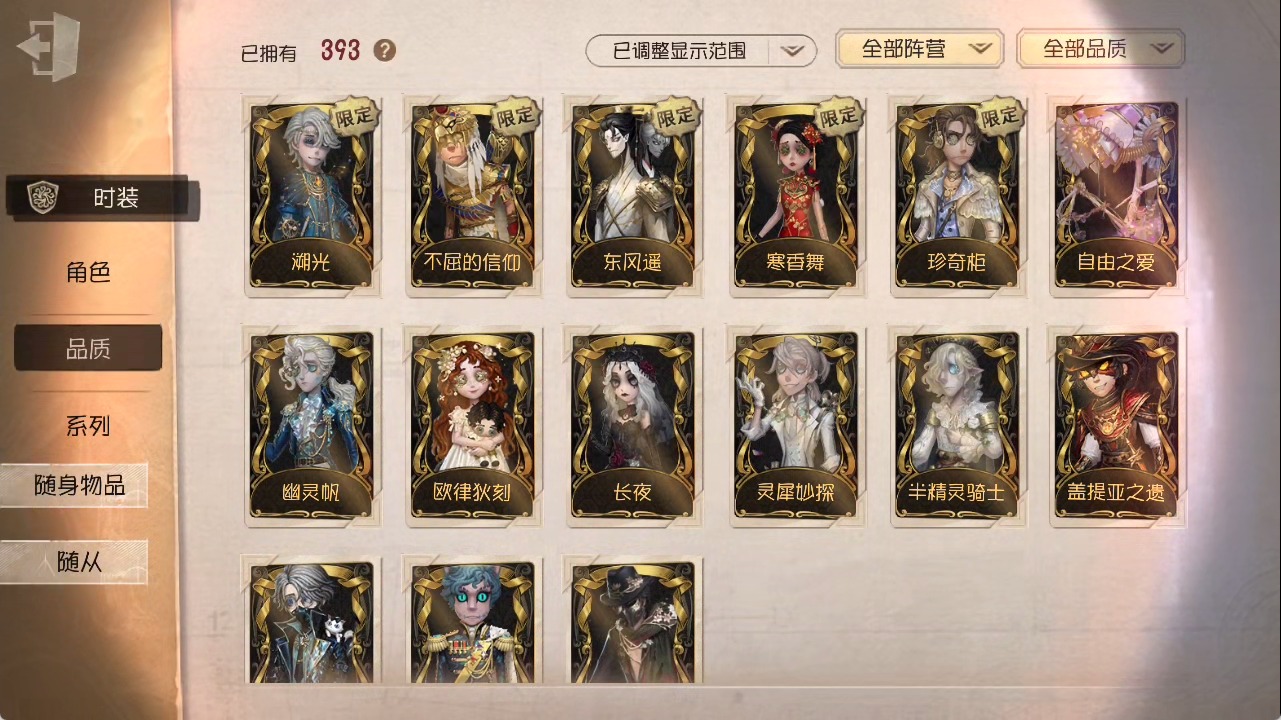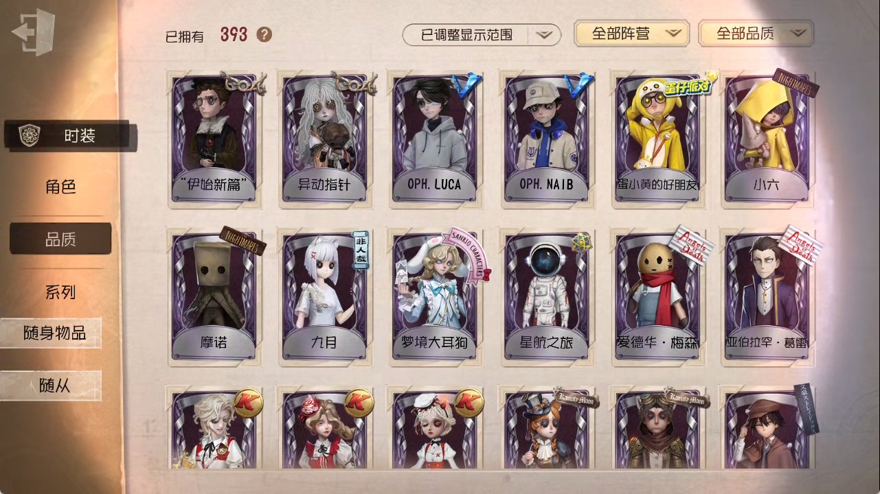 [15685052]安卓官服 手机账号 1虚妄杰作 393时装 27金皮 117紫皮 25随从 147随身物品 【时装】:勘探员-盖提亚之遗作曲家-幽灵帆玩具商-入间美兔心理学家-长夜幸运儿-星航之旅咒术师-灰烬狂想佣兵-珍奇柜爱哭鬼-摩诺机械师-九月渔女-chef k“小女孩”-小六律师-亚伯拉罕·葛雷佣兵-柴郡猫佣兵-b.duck潮佣兵-中岛敦“杰克”-艾札克·佛斯特“囚徒”-天海兰太郎“小女孩”-欧律狄刻爱哭鬼-爱德华·梅森守墓人-半精灵骑士红夫人-应许之日杂技演员-雨宫莲杂技演员-joker佣兵-火炮手牛仔-船影杂货商-自由之爱小女孩-石榴蝶小姐“杰克”-加里记者-伊布骑士-艺术品商人记者-华生小姐“囚徒”-oph.luca骑士-ment k“心理学家”-恒梦病患-溯光古董商-陶梦嫣入殓师-变彩幸运儿-蛋小黄的好朋友佣兵-oph.naib囚徒-rice飞行家-警戒哨台小说家-“伊始新篇”先知-昔日的预言者“小女孩”-异动指针拉拉队员-采集速巡空军-寒香舞勘探员-中原中也“杰克”-夜来香26号守卫-b.duck画家-江户川乱步调香师-lady k先知-不屈的信仰梦之女巫-川上富江摄影师-宿醉“囚徒”-灵犀妙探“囚徒”-太宰治入殓师-“盲区”宿伞之魂-东风遥