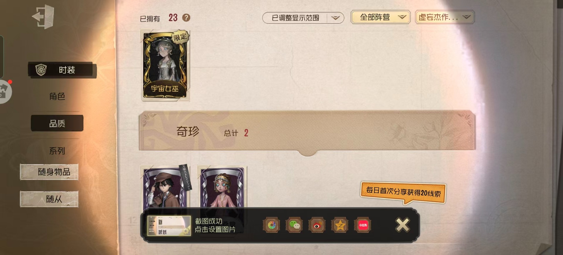 [16386024]华为 手机账号 23时装 1金皮 2紫皮 1随从 7随身物品 【时装】画家-黄金比例园丁-宇宙女巫