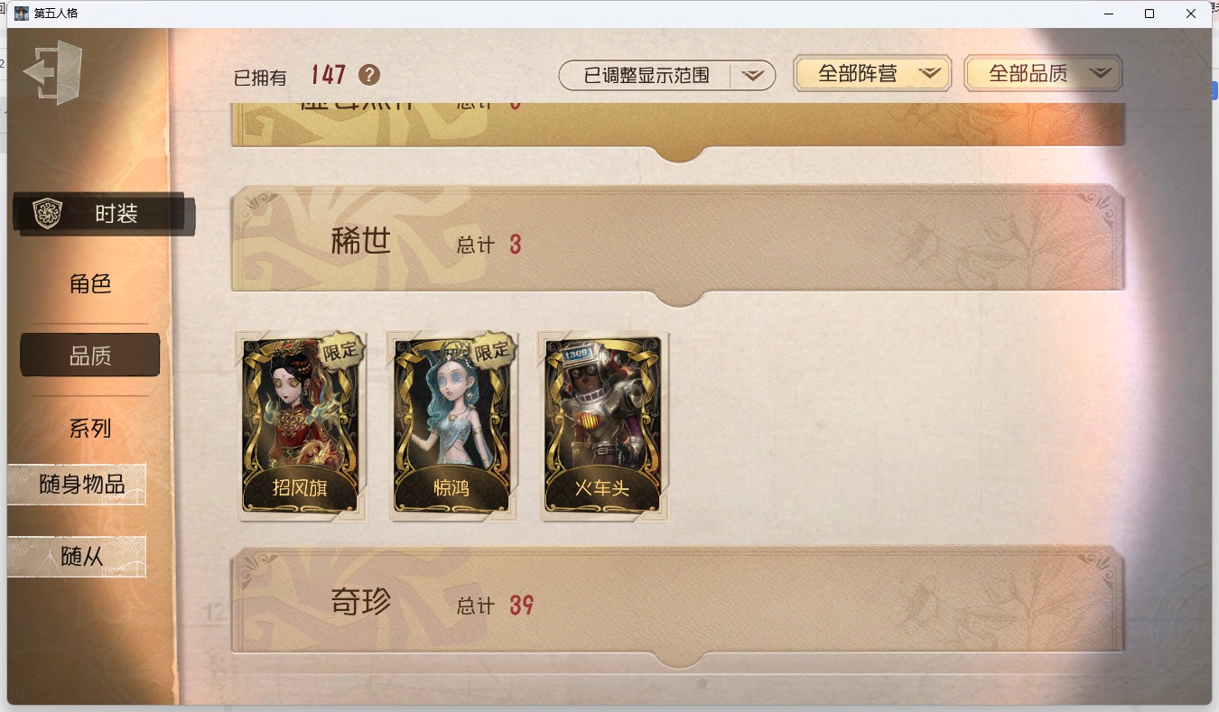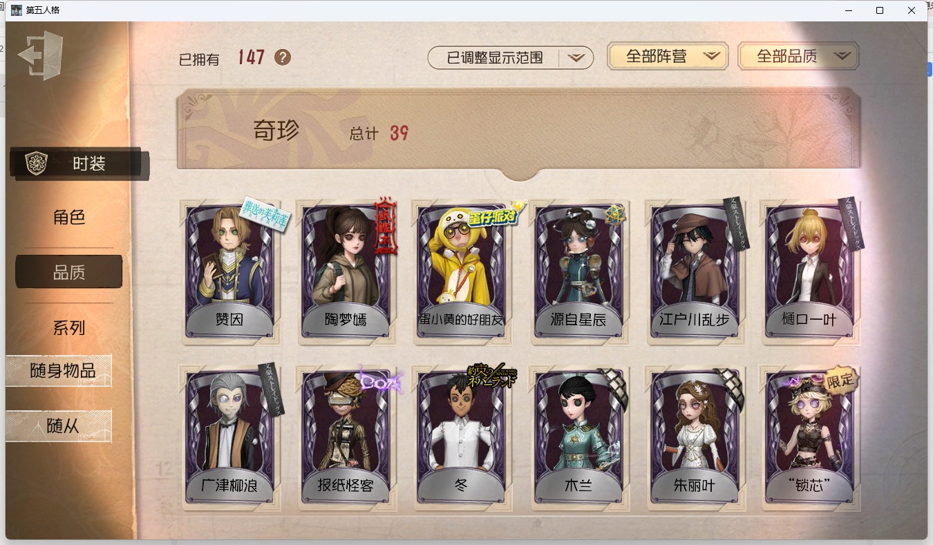 [16386922]安卓官服 手机账号 147时装 4金皮 39紫皮 5随从 68随身物品 【时装】园丁-源自星辰爱丽丝·德罗斯-片刻闲暇古董商-招风旗邮差-报纸怪客“心理学家”-朱丽叶蜘蛛-窥伺之心邮差-琴键古董商-黑鸦冒险家-赞因前锋-水球救生幸运儿-蛋小黄的好朋友哭泣小丑-熄灭的太阳机械师-“锁芯”空军-怀古祭司-惊鸿祭司-“朝圣者”魔术师-广津柳浪昆虫学者-动植物学教授画家-长生画家-江户川乱步“杰克”-白纹大触佣兵-弹簧手医生-采药人前锋-慵懒的兔先生前锋-火车头孽蜥-骨笛守墓人-列车长入殓师-守钟人 【随身物品】茅龙书(稀世)海之低语(奇珍)回旋镖奇珍作响的铃铛奇珍充气海豚奇珍毁誉之印稀世凝固的声音奇珍拾贝奇珍扑克牌奇珍玫瑰手杖蓝奇珍猎人的箭囊稀世白泽玉奇珍火焰精灵奇珍梦魇结晶稀世“星辰”稀世尼古拉斯的遗嘱奇珍逆转之战稀世生日拉炮奇珍