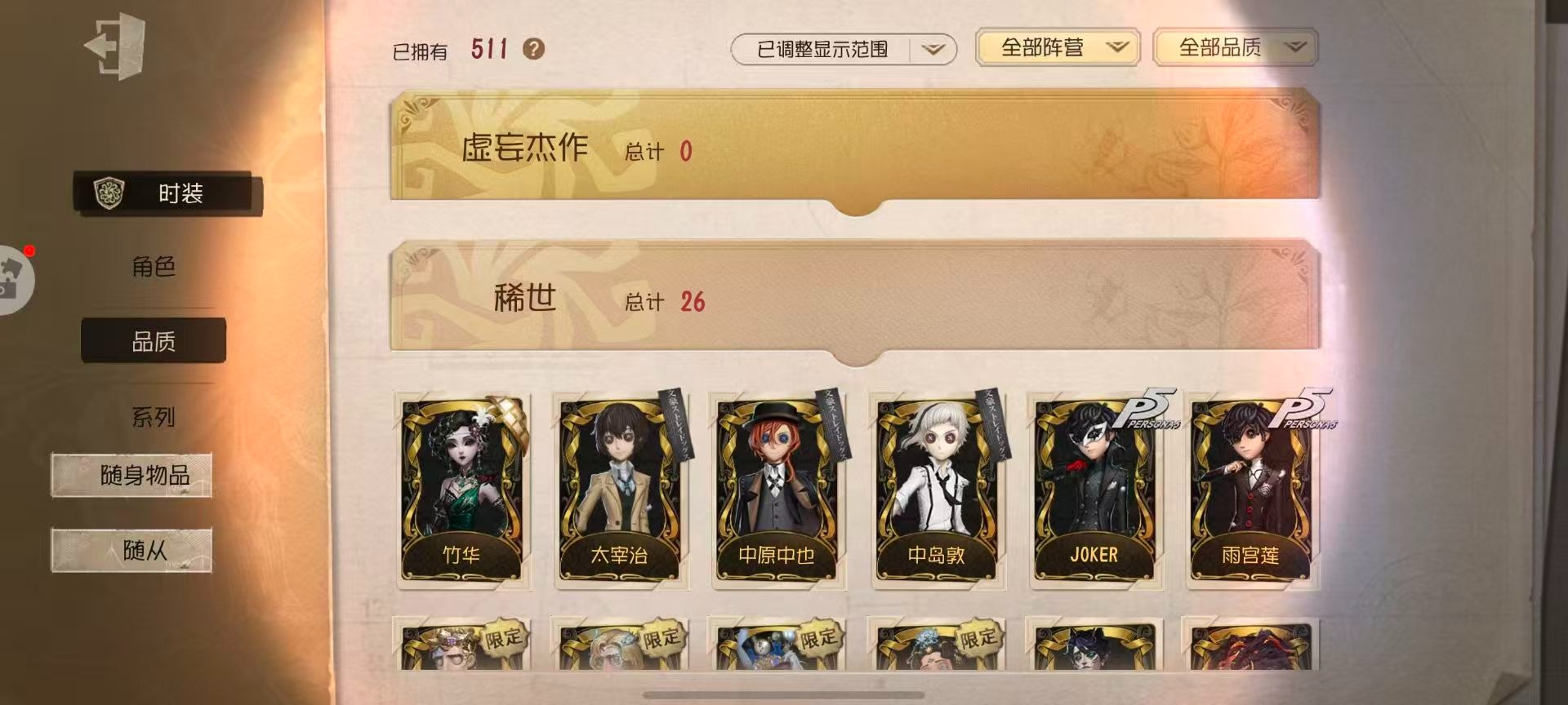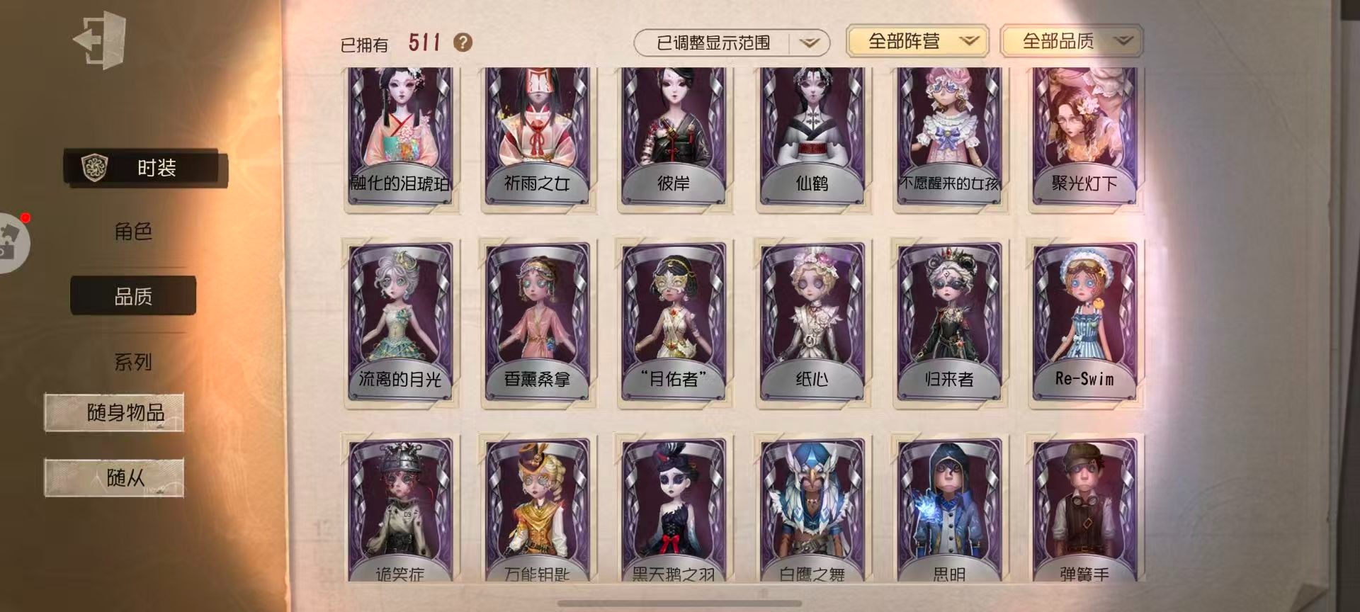 [16386927]华为 手机账号 511时装 27金皮 139紫皮 24随从 152随身物品 【时装】26号守卫-三月兔园丁初晴爱丽丝·德罗斯-片刻闲暇调酒师-夜光杯隐士-首席顾问使徒-多加雷萨佣兵-布朗熊蜘蛛-花祭杂技演员-雨宫莲杂技演员-joker杂技演员-可可豆佣兵-中岛敦野人-雪原猎人勘探员-双面盗贼“小女孩”-欧律狄刻入殓师-变彩红蝶-融化的泪琥珀“法罗女士”-芳泽霞舞女-流离的月光勘探员-盛夏飞盘幸运儿-蛋小黄的好朋友邮差-潘塔龙医生-司药雕刻家-善忘的海马体作曲家-澄明的理性画家-多色印刷教授-温泉煮酒空军-尼德霍格机械师-re-swim机械师-不会枯萎的花机械师-归来者祭司-“朝圣者”机械师-佐仓双叶鹿头-林间狩者鹿头-蒸汽朋克勘探员-罗纳德勘探员-黑郁金香勘探员-中原中也冒险家-宝藏猎人雕刻家-“玛利亚”“噩梦”-“渊”病患-星辰“杰克”-绿纹大触红夫人-宝钻女爵“杰克”-“好孩子"红蝶-竹华红蝶-白无垢红蝶-彼岸冒险家-小人国舞女-“月佑者”玩具商-浴石商人玩具商-线控信号舞女-恶之花小丑-树形背景板医生-痊愈园丁-兰闺惊梦园丁-怪鸟园丁-等风来佣兵-柴郡猫医生-雨中曲小提琴家-衔尾蛇医生-采药人“小女孩”-桃乐丝小说家-空医生-往昔破轮-球球前锋-坂本龙司前锋-霓虹先锋盲女-不愿醒来的女孩梦之女巫-红龙夫人牛仔-教鞭“囚徒”-灵犀妙探“使徒”-翡翠女王“使徒”-校监夫人“使徒”-荒野女巫摄影师-月下绅士“囚徒”-太宰治入殓师-菲尼克斯 【随身物品】荣光的残像(稀世)灯龙影(稀世)调制架(稀世)遗忘之花(稀世)发条蝴蝶(稀世)太宰的爱书(稀世)最后的故事稀世至识之眼稀世充气海豚奇珍沙漠精灵(奇珍)记忆囚笼奇珍纠缠(奇珍)心海之梦奇珍微型护卫奇珍禁忌之匙奇珍机械之心奇珍虎尾稀世黄玫瑰之骸稀世玫瑰手杖蓝奇珍巨人风车奇珍茶话时间奇珍沉沦的面具奇珍白泽玉奇珍断剑奇珍幽灵娃娃奇珍未送出的花稀世幽灵提灯奇珍厌离稀世星云瓶稀世葡萄酒稀世逆转之战稀世涅槃稀世水晶