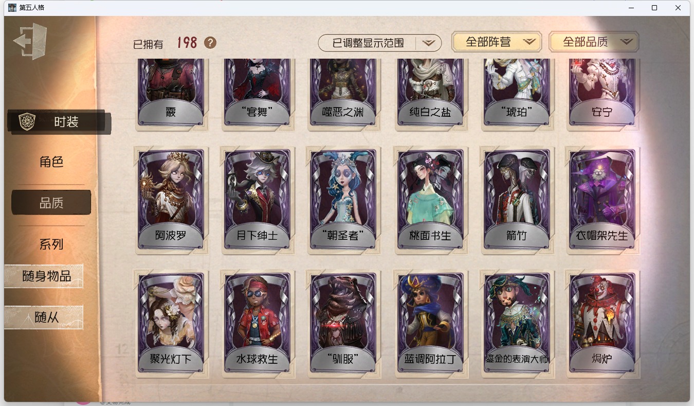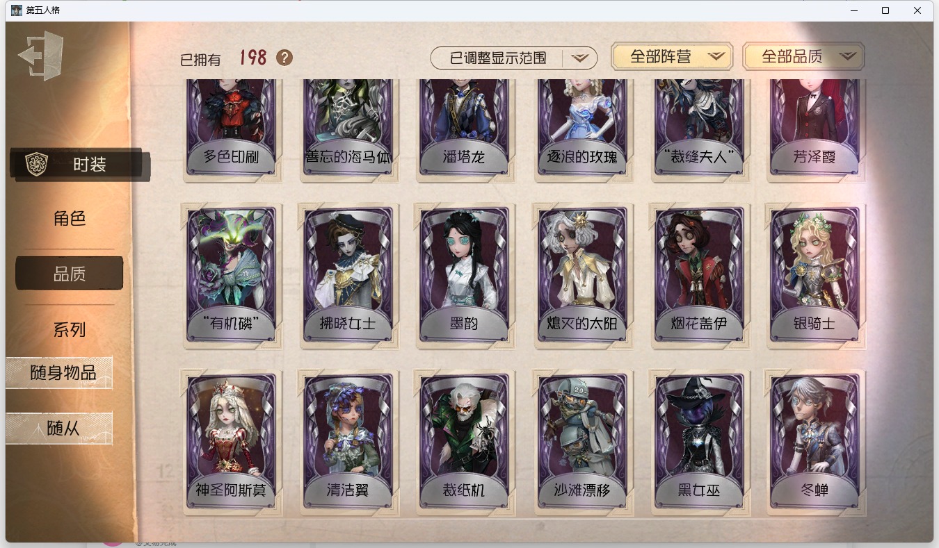 [16386960]安卓官服 手机账号 198时装 8金皮 48紫皮 10随从 67随身物品 【时装】园丁-源自星辰爱丽丝·德罗斯-片刻闲暇心理学家-神圣阿斯莫“慈善家”-鎏金的表演大师古董商-陶梦嫣冒险家-赞因歌剧演员-拂晓女士病患-溯光咒术师-噬恶之渊黄衣之主-衣帽架先生梦之女巫-裁缝夫人蜡像师-收藏品昆虫学者-“鬼烛”蜘蛛-聚光灯下破轮-沙滩漂移前锋-水球救生“心理学家”-银骑士宿伞之魂-桃面书生幸运儿-蛋小黄的好朋友古董商-墨韵邮差-潘塔龙哭泣小丑-熄灭的太阳大副-雷斯垂德探长小说家-福尔摩斯弓箭手-不合时宜的危鲁弗“杰克”-乌骨“小女孩”-异动指针画家-多色印刷“博士”-“裁纸机”拉拉队员-采集速巡小说家-“伊始新篇”魔术师-蓝调阿拉丁昆虫学者-黑女巫哭泣小丑-烟花盖伊调酒师-海盐特调“囚徒”-灵犀妙探 【随身物品】调制架(稀世)致命的邀请函稀世醒梦铃奇珍时序奇珍“全熟”奇珍爆燃奇珍喝彩奇珍拾贝奇珍枯萎的花冠奇珍绝境航船(稀世)摇头鬼(奇珍)玫瑰手杖蓝奇珍白泽玉奇珍梦魇结晶稀世书中蝶稀世