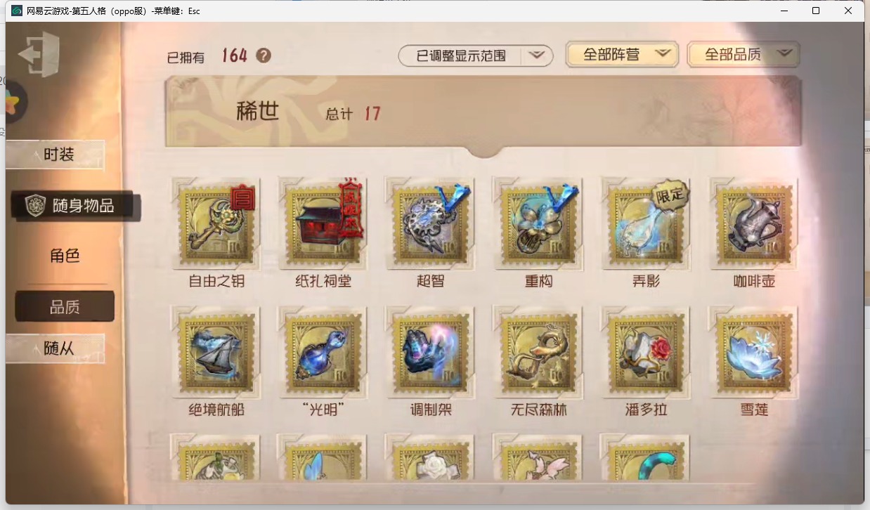[16418860]oppo-非账号转移 手机账号 395时装 13金皮 101紫皮 18随从 164随身物品 【时装】:园丁-源自星辰守夜人-knight-c3拉拉队员-bishop-f1勘探员-盖提亚之遗空军-天河时空之影-墨菲斯的门廊心理学家-长夜盲女-点亮星星的女孩歌剧演员-幕外之音律师-亚伯拉罕·葛雷舞女-西尔菲德渔女-chef k蜘蛛-光织守护佣兵-弹簧手“记录员”-执政官病患-天使向导雕刻家-白兔术士前锋-阿瓦尔的战车骑士-艺术品商人小说家-肖驰舞女-钟阁杼思喧嚣-隐于夜色中画家-掌中篆记26号守卫-秘密大厨记者-恐惧的旧影昆虫学者-缚愿调香师-聂莫黎幸运儿-“未知射线”x心理学家-菲伦冒险家-赞因囚徒-黎明赋格blk.tracy音核裂响“法罗女士”-向深处求告小提琴家-人造天堂园丁-等风来幸运儿-蛋小黄的好朋友“法罗女士”-芳泽霞蜘蛛-聚光灯下舞女-流离的月光击球手-冠军舵手古董商-oph.qi空军-新岛真机械师-re-swim鹿头-刻律涅之伤魔术师-光学镜面机械师-诡笑症厂长-“阿拉丁”厂长-“驯服”病患-玛吉努画家-逃亡者“杰克”-白纹大触“杰克”-斯文加利红蝶-罗生门舞女-panther舞女-恶之花舞女-“月佑者”舞女-莎乐美舞女-驯兽师调香师-笼中之蝶调香师-致命温柔调香师-今夜不再调香师-lady k调香师-红菱艳园丁-罗刹绯春先知-观测者冒险家-发明家前锋-坂本龙司盲女-不愿醒来的女孩盲女-甜心蛋糕梦之女巫-川上富江宿伞之魂-十字路口的美少年 【随身物品】:黯岩护符奇珍“光明”(稀世)调制架(稀世)火火火(奇珍)海岸花环(奇珍)晴天娃娃(奇珍)“全熟”奇珍凝固的声音奇珍深海祝祷奇珍星夜翱翔(奇珍)咖啡壶稀世纸扎祠堂稀世枯萎的花冠奇珍扑克牌奇珍自由之钥稀世月光沙漏奇珍超智稀世重构(稀世)绝境航船(稀世)剪骨钳奇珍加拉尔奇珍黄玫瑰之骸稀世玫瑰手杖蓝奇珍猫尾稀世巨人风车奇珍斗牛布奇珍班苏里笛奇珍冰晶奇珍电阻表奇珍地层石蛋奇珍毒蛇手杖奇珍蝶醉奇珍玫瑰之下稀世