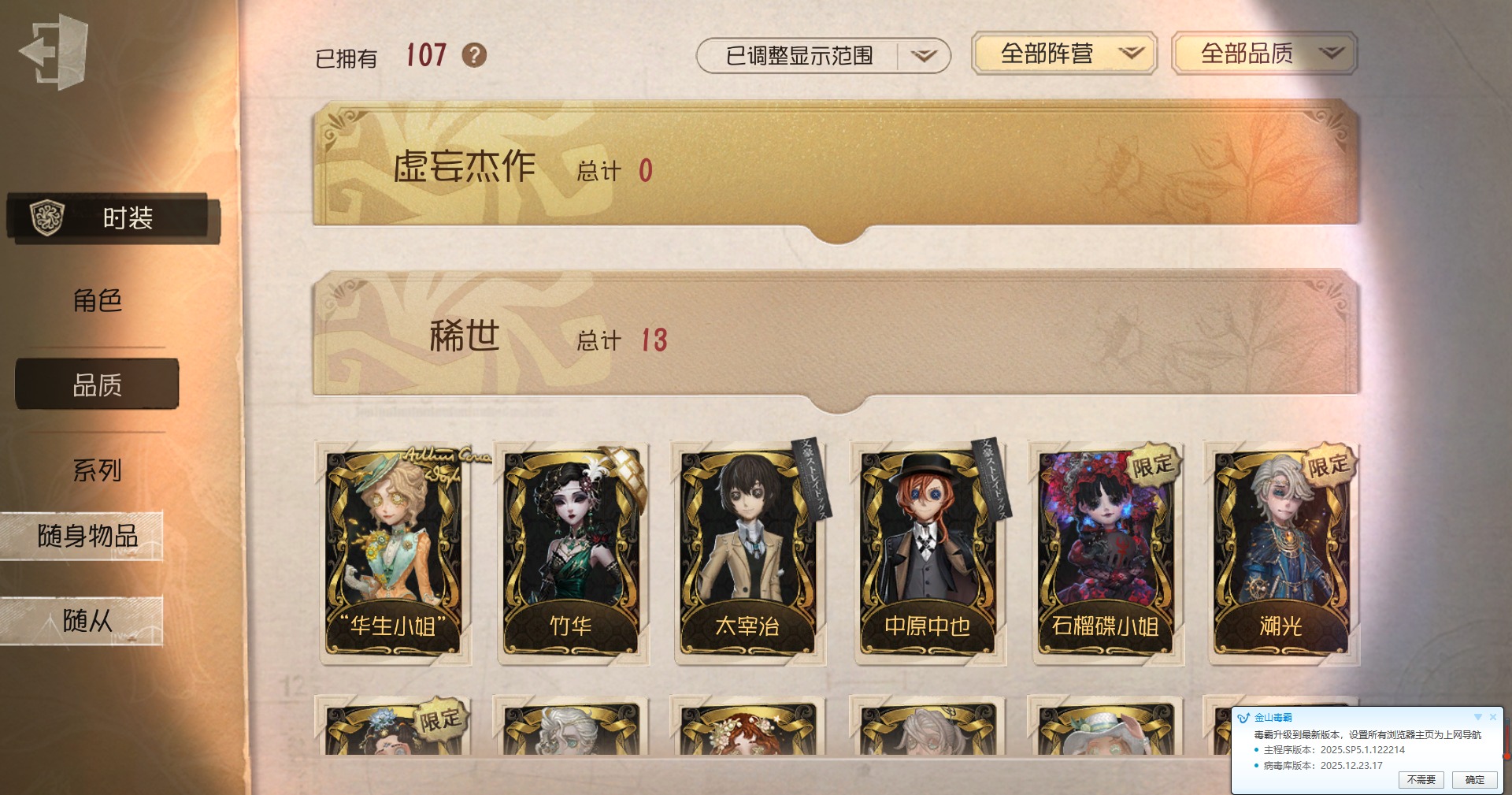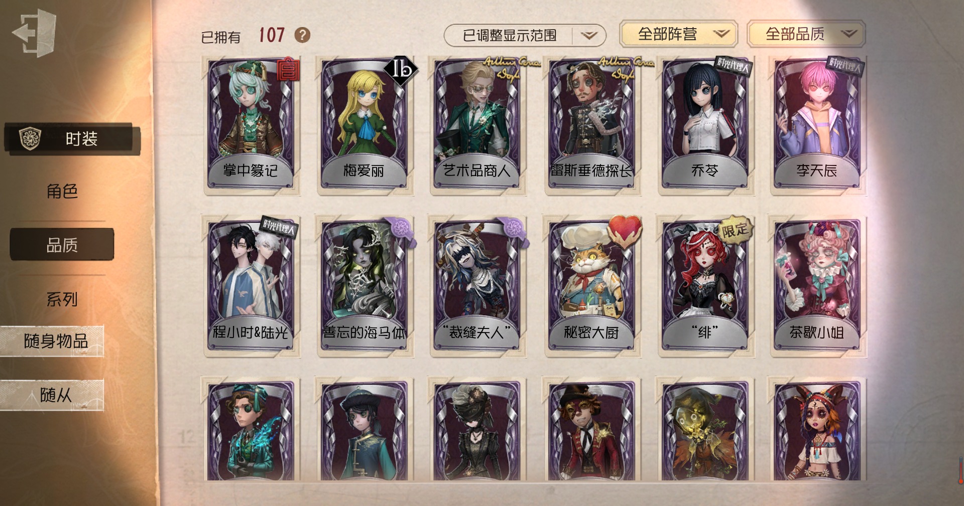 [16418886]安卓官服 邮箱账号 107时装 13金皮 22紫皮 3随从 37随身物品 【时装】:作曲家-幽灵帆“小女孩”-欧律狄刻气象学家-茶歇小姐黄衣之主-衣帽架先生梦之女巫-裁缝夫人小女孩-石榴蝶小姐“慈善家”-鎏金的表演大师空军-梅爱丽大副-雷斯垂德探长雕刻家-善忘的海马体骑士-艺术品商人记者-华生小姐爱哭鬼-善恶的本性病患-溯光杂技演员-李天辰26号守卫-秘密大厨小说家-无归的昨日画家-掌中篆记古董商-乔苓勘探员-盛夏飞盘医生-司药祭司-“厄运”勘探员-罗纳德勘探员-中原中也昆虫学者-曼陀罗红夫人-贝拉夫人红蝶-竹华调酒师-海盐特调宿伞之魂-程小时陆光“囚徒”-灵犀妙探“囚徒”-太宰治 【随身物品】:沙滩镜(奇珍)太宰的爱书(稀世)枯萎的花冠奇珍记忆囚笼奇珍酩酊奇珍欢呼(奇珍)糖果鬼(奇珍)福尔摩斯冒险史奇珍折柳稀世玫瑰手杖蓝奇珍白泽玉奇珍完美人偶稀世协律奇珍葡萄酒稀世
