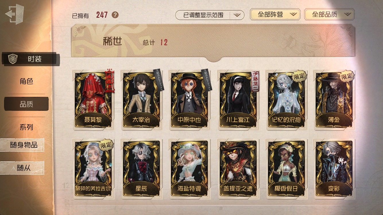 [16451962]安卓官服 手机账号 247时装 12金皮 82紫皮 17随从 89随身物品 【时装】勘探员-盖提亚之遗入殓师-“加特”渔女-百万人鱼宿伞之魂-麒麟商人医生-永生花爱哭鬼-摩诺幸运儿-星航之旅杂技演员-ace渔女-迷迭香杂技演员-气胎古董商-黑鸦红夫人-应许之日玩具商-入间美兔心理学家-神圣阿斯莫咒术师-椰香假日“囚徒”-天海兰太郎医生-银锑 红蝶-融化的泪琥珀“慈善家”-鎏金的表演大师调酒师-破碎的芙拉吉尔调香师-聂莫黎幸运儿-“未知射线”x机械师-莎莉入殓师-变彩隐士-薄金 冒险家-赞因火灾调查员-蛙里奥咒术师-噬恶之渊记者-伊布拉拉队员-oph.lily梦之女巫-裁缝夫人先知-blk.eli“女王蜂”-记忆的沉疴“法罗女士”-向深处求告画家-掌中篆记“法罗女士”-芳泽霞佣兵-弦音畸变玩具商-咫尺微光“囚徒”-oph.luca古董商-oph.qi调酒师-校对人病患-罗密欧机械师-“锁芯”小说家-“伊始新篇”勘探员-中原中也昆虫学者-黑女巫哭泣小丑-烟花盖伊病患-星辰画家-江户川乱步舞女-恶之花小丑-焗炉调酒师-黑玫瑰调酒师-海盐特调园丁-罗刹绯春园丁-艾玛“小女孩”-滚滚伙伴调香师-笼中之蝶梦之女巫-川上富江摄影师-en ligne“囚徒”-冬蝉“囚徒”-太宰治入殓师-守钟人 【随身物品】沙滩镜(奇珍)调制架(稀世)铁轨信号灯(奇珍)海之低语(奇珍)“非易碎品”(稀世)太宰的爱书(稀世)致命的邀请函稀世玉麒麟稀世强化手臂(奇珍)缚翼稀世纸扎祠堂稀世扑克牌奇珍咖啡壶稀世先知-共感"稀世结冰的齿轮(奇珍)黄玫瑰之骸稀世玫瑰手杖蓝奇珍白泽玉奇珍笔尖柔情奇珍萤之羽稀世厌离稀世葡萄酒稀世皮鞭奇珍兔美的魔法棒稀世书中蝶稀世