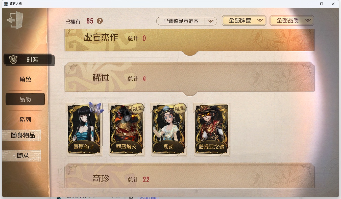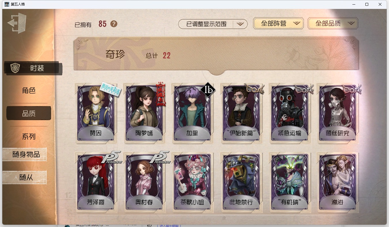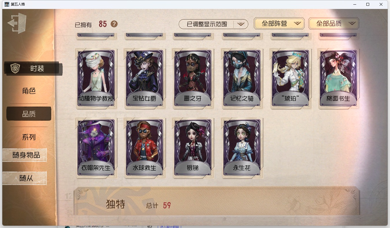 [16452269]安卓官服 邮箱账号 85时装 5金皮 22紫皮 6随从 38随身物品 【时装】红蝶-壹原侑子爱丽丝·德罗斯-片刻闲暇勘探员-盖提亚之遗“愚人金”-罪恶熔火古董商-菌丝研究入殓师-记忆之骑医生-永生花古董商-陶梦嫣冒险家-赞因“杰克”-加里气象学家-茶歇小姐黄衣之主-衣帽架先生“跛脚羊”-此地禁行“法罗女士”-芳泽霞宿伞之魂-桃面书生前锋-水球救生医生-司药小说家-“伊始新篇”蜡像师-淋浴昆虫学者-动植物学教授红夫人-宝钻女爵园丁-奥村春 【随身物品】拾贝奇珍枯萎的花冠奇珍扑克牌奇珍电掣(奇珍)未奏的乐章(奇珍)纠缠(奇珍)折柳稀世白泽玉奇珍厌离稀世