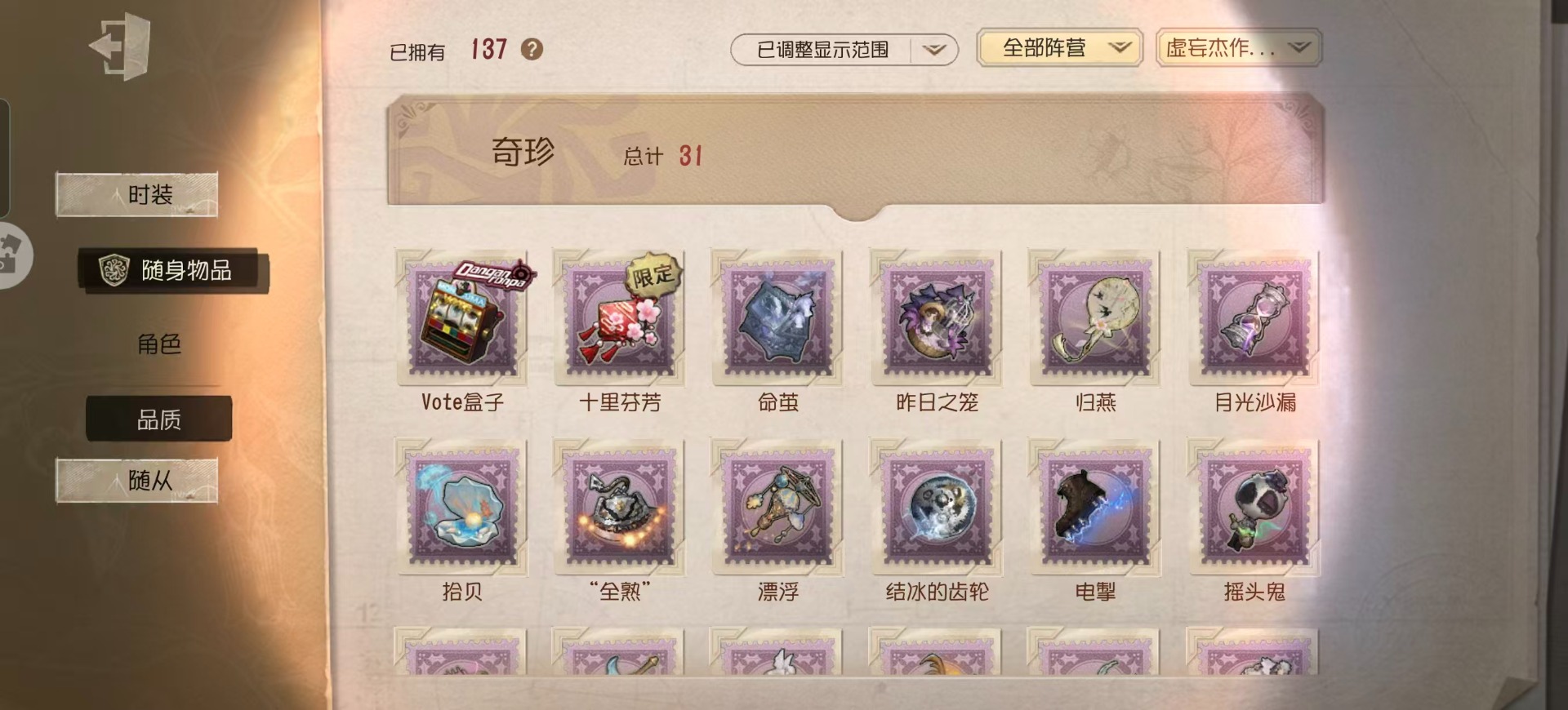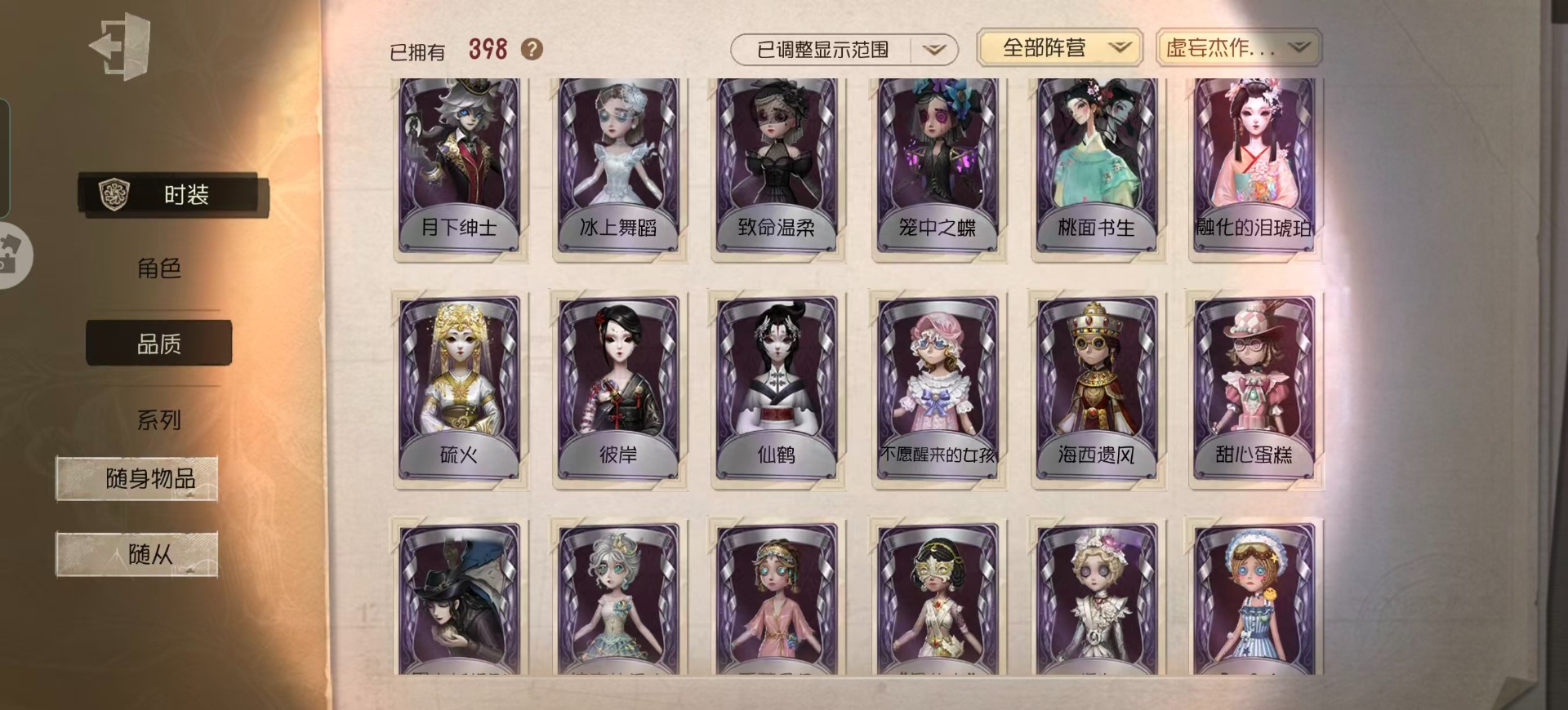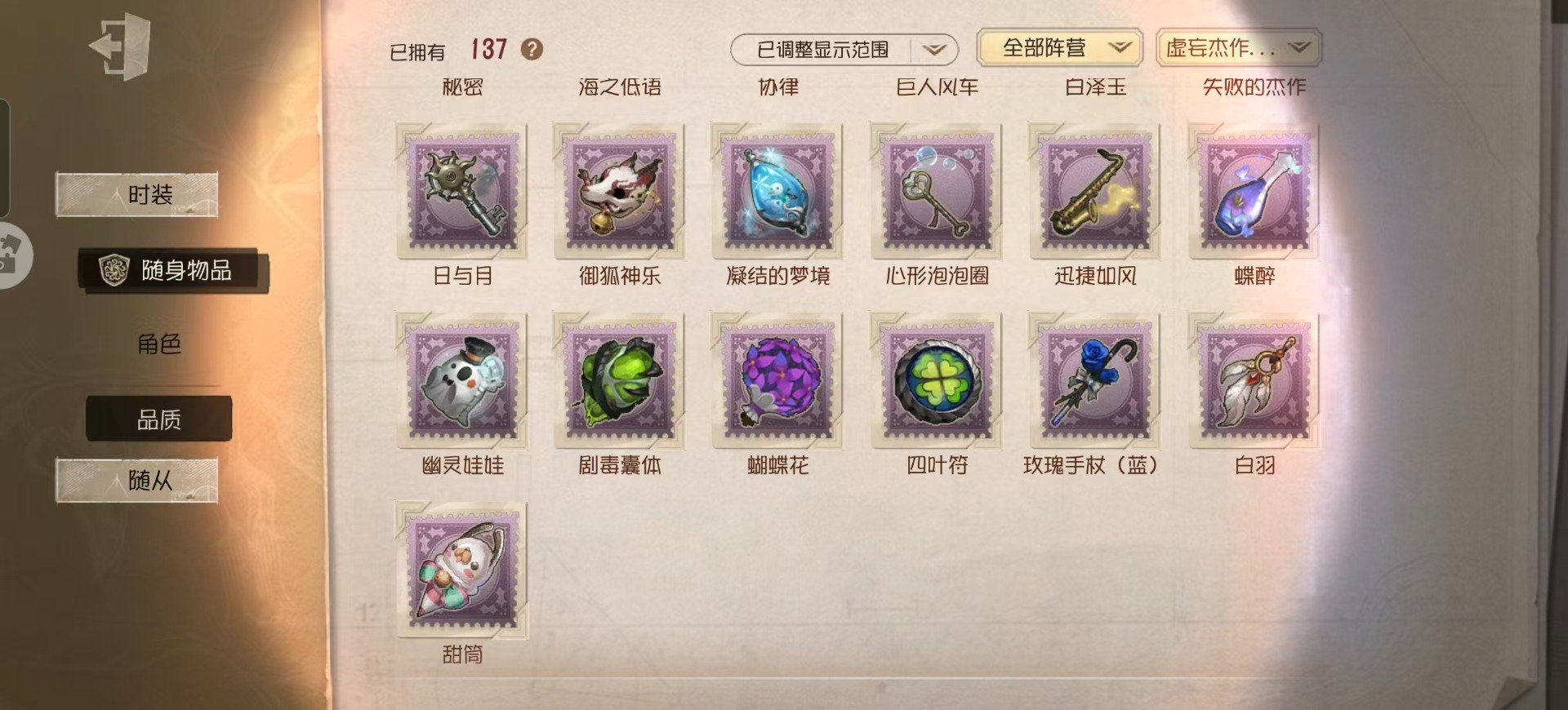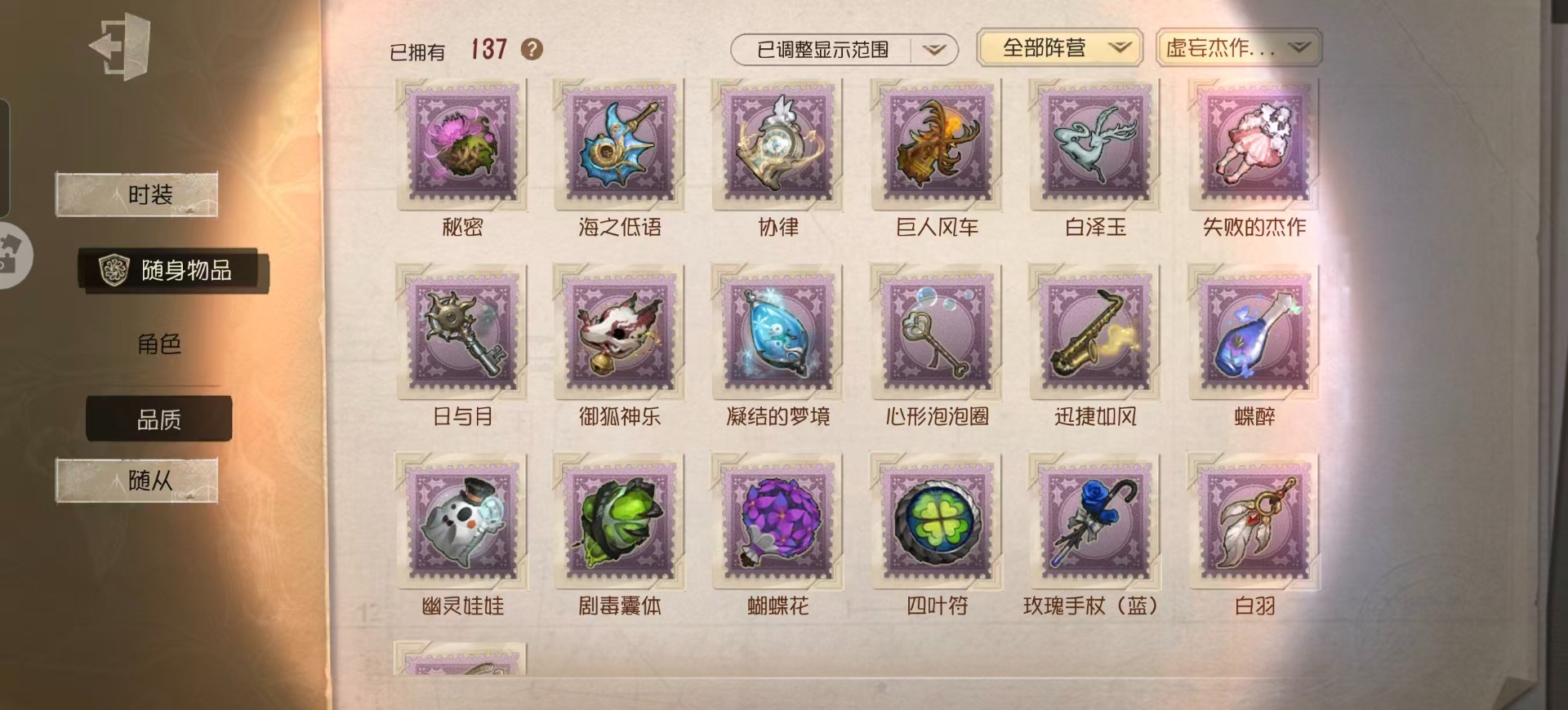 [16452417]华为 手机账号 398时装 19金皮 94紫皮 18随从 137随身物品 【时装】园丁-源自星辰园丁初晴爱丽丝·德罗斯-片刻闲暇古董商-招风旗医生-永生花作曲家-先驱探索蜘蛛-墨卡托投影小丑-捣蛋裘克心理学家-长夜杂技演员-ace调香师-提炼师记者-永恒空军-爱神之吻红蝶-硫火古董商-陶梦嫣气象学家-芙莉莲昆虫学者-缚愿画家-掌中篆记勘探员-妄念的陈伤宿伞之魂-桃面书生舞女-流离的月光医生-司药空军-黑天鹅之羽击球手-迫降专家空军-尼德霍格祭司-惊鸿机械师-不会枯萎的花魔术师-光学镜面冒险家-考古教授勘探员-公路骑士勘探员-迷途诗人“噩梦”-“渊”“杰克”-林中骑士红蝶-白无垢红蝶-仙鹤红夫人-最后一舞红夫人-贝拉夫人红夫人-伊莎贝拉舞女-“月佑者”幸运儿-双一幸运儿-拉塔托斯克调香师-今夜不再调香师-灰原哀调酒师-江之岛盾子调酒师-贝尔摩德调香师-致命温柔园丁-真相小姐园丁-怪鸟“小女孩”-年岁前锋-霓虹先锋孽蜥-骨笛盲女-暗金蛋糕盲女-海西遗风梦之女巫-逆位审判梦之女巫-红龙夫人摄影师-暮剑“使徒”-荒野女巫守墓人-奶酪摄影师-月下绅士 【随身物品】“光明”(稀世)夏(稀世)海之低语(奇珍)最后的故事稀世“全熟”奇珍毁誉之印稀世记者-昨日之笼奇珍月光沙漏奇珍结冰的齿轮(奇珍)摇头鬼(奇珍)御狐神乐奇珍剧毒囊体奇珍白羽奇珍幽灵娃娃奇珍心形泡泡圈奇珍迅捷如风奇珍vote盒子奇珍弄影稀世日与月奇珍书中蝶稀世十里芬芳奇珍四叶符奇珍
