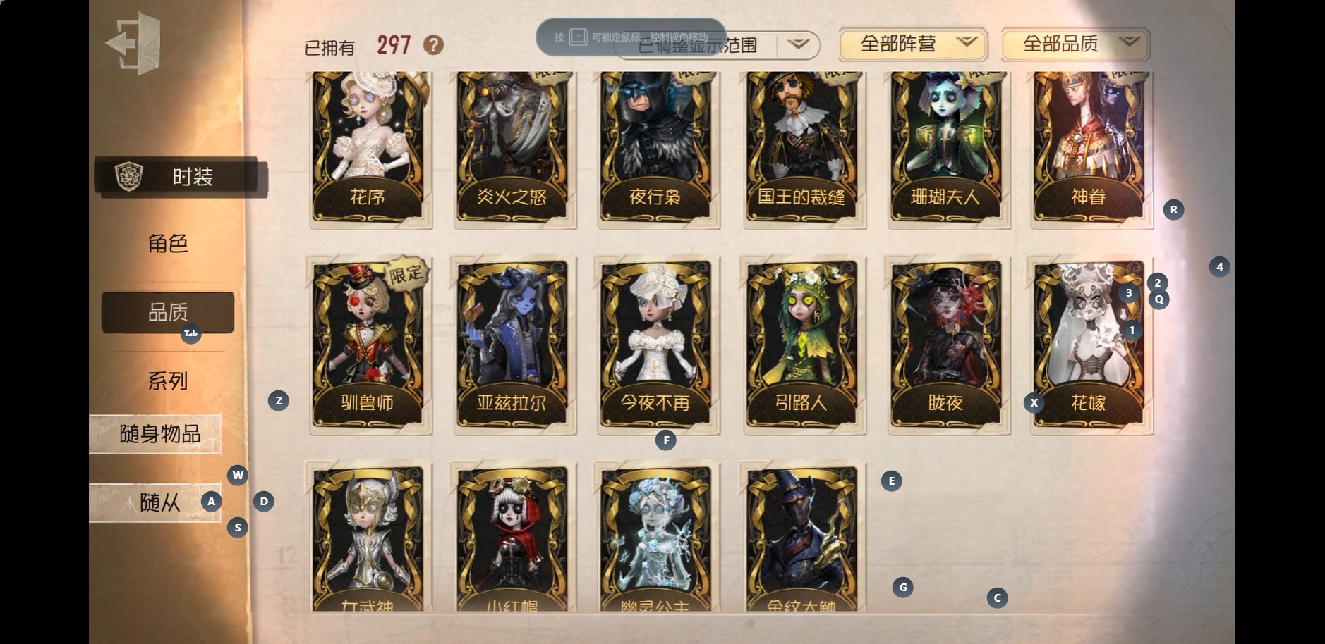 [16467119]vivo 手机账号 297时装 16金皮 87紫皮 17随从 131随身物品 【时装】:园丁-源自星辰蜘蛛-水晶烛台蜘蛛-光织守护咒术师-缄默者佣兵-缚咒法老佣兵-弹簧手佣兵-感染佣兵-思明佣兵-白鹰之舞佣兵-蒸汽少年机械师-纸心红蝶-融化的泪琥珀木偶师-行于界限间画家-掌中篆记古董商-陶梦嫣幸运儿-“未知射线”x守墓人-冥契 病患-休塔尔克冒险家-赞因空军-琼楼遗恨击球手-反骨之缚空军-怀古空军-黑天鹅之羽空军-新岛真空军-正位审判机械师-re-swim祭司-神圣之辉祭司-引路人祭司-梦之使者鹿头-林间狩者魔术师-蓝调阿拉丁魔术师-梅林魔术师-“假面绅士”魔术师-光学镜面魔术师-文学教授勘探员-鼹鼠先生勘探员-雀舌冒险家-警醒的龟先生厂长-“阿拉丁”厂长-“驯服”疯眼-炎火之怒厂长-亚瑟王26号守卫-蛋壳先生爱哭鬼-被时间遗忘的男孩“慈善家”-海盗远望者“慈善家”-领头羊“慈善家”-“稻草人”“杰克”-斯文加利“杰克”-不速之客红蝶-花嫁红蝶-白孔雀红蝶-仙鹤红蝶-祈雨之女黄衣之主-波塞冬红夫人-最后一舞园丁-艾玛舞女-香薰桑拿舞女-梵音之舞舞女-高卷杏舞女-“月佑者”舞女-驯兽师小丑-焗炉调香师-珊瑚夫人调香师-笼中之蝶调香师-致命温柔调香师-时之砂调香师-今夜不再调香师-红菱艳调香师-冰上舞蹈调香师-花序医生-光天使医生-采药人园丁-兰闺惊梦园丁-罗刹绯春先知-独行者幸运儿-女仆装幸运儿-双一幸运儿-苗木诚先知-夜行枭冒险家-发明家前锋-慵懒的兔先生前锋-沉眠的兔先生前锋-蛮牛之力牛仔-国王的裁缝盲女-甜心蛋糕盲女-音波盲女-吉尔达守墓人-列车长摄影师-亚兹拉尔宿伞之魂-神眷宿伞之魂-十字路口的美少年 【随身物品】:黯岩护符奇珍炸药桶奇珍针线包奇珍拾贝奇珍枯萎的花冠奇珍喝彩奇珍天羽奇珍月光沙漏奇珍电掣(奇珍)加拉尔奇珍荒诞之令奇珍雷电生成器稀世玫瑰手杖蓝奇珍迷你锤奇珍黑胶碟奇珍梦魇结晶稀世纯银子弹奇珍长生奇珍斗牛布奇珍不焚之羽奇珍蝶影奇珍火焰精灵奇珍海