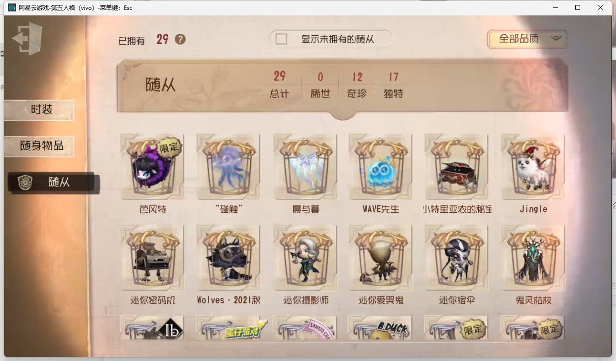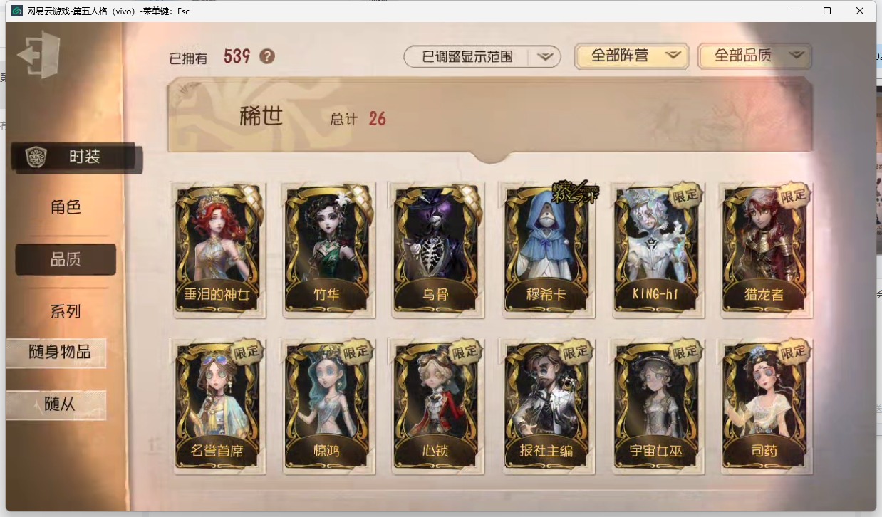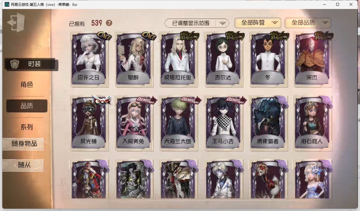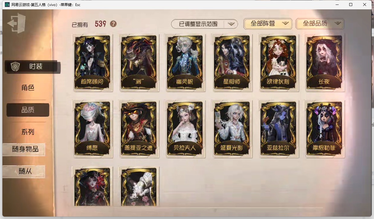 [16507868]vivo 手机账号 539时装 26金皮 150紫皮 29随从 189随身物品 【时装】:木偶师-king-h1渔女-垂泪的神女勘探员-盖提亚之遗使徒-多加雷萨爱丽丝·德罗斯-未至之人杂技演员-王马小吉破轮-胡桃夹子玩具商-入间美兔心理学家-神圣阿斯莫心理学家-长夜咒术师-灰烬狂想鹿头-镏金铜鹿隐士-首席顾问作曲家-幽灵帆爱丽丝·德罗斯-片刻闲暇渔女-破魔之刃律师-亚伯拉罕·葛雷渔女-chef k小提琴家-不羁的浪漫蜘蛛-水晶烛台蜘蛛-花祭园丁-宇宙女巫教授-紧急运输“囚徒”-天海兰太郎“小女孩”-欧律狄刻病患-天使向导红夫人-应许之日教授-丹尼尔·狄更斯杂技演员-梶井基次郎作曲家-猎龙者牛仔-船影黄衣之主-衣帽架先生拉拉队员-oph.lily梦之女巫-裁缝夫人蜡像师-星相师渔女-审判之翎红蝶-融化的泪琥珀摄影师-盛夏光影雕刻家-善忘的海马体爱哭鬼-善恶的本性骑士-ment k噩梦-溃夜猎者红蝶-胧夜画家-掌中篆记昆虫学者-缚愿祭司-阿乌拉古董商-陶梦嫣小提琴家-人造天堂医生-司药宿伞之魂-桃面书生病患-湖中影红夫人-悦乐酷洛米野人-青须的公爵邮差-报纸怪客调酒师-逐浪的玫瑰蜘蛛-聚光灯下飞行家-警戒哨台小说家-“伊始新篇”“杰克”-乌骨祭司-名誉首席破轮-沙滩漂移冒险家-报社主编26号守卫-西部大亨击球手-迫降专家祭司-《卡门》祭司-惊鸿祭司-“朝圣者”机械师-re-swim机械师-心锁祭司-反光镜祭司-摩根勒菲祭司-梦之使者鹿头-阿努比斯魔术师-白胡子昆虫学者-穆希卡冒险家-警醒的龟先生厂长-不死护卫大副-海盗电台雕刻家-动物女巫“噩梦”-“渊”爱哭鬼-雪上小王子“慈善家”-传信官画家-江户川乱步红夫人-贝拉夫人红蝶-竹华红夫人-最后一舞冒险家-爱丽丝冒险家-考古教授玩具商-线控信号调香师-冰上舞蹈园丁-罗刹绯春先知-历战猎人守墓人-壁画修复员盲女-甜心蛋糕盲女-海女巫梦之女巫-红龙夫人摄影师-en ligne摄影师-亚兹拉尔摄影师-月下绅士摄影师-暮剑摄影师-皮塔拉托里“使徒”-翡翠女王“使徒”-校监夫人入殓师-守钟人 【随身物品】:荣光的残像(稀世)