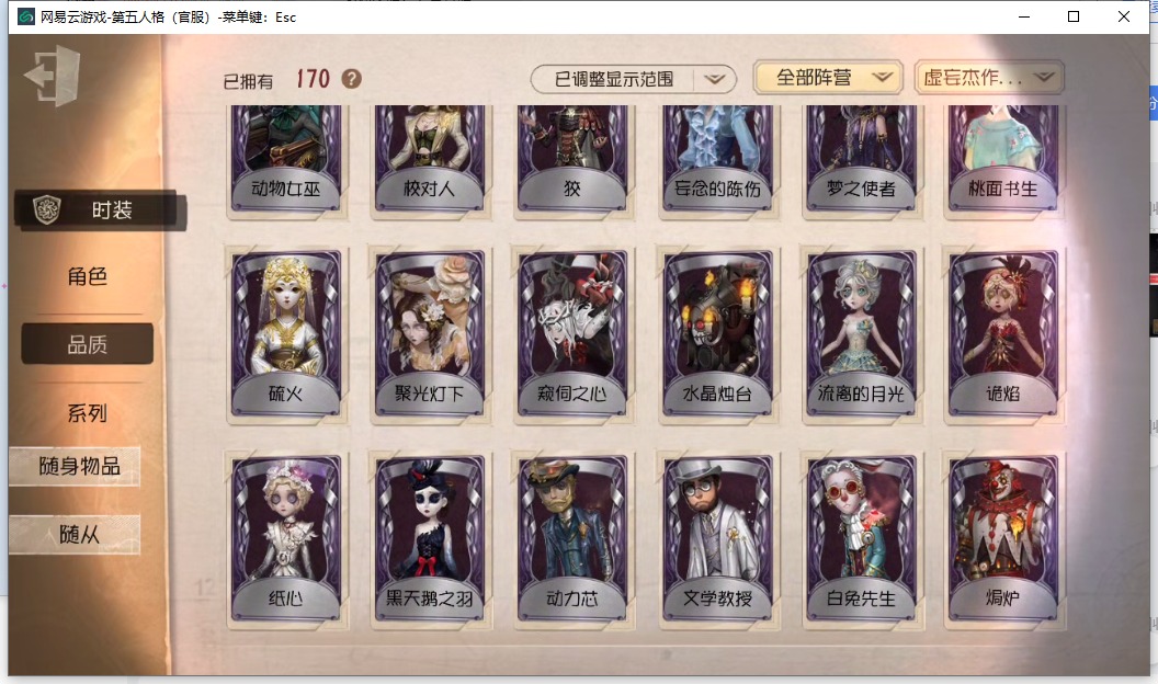 [16527919]安卓官服 邮箱账号 170时装 7金皮 48紫皮 9随从 82随身物品 【时装】爱丽丝·德罗斯-片刻闲暇勘探员-盖提亚之遗机械师-纸心飞行家-异相睡眠“心理学家”-朱丽叶蜘蛛-窥伺之心红蝶-硫火拉拉队员-荧“小女孩”-欧律狄刻古董商-陶梦嫣昆虫学者-缚愿26号守卫-秘密大厨记者-恐惧的旧影蜘蛛-聚光灯下破轮-沙滩漂移舞女-流离的月光魔术师-动力芯幸运儿-蛋小黄的好朋友邮差-潘塔龙入殓师-“温室”宿伞之魂-桃面书生骑士-艺术品商人作曲家-澄明的理性调酒师-校对人“小女孩”-异动指针木偶师-义体再构小说家-“伊始新篇”祭司-梦之使者魔术师-文学教授小丑-焗炉调香师-红菱艳园丁-怪鸟“小女孩”-桃乐丝前锋-坂本龙司盲女-吉尔达 【随身物品】调制架(稀世)火火火(奇珍)回旋镖奇珍进化稀世最后的故事稀世醒梦铃奇珍至识之眼稀世漂浮奇珍枯萎的花冠奇珍厂长-家庭时光奇珍“女王蜂”-命茧奇珍“慈善家”-谎言之杖稀世笔墨藏锋(奇珍)欢呼(奇珍)未奏的乐章(奇珍)微型护卫奇珍冰冻之心稀世