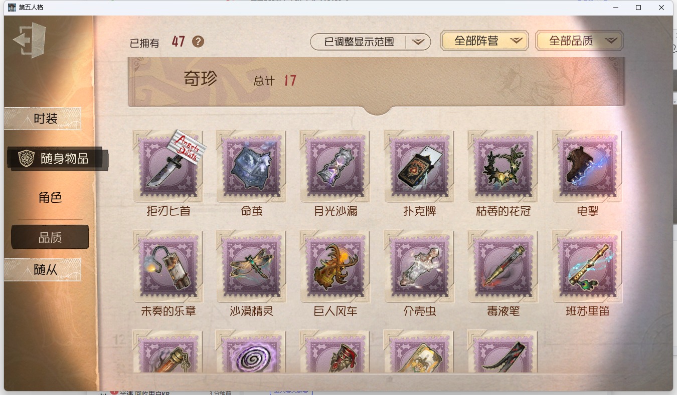 [16527978]安卓官服 手机账号 109时装 5金皮 26紫皮 7随从 47随身物品 【时装】隐士-游隼医生-永生花飞行家-异相睡眠小丑-捣蛋裘克律师-亚伯拉罕·葛雷幸运儿-星航之旅前锋-阿瓦尔的战车“杰克”-艾札克·佛斯特“法罗女士”-向深处求告记者-巡于归途昆虫学者-缚愿噩梦-溃夜猎者26号守卫-秘密大厨幸运儿-蛋小黄的好朋友机械师-归来者冒险家-考古教授厂长-“驯服”厂长-不死护卫红蝶-仙鹤幸运儿-拉塔托斯克孽蜥-骨笛梦之女巫-川上富江盲女-不愿醒来的女孩宿伞之魂-十字路口的美少年 【随身物品】燃烧的乐章(稀世)“光明”(稀世)拒刃匕首(奇珍)沙漠精灵(奇珍)枯萎的花冠奇珍跃升的强音稀世机关密匣稀世月光沙漏奇珍未奏的乐章(奇珍)介壳虫奇珍巨人风车奇珍班苏里笛奇珍父亲的怀表稀世毒液笔奇珍
