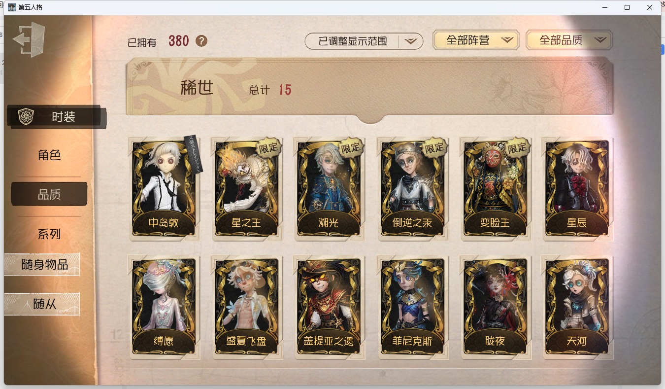 [16528156]安卓官服 手机账号 380时装 16金皮 91紫皮 18随从 146随身物品 【时装】园丁-源自星辰爱丽丝·德罗斯-片刻闲暇空军-天河园丁初晴勘探员-盖提亚之遗机械师-纸心牛仔-船影“心理学家”-朱丽叶幸运儿-星航之旅佣兵-中岛敦古董商-黑鸦小说家-最原终一心理学家-神圣阿斯莫“囚徒”-天海兰太郎律师-倒逆之汞古董商-陶梦嫣医生-银锑 病患-休塔尔克病患-溯光律师-正义的砝码气象学家-茶歇小姐昆虫学者-缚愿红蝶-胧夜蜘蛛-聚光灯下“愚人金”-辉锑矿病患-湖中影渔女-鬼脸天蛾勘探员-盛夏飞盘宿伞之魂-桃面书生幸运儿-蛋小黄的好朋友佣兵-弦音畸变邮差-华生医生“喧嚣”-星之王病患-罗密欧小说家-“伊始新篇”26号守卫-西部大亨击球手-反骨之缚空军-尼德霍格祭司-反光镜魔术师-文学教授昆虫学者-曼陀罗哭泣小丑-炮弹飞船律师-白兔先生律师-兰斯洛特“噩梦”-随机数病患-星辰“慈善家”-领头羊画家-逃亡者“杰克”-“好孩子"黄衣之主-异星舞女-香薰桑拿玩具商-浴石商人小丑-变脸王幸运儿-拉塔托斯克舞女-恶之花调酒师-黑玫瑰舞女-高卷杏佣兵-弹簧手佣兵-感染盲女-海西遗风“使徒”-校监夫人摄影师-月下绅士入殓师-菲尼克斯 【随身物品】愤怒河豚(奇珍)星夜翱翔(奇珍)海之低语(奇珍)回旋镖奇珍进化稀世子夜来使奇珍永恒之沙奇珍“全熟”奇珍毁誉之印稀世记忆囚笼奇珍笔墨藏锋(奇珍)急冻核心奇珍海底遗物奇珍玫瑰手杖蓝奇珍玫瑰手杖奇珍见证稀世沉沦的面具奇珍电阻表奇珍白泽玉奇珍不灭之火稀世地层石蛋奇珍密码筒奇珍星星糖奇珍巫毒匕首奇珍卡住的齿轮奇珍逆转之战稀世书中蝶稀世