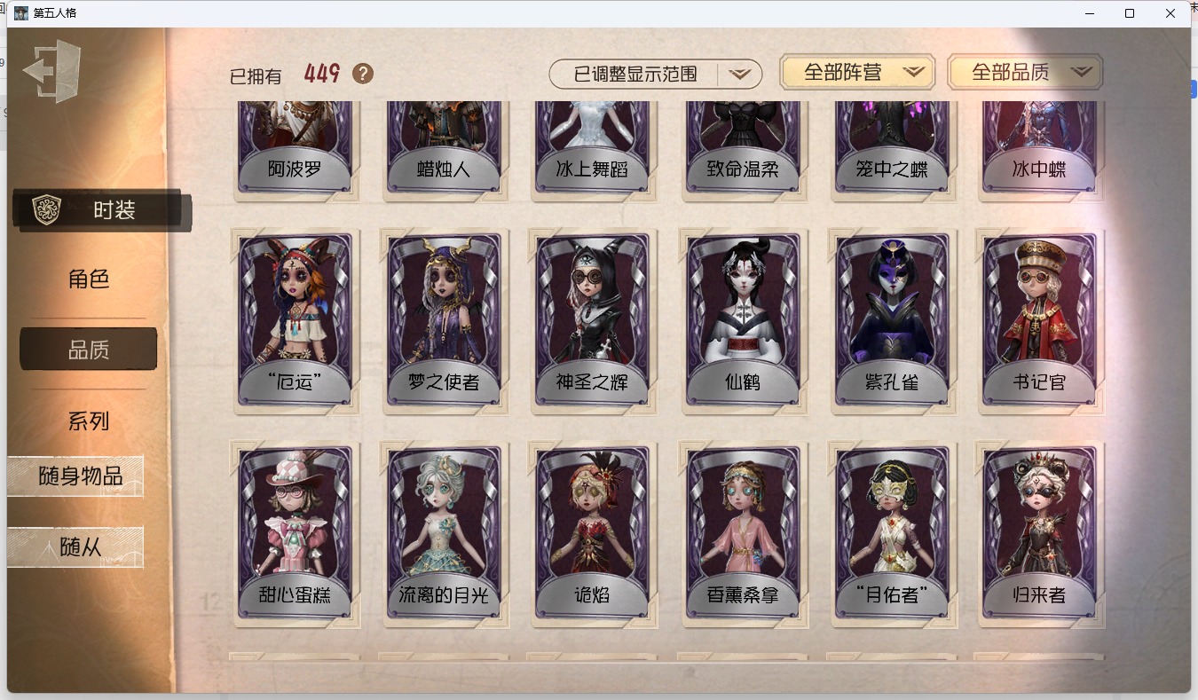[16528172]苹果官服 手机账号 449时装 14金皮 120紫皮 21随从 174随身物品 【时装】园丁-源自星辰爱丽丝·德罗斯-片刻闲暇医生-流萤咒术师-灰烬狂想幸运儿-星航之旅咒术师-缄默者咒术师-花边新闻杂技演员-可可豆爱哭鬼-爱德华·梅森咒术师-椰香假日“小女孩”-瑞吉儿·加德纳“小女孩”-欧律狄刻古董商-陶梦嫣舞女-流离的月光古董商-墨韵佣兵-蒸汽少年空军-海盗呛手空军-“苏珊娜”祭司-冰中蝶机械师-归来者机械师-糖果少女祭司-神圣之辉祭司-梦之使者蜡像师-怒火魔术师-光学镜面鹿头-林间狩者魔术师-文学教授冒险家-警醒的龟先生鹿头-阿努比斯勘探员-矿业董事昆虫学者-动植物学教授律师-兰斯洛特厂长-“阿拉丁”厂长-亚瑟王26号守卫-蛋壳先生厂长-海怪船长红蝶-花嫁机械师-小红帽画家-江户川乱步“杰克”-绿纹大触“杰克”-白纹大触“杰克”-林中骑士红蝶-紫孔雀红蝶-白孔雀红夫人-最后一舞盲女-甜心蛋糕佣兵-白鹰之舞舞女-香薰桑拿玩具商-浴石商人调香师-冰上舞蹈调酒师-女高音调酒师-海盐特调舞女-驯兽师先知-月相调香师-时之砂园丁-罗刹绯春园丁-怪鸟佣兵-感染“小女孩”-年岁医生-光天使医生-往昔医生-采药人调香师-今夜不再调香师-致命温柔盲女-黄金蛋糕前锋-沉眠的兔先生“囚徒”-灵犀妙探“使徒”-校监夫人摄影师-阿波罗宿伞之魂-东风遥 【随身物品】“光明”(稀世)夏(稀世)发条蝴蝶(稀世)海之低语(奇珍)最后的故事稀世诅咒黑云稀世逐香尘奇珍拾贝奇珍咖啡壶稀世禁忌之匙奇珍黄玫瑰之骸稀世极乐熔毁奇珍唤潮稀世玫瑰之下稀世玫瑰手杖奇珍猎人的箭囊稀世长生奇珍斗牛布奇珍黑胶碟奇珍梦魇结晶稀世雪莲稀世星见奇珍巫毒匕首奇珍“星辰”稀世萤之羽稀世厌离稀世鹰羽奇珍舞会彩球奇珍尼古拉斯的遗嘱奇珍卡住的齿轮奇珍水晶宫稀世逝去的纪念奇珍