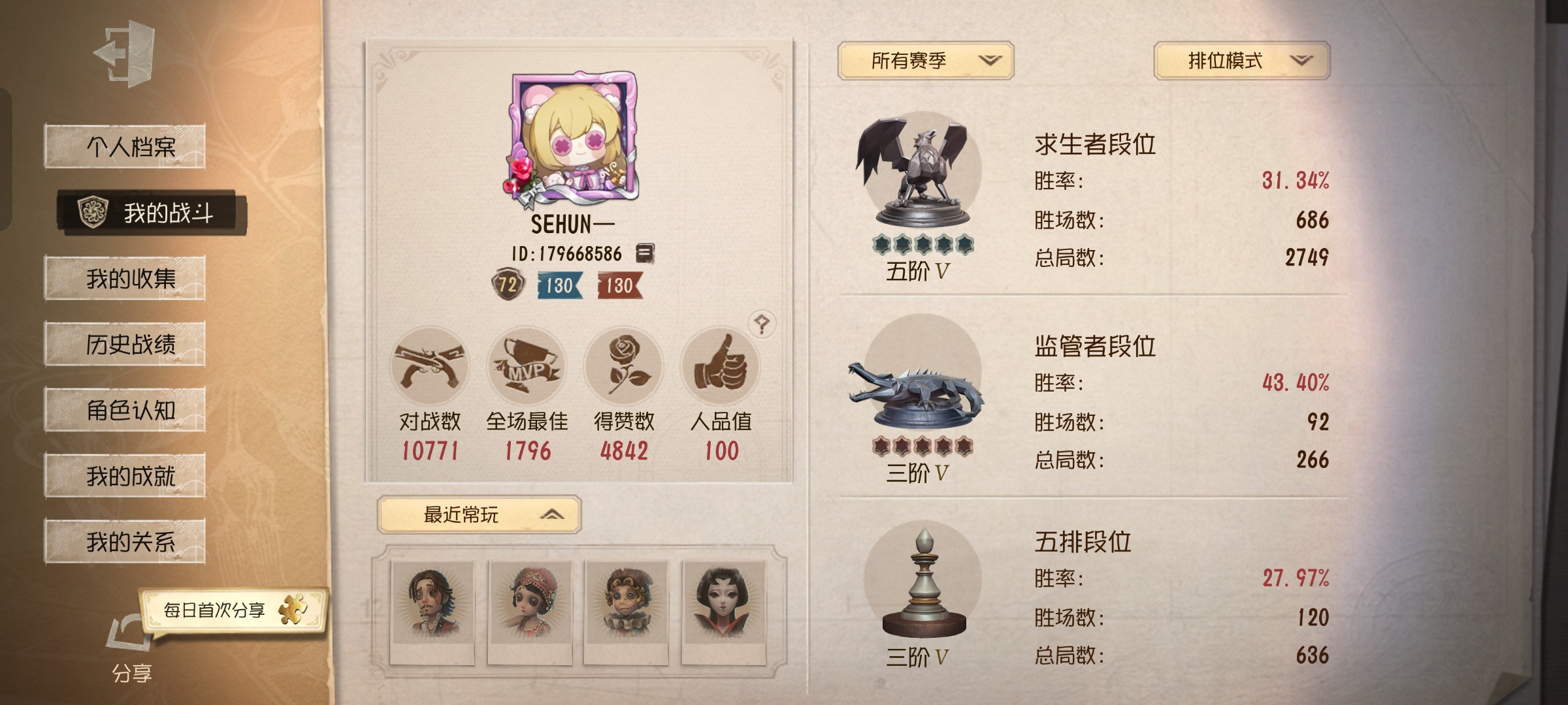 [16540831]第五人格 oppo渠道服 755时装 1.1w线索 九千薯 15金皮 25金挂 温泉煮酒 猎龙者 长夜 川上富江 盖提亚之遗 拉塔托斯克 尼德霍格 天河 不会枯萎的花 花祭 暗金蛋糕 花嫁 司药 今夜不再 花序 芳泽霞 陶梦嫣 梦境中的爱丽丝 梅爱丽 人间美兔 新岛真