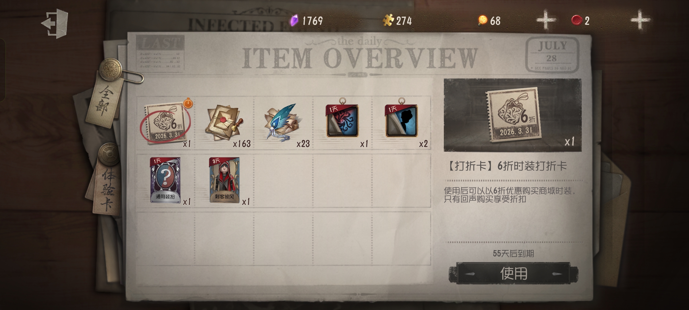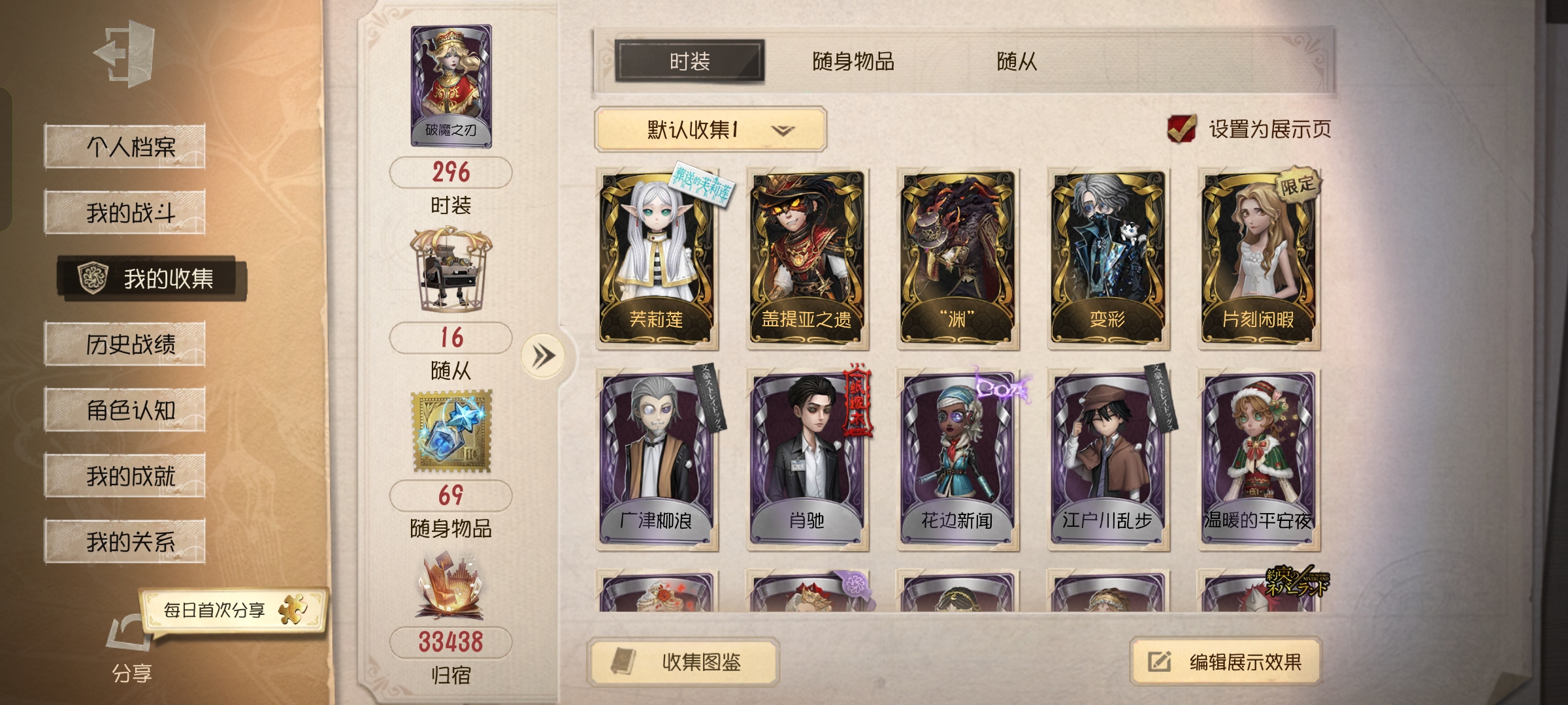 [16541535]第五人格 oppo渠道服 求生小号 296时装 5金皮 4金挂 芙莉莲 盖提亚之遗 渊 变彩 片刻闲暇 广津柳浪 肖驰 花边新闻 江户川乱步 温暖的平安夜