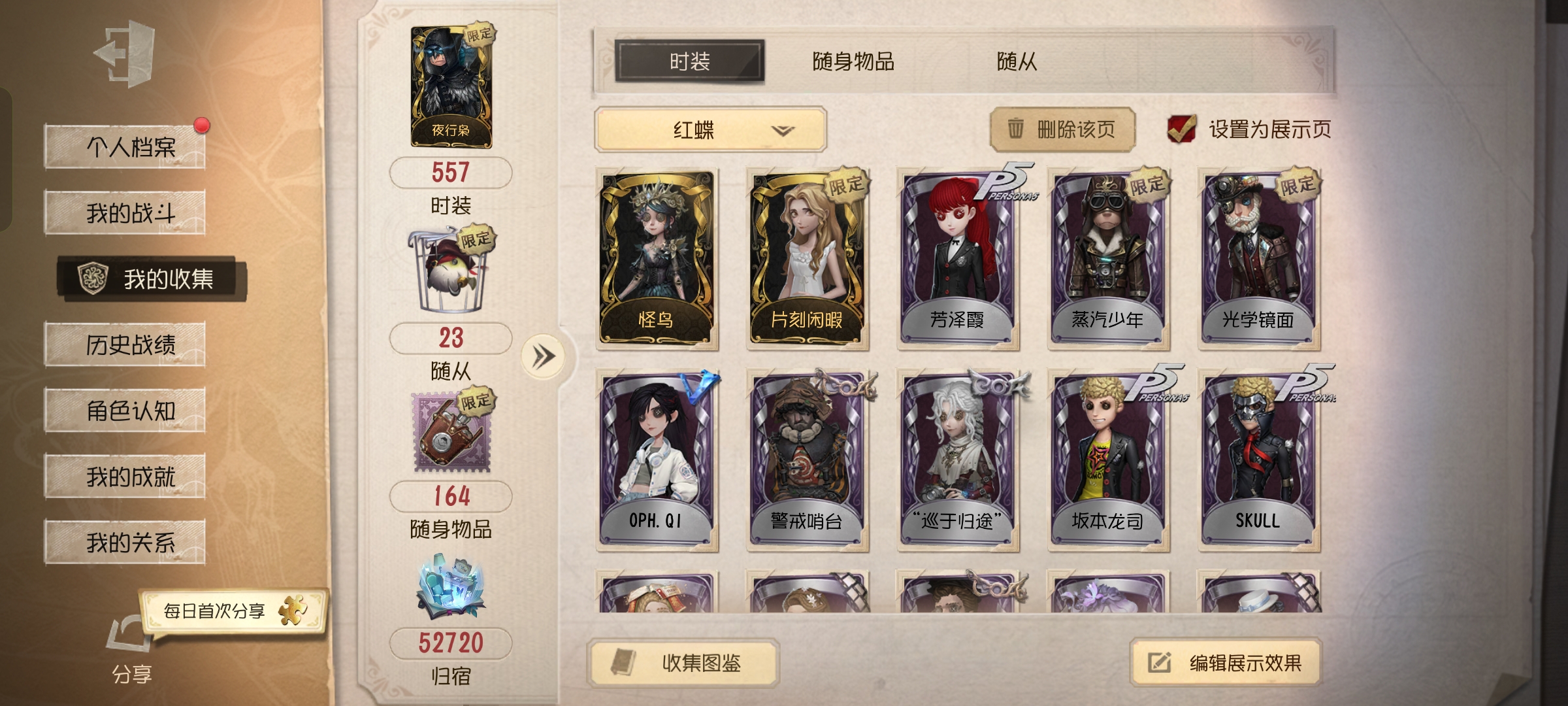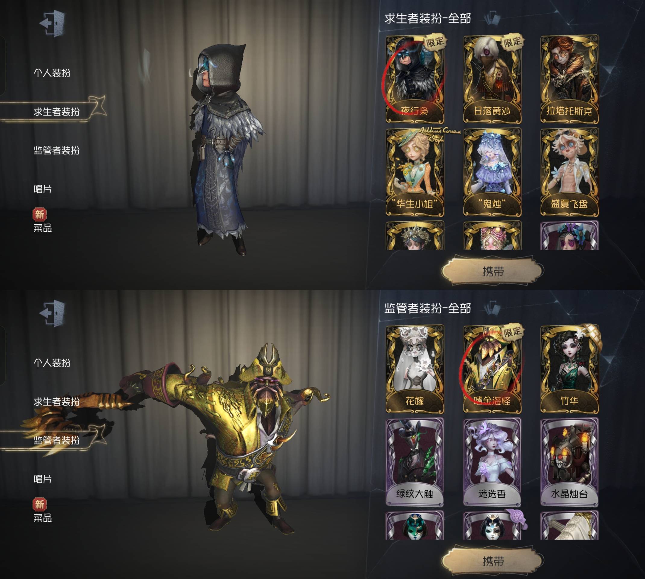 [16541551]第五人格 oppo渠道服 557时装 多限定 12金皮 夜行枭 嗜金海怪 日落黄沙 华生小姐 盛夏飞盘 拉塔托斯克 鬼烛 不会枯萎的花 花嫁 竹华 怪鸟 片刻闲暇 芳泽霞 蒸汽少年 光学镜面 坂本龙司 skull 锁芯
