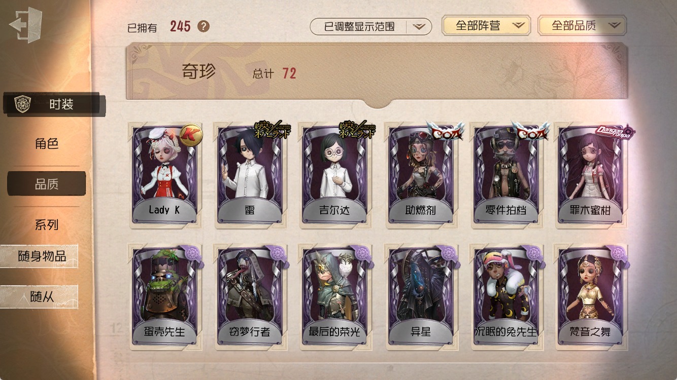 [16548564]苹果官服 邮箱账号 245时装 7金皮 72紫皮 16随从 103随身物品 【时装】医生-流萤蜘蛛-水晶烛台蜘蛛-光织守护佣兵-思明佣兵-白鹰之舞佣兵-缚咒法老野人-零件拍档空军-琼楼遗恨击球手-熔岩蛋糕空军-黑天鹅之羽机械师-re-swim祭司-神圣之辉祭司-梦之使者祭司-“厄运”祭司-撒玛拉鹿头-蒸汽朋克鹿头-林间狩者鹿头-刻律涅之伤魔术师-“假面绅士”魔术师-光学镜面律师-白兔先生勘探员-日向创昆虫学者-黑女巫冒险家-考古教授厂长-“阿拉丁”厂长-亚瑟王26号守卫-蛋壳先生“慈善家”-“稻草人”“杰克”-绿纹大触画家-纳西瑟斯“杰克”-白纹大触红蝶-仙鹤舞女-高卷杏舞女-恶之花舞女-梵音之舞调香师-lady k调香师-笼中之蝶调香师-时之砂调香师-今夜不再调香师-红菱艳调酒师-助燃剂医生-炽天使医生-采药人医生-罪木蜜柑先知-最后的荣光孽蜥-结晶体孽蜥-窃梦行者牛仔-逆刃之鞭前锋-沉眠的兔先生前锋-坂本龙司盲女-吉尔达摄影师-阿波罗宿伞之魂-寒霜“使徒”-校监夫人入殓师-喜多川祐介宿伞之魂-十字路口的美少年 【随身物品】黯岩护符奇珍诅咒黑云稀世炸药桶奇珍御狐神乐奇珍急冻核心奇珍黄玫瑰之骸稀世猎人的箭囊稀世科学的艺术奇珍黑胶碟奇珍梦魇结晶稀世斗牛布奇珍火焰精灵奇珍鬼脸披肩奇珍萤之羽稀世星星糖奇珍往日时光奇珍一步之遥奇珍星图奇珍卡住的齿轮奇珍凝结的梦境奇珍涅槃稀世凝聚之水奇珍尼古拉斯的遗嘱奇珍