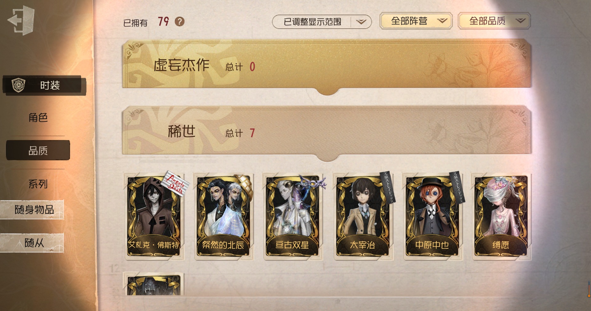 [16587777]苹果官服 手机账号 79时装 7金皮 22紫皮 1随从 35随身物品 【时装】宿伞之魂-粲然的北辰幸运儿-星航之旅杂技演员-可可豆杂技演员-ace“小女孩”-瑞吉儿·加德纳律师-亚伯拉罕·葛雷破轮-胡桃夹子“噩梦”-圣洁“囚徒”-天海兰太郎“杰克”-艾札克·佛斯特昆虫学者-缚愿勘探员-妄念的陈伤“愚人金”-辉锑矿魔术师-广津柳浪勘探员-罗纳德勘探员-中原中也画家-江户川乱步“杰克”-忘川渡人调酒师-女高音梦之女巫-红龙夫人守墓人-异星开采宿伞之魂-亘古双星“囚徒”-太宰治入殓师-守钟人宿伞之魂-残花泪 【随身物品】绝影(奇珍)拒刃匕首(奇珍)太宰的爱书(稀世)“女王蜂”-命茧奇珍未奏的乐章(奇珍)唤潮稀世玫瑰手杖蓝奇珍见证稀世白泽玉奇珍不灭之火稀世鬼脸披肩奇珍地层石蛋奇珍西洋镜奇珍