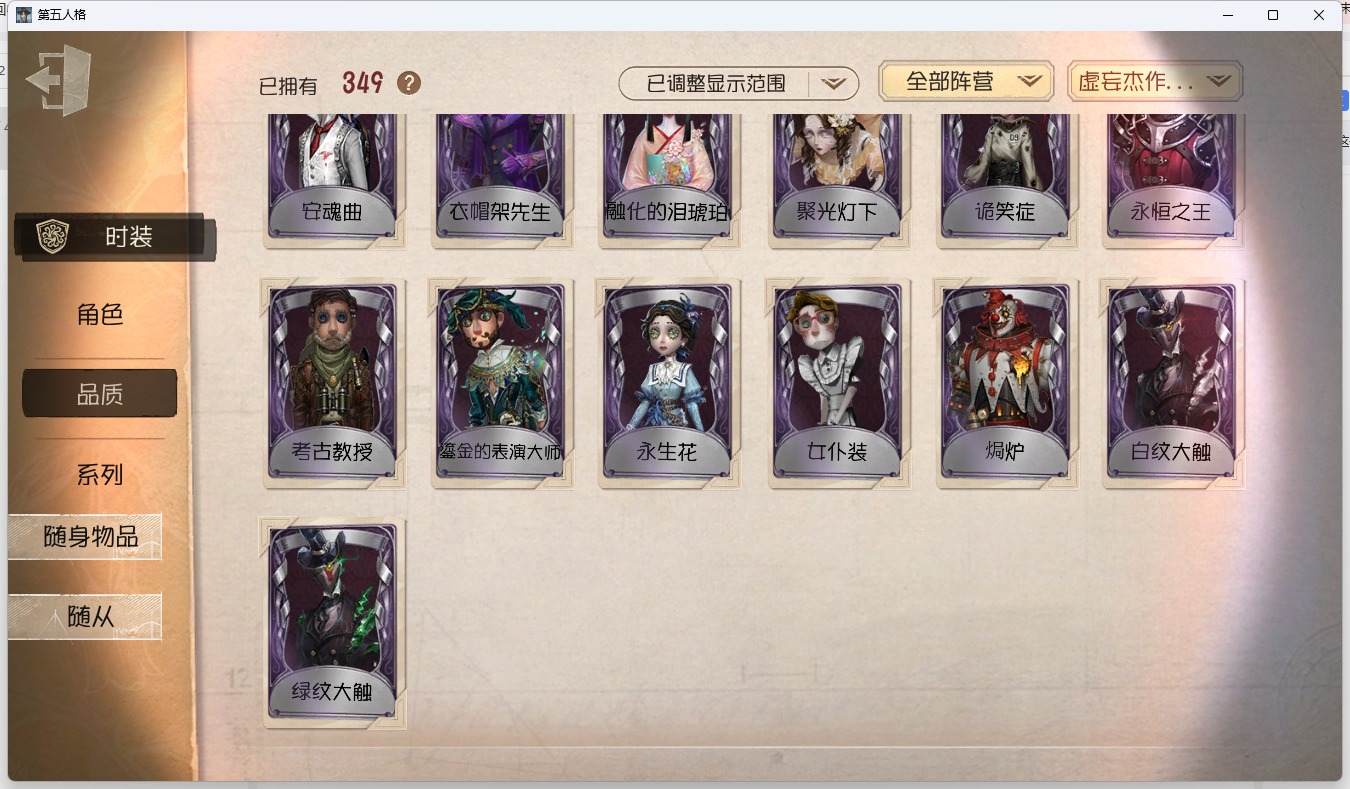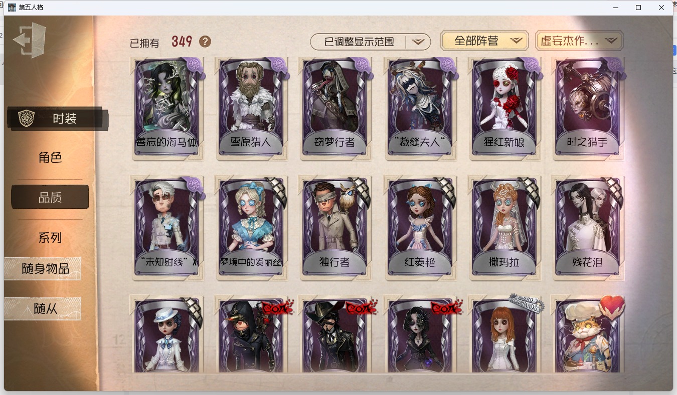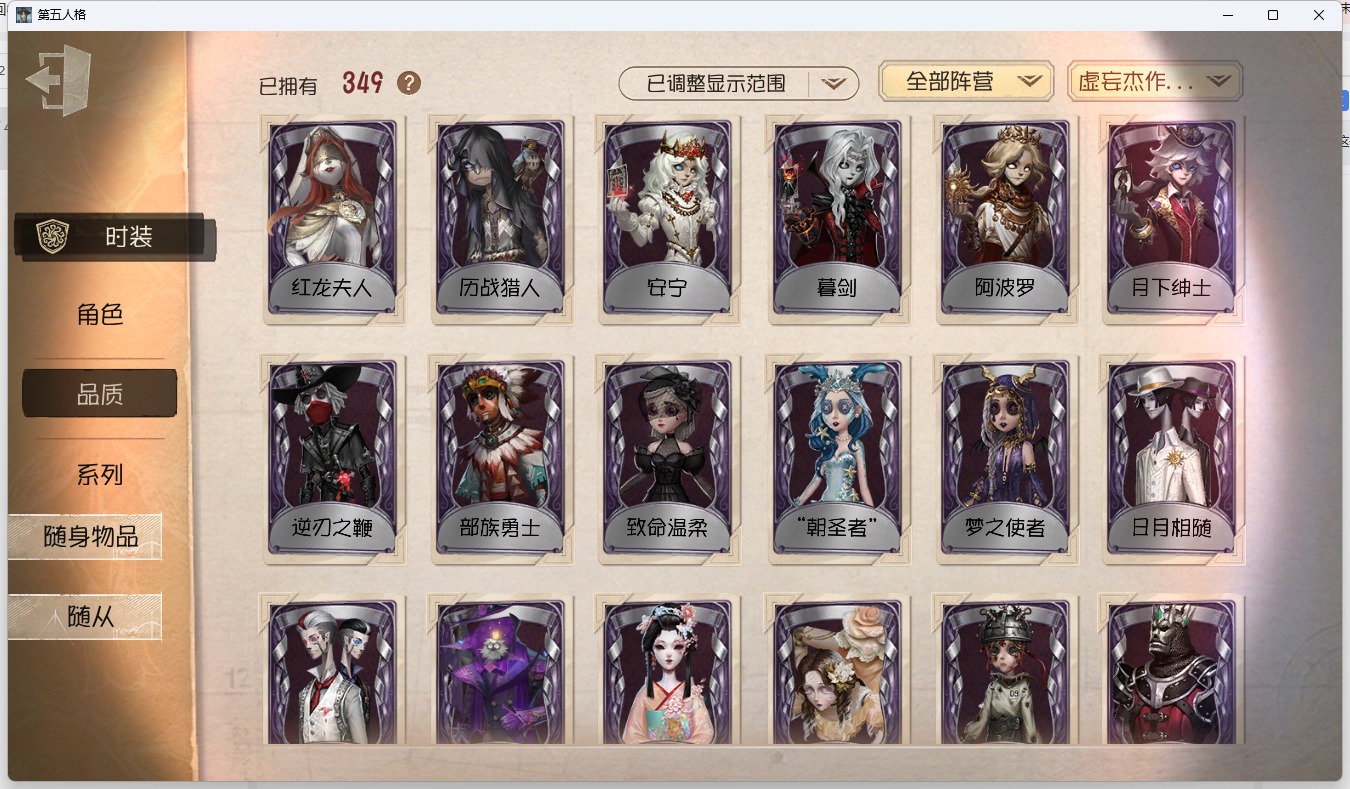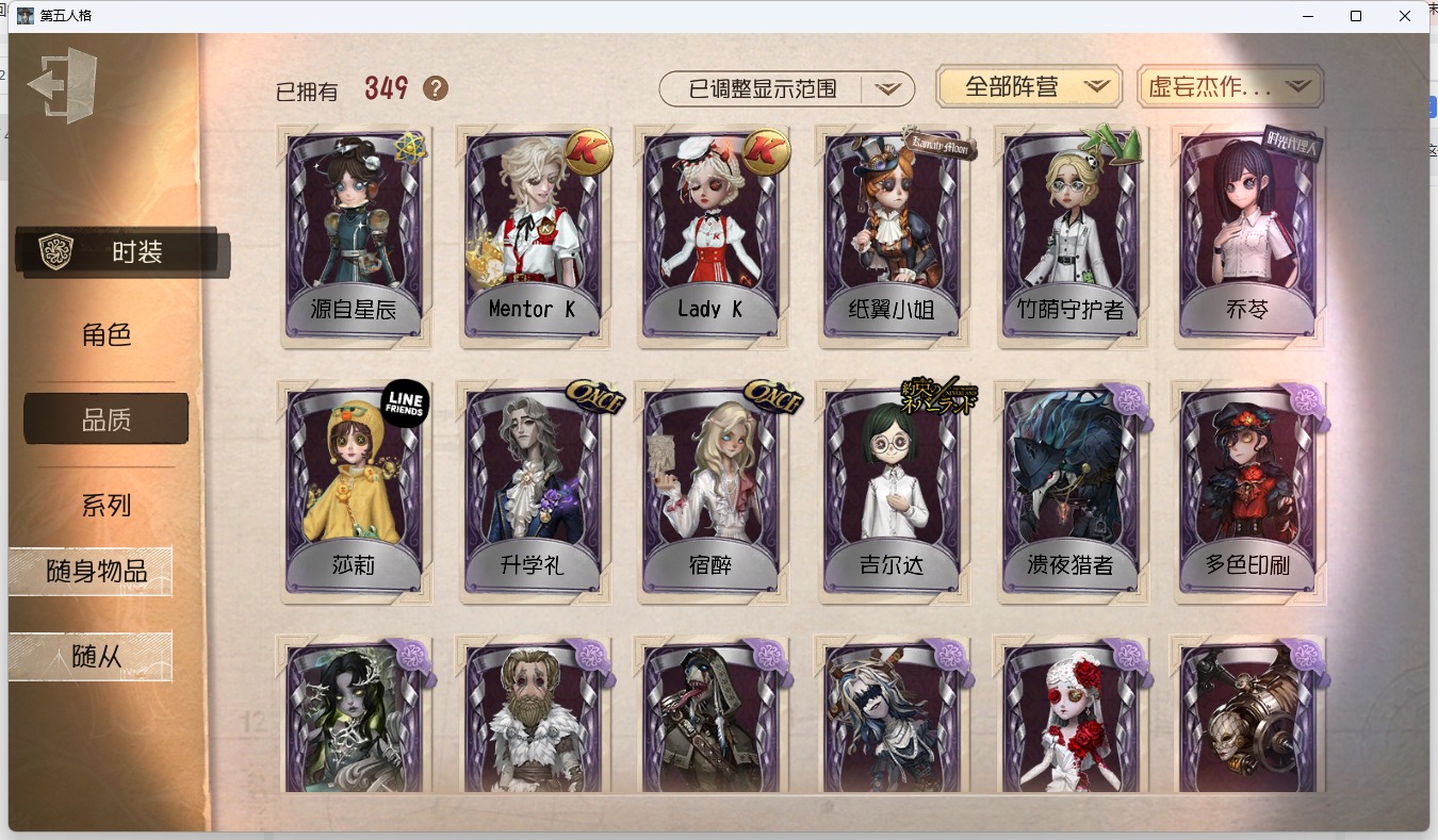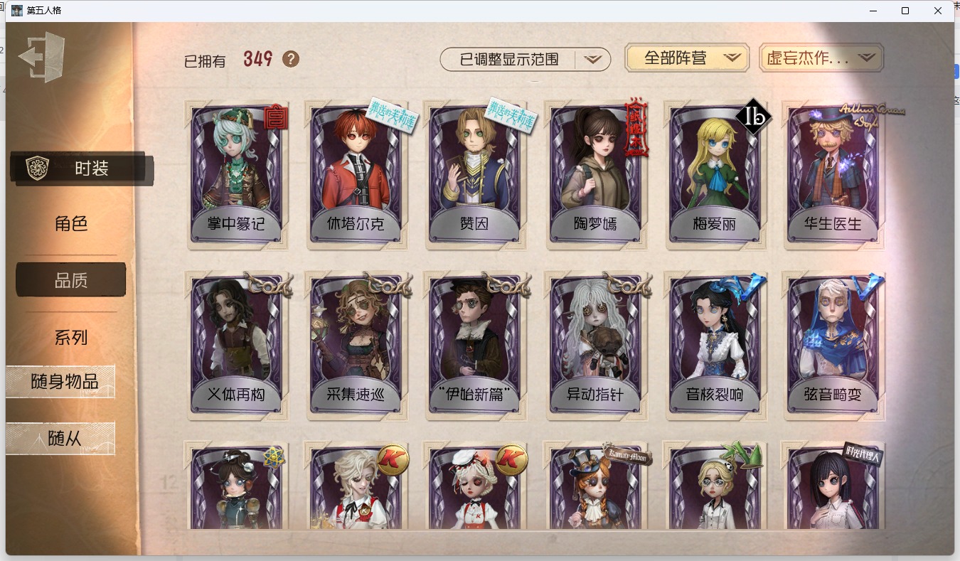 [16587875]安卓官服 手机账号 349时装 16金皮 97紫皮 16随从 138随身物品 【时装】园丁-源自星辰园丁初晴爱丽丝·德罗斯-片刻闲暇渔女-破魔之刃隐士-升学礼蜘蛛-时之猎手咒术师-缄默者野人-雪原猎人“小女孩”-欧律狄刻摄影师-安宁“慈善家”-鎏金的表演大师小女孩-石榴蝶小姐咒术师-噬恶之渊机械师-莎莉红蝶-融化的泪琥珀气象学家-茶歇小姐摄影师-盛夏光影调香师-聂莫黎古董商-陶梦嫣幸运儿-“未知射线”x守墓人-冥契 黄衣之主-衣帽架先生“心理学家”-恒梦爱哭鬼-善恶的本性骑士-ment k歌剧演员-拂晓女士空军-梅爱丽病患-休塔尔克昆虫学者-缚愿26号守卫-秘密大厨记者-恐惧的旧影冒险家-赞因弓箭手-发散谱r音核裂响“法罗女士”-向深处求告作曲家-暮影画家-掌中篆记噩梦-溃夜猎者雕刻家-善忘的海马体佣兵-弦音畸变火灾调查员-“膨化”时空之影-“有机磷”“法罗女士”-芳泽霞蜘蛛-聚光灯下“愚人金”-辉锑矿勘探员-盛夏飞盘邮差-华生医生记者-梦境中的爱丽丝小说家-“伊始新篇”哭泣小丑-熄灭的太阳画家-多色印刷木偶师-义体再构“博士”-“裁纸机”蜘蛛-不息载械“小女孩”-异动指针拉拉队员-采集速巡空军-琼楼遗恨空军-新岛真祭司-“朝圣者”祭司-梦之使者机械师-诡笑症蜡像师-淋浴昆虫学者-曼陀罗厂长-永恒之王爱哭鬼-被时间遗忘的男孩“杰克”-白纹大触“杰克”-金纹大触红蝶-竹华红夫人-最后一舞冒险家-考古教授舞女-恶之花玩具商-纸翼小姐小丑-异界行者小丑-焗炉调香师-致命温柔调香师-猩红新娘调香师-lady k调香师-红菱艳调酒师-海盐特调幸运儿-女仆装园丁-奥村春先知-历战猎人先知-观测者先知-独行者孽蜥-窃梦行者孽蜥-骨笛牛仔-教鞭前锋-坂本龙司前锋-skull牛仔-逆刃之鞭盲女-吉尔达牛仔-部族勇士摄影师-亚兹拉尔摄影师-月下绅士摄影师-阿波罗摄影师-暮剑“使徒”-白松露守墓人-日落黄沙守墓人-奶酪宿伞之魂-日月相随宿伞之魂-安魂曲宿伞之魂-残花泪 【随身物品】沙滩镜(奇珍)微缩星球(奇珍)沙漠精灵(奇珍)致命的邀请函稀世充气海豚奇珍枯萎的花