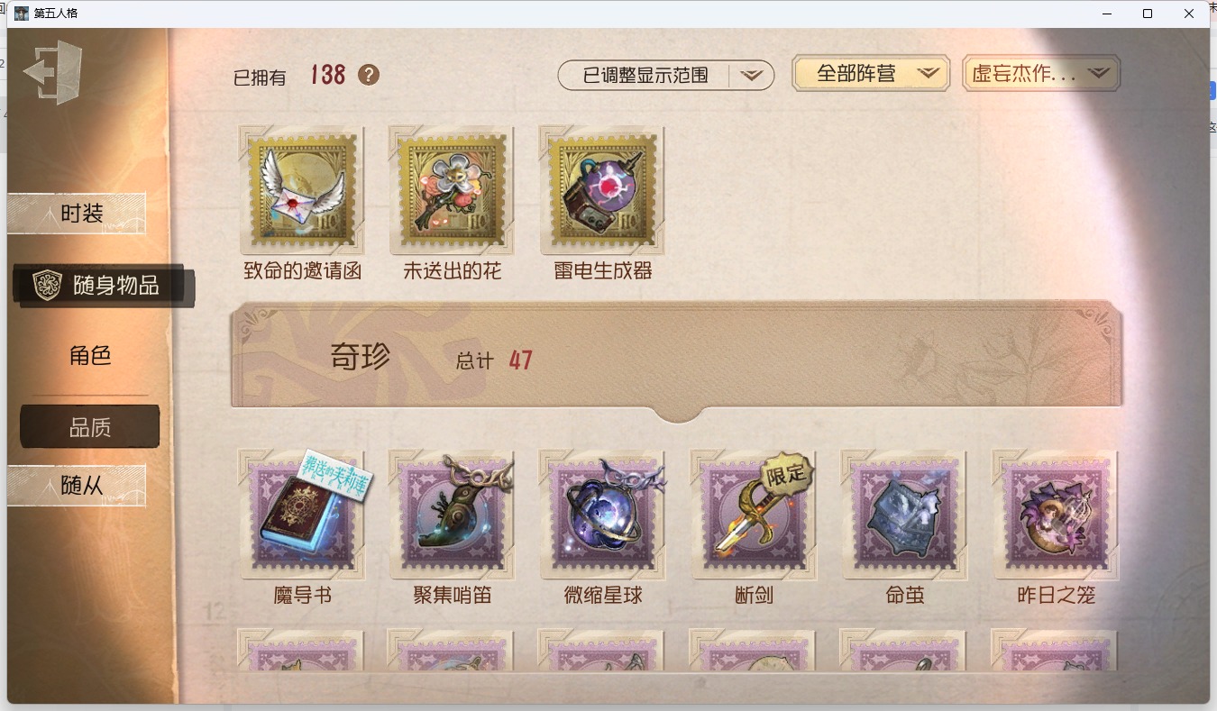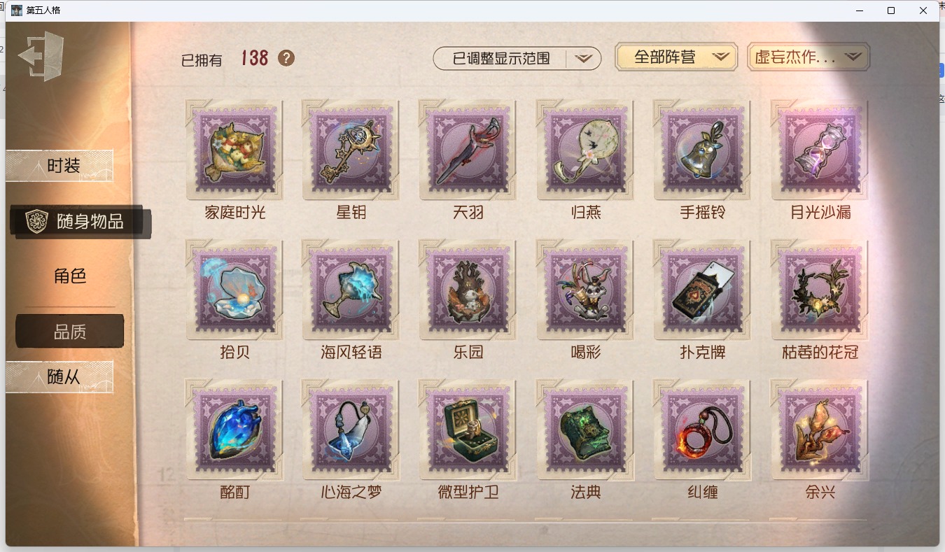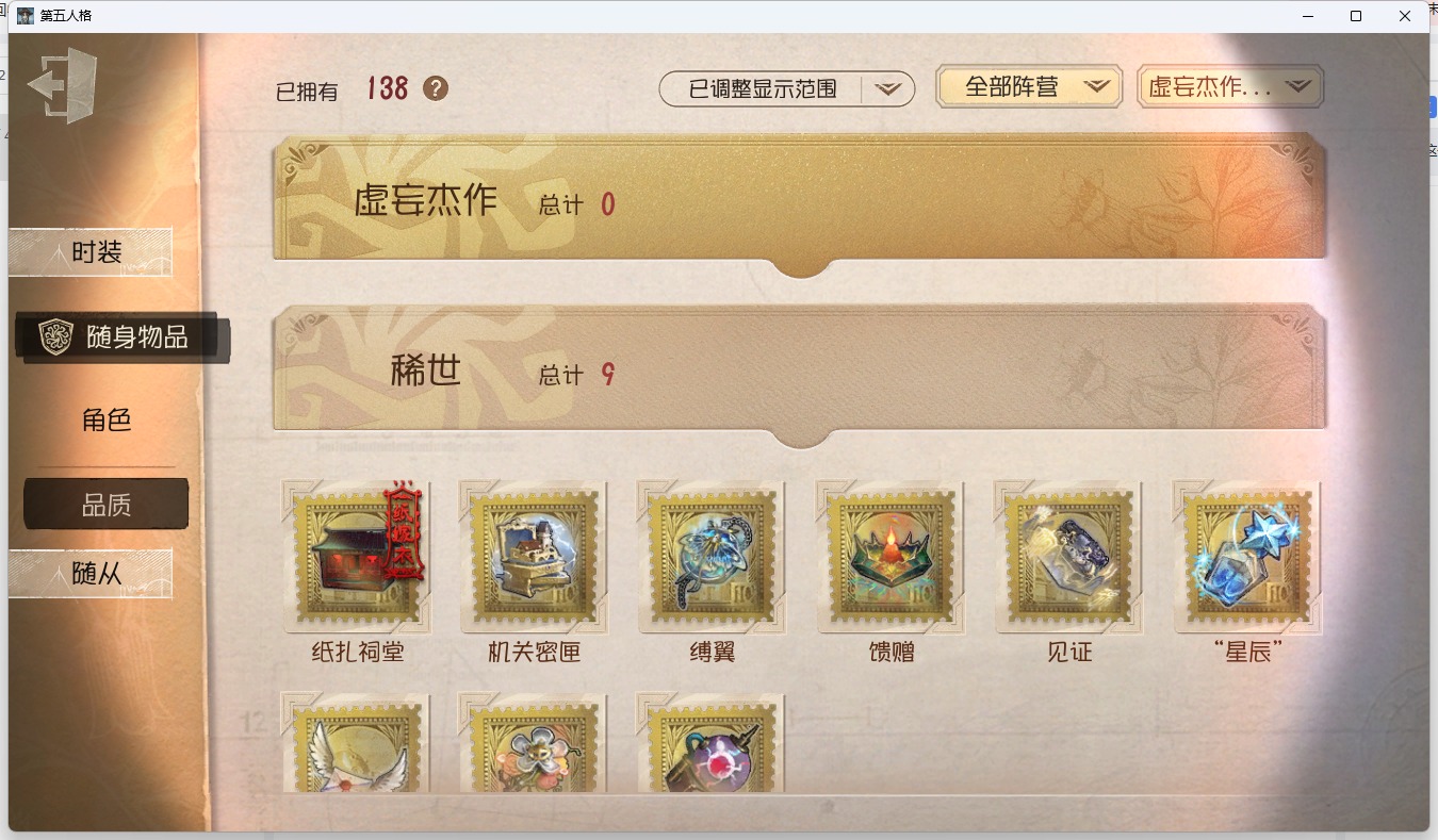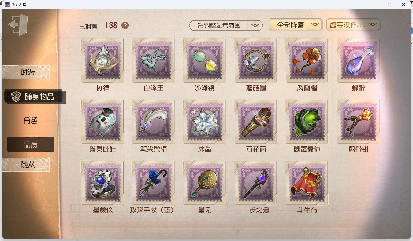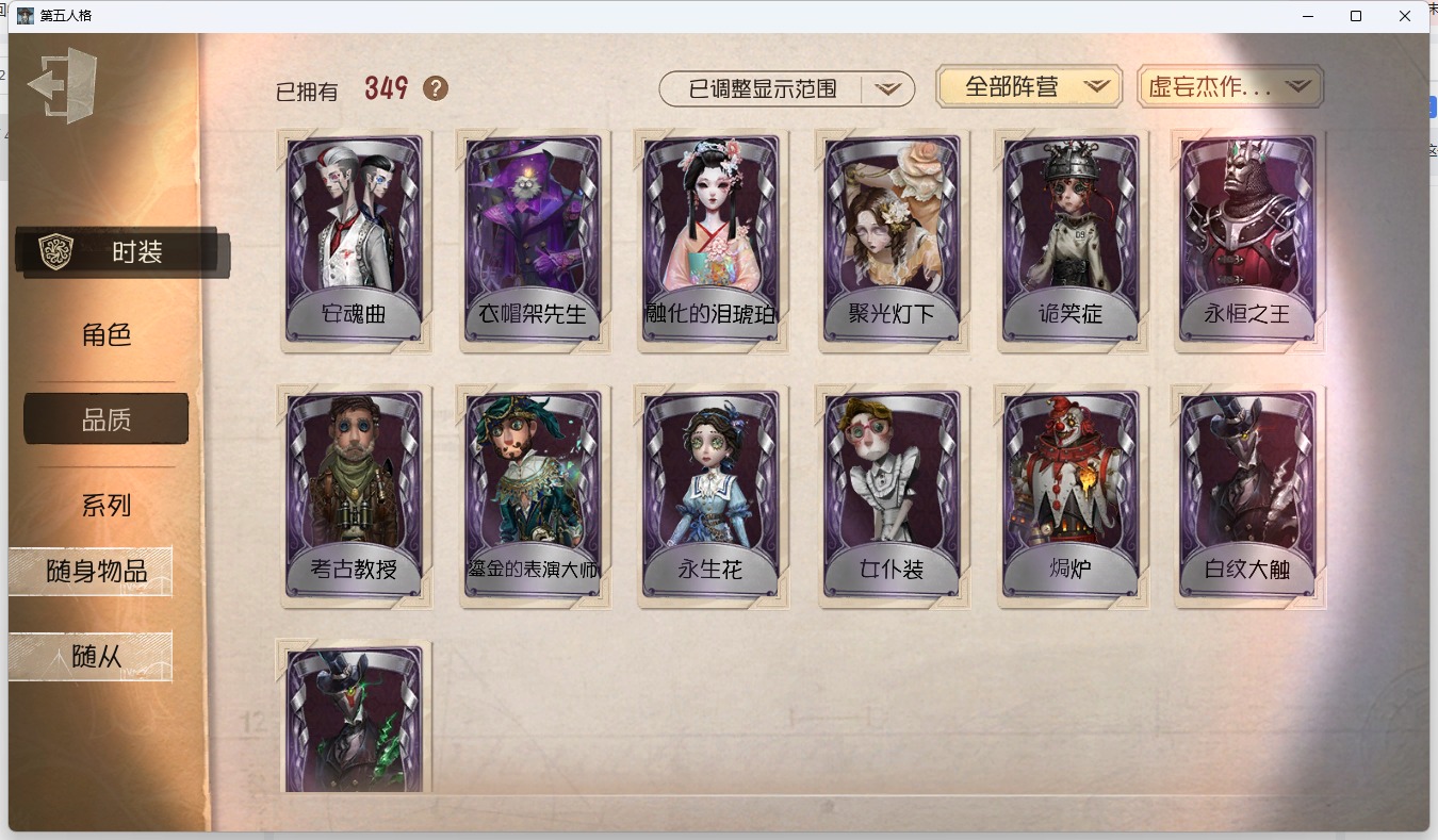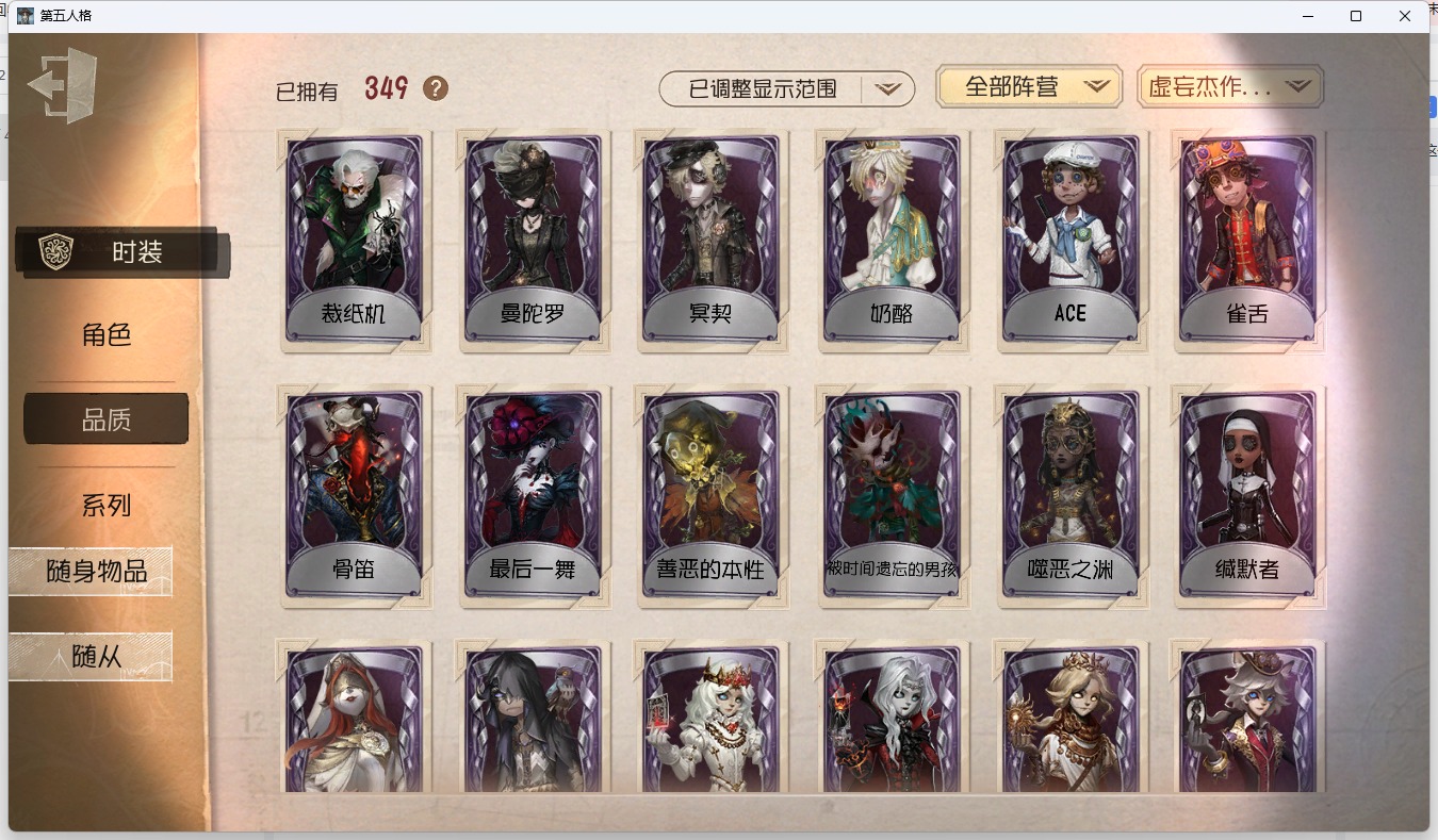 [16587875]安卓官服 手机账号 349时装 16金皮 97紫皮 16随从 138随身物品 【时装】园丁-源自星辰园丁初晴爱丽丝·德罗斯-片刻闲暇渔女-破魔之刃隐士-升学礼蜘蛛-时之猎手咒术师-缄默者野人-雪原猎人“小女孩”-欧律狄刻摄影师-安宁“慈善家”-鎏金的表演大师小女孩-石榴蝶小姐咒术师-噬恶之渊机械师-莎莉红蝶-融化的泪琥珀气象学家-茶歇小姐摄影师-盛夏光影调香师-聂莫黎古董商-陶梦嫣幸运儿-“未知射线”x守墓人-冥契 黄衣之主-衣帽架先生“心理学家”-恒梦爱哭鬼-善恶的本性骑士-ment k歌剧演员-拂晓女士空军-梅爱丽病患-休塔尔克昆虫学者-缚愿26号守卫-秘密大厨记者-恐惧的旧影冒险家-赞因弓箭手-发散谱r音核裂响“法罗女士”-向深处求告作曲家-暮影画家-掌中篆记噩梦-溃夜猎者雕刻家-善忘的海马体佣兵-弦音畸变火灾调查员-“膨化”时空之影-“有机磷”“法罗女士”-芳泽霞蜘蛛-聚光灯下“愚人金”-辉锑矿勘探员-盛夏飞盘邮差-华生医生记者-梦境中的爱丽丝小说家-“伊始新篇”哭泣小丑-熄灭的太阳画家-多色印刷木偶师-义体再构“博士”-“裁纸机”蜘蛛-不息载械“小女孩”-异动指针拉拉队员-采集速巡空军-琼楼遗恨空军-新岛真祭司-“朝圣者”祭司-梦之使者机械师-诡笑症蜡像师-淋浴昆虫学者-曼陀罗厂长-永恒之王爱哭鬼-被时间遗忘的男孩“杰克”-白纹大触“杰克”-金纹大触红蝶-竹华红夫人-最后一舞冒险家-考古教授舞女-恶之花玩具商-纸翼小姐小丑-异界行者小丑-焗炉调香师-致命温柔调香师-猩红新娘调香师-lady k调香师-红菱艳调酒师-海盐特调幸运儿-女仆装园丁-奥村春先知-历战猎人先知-观测者先知-独行者孽蜥-窃梦行者孽蜥-骨笛牛仔-教鞭前锋-坂本龙司前锋-skull牛仔-逆刃之鞭盲女-吉尔达牛仔-部族勇士摄影师-亚兹拉尔摄影师-月下绅士摄影师-阿波罗摄影师-暮剑“使徒”-白松露守墓人-日落黄沙守墓人-奶酪宿伞之魂-日月相随宿伞之魂-安魂曲宿伞之魂-残花泪 【随身物品】沙滩镜(奇珍)微缩星球(奇珍)沙漠精灵(奇珍)致命的邀请函稀世充气海豚奇珍枯萎的花
